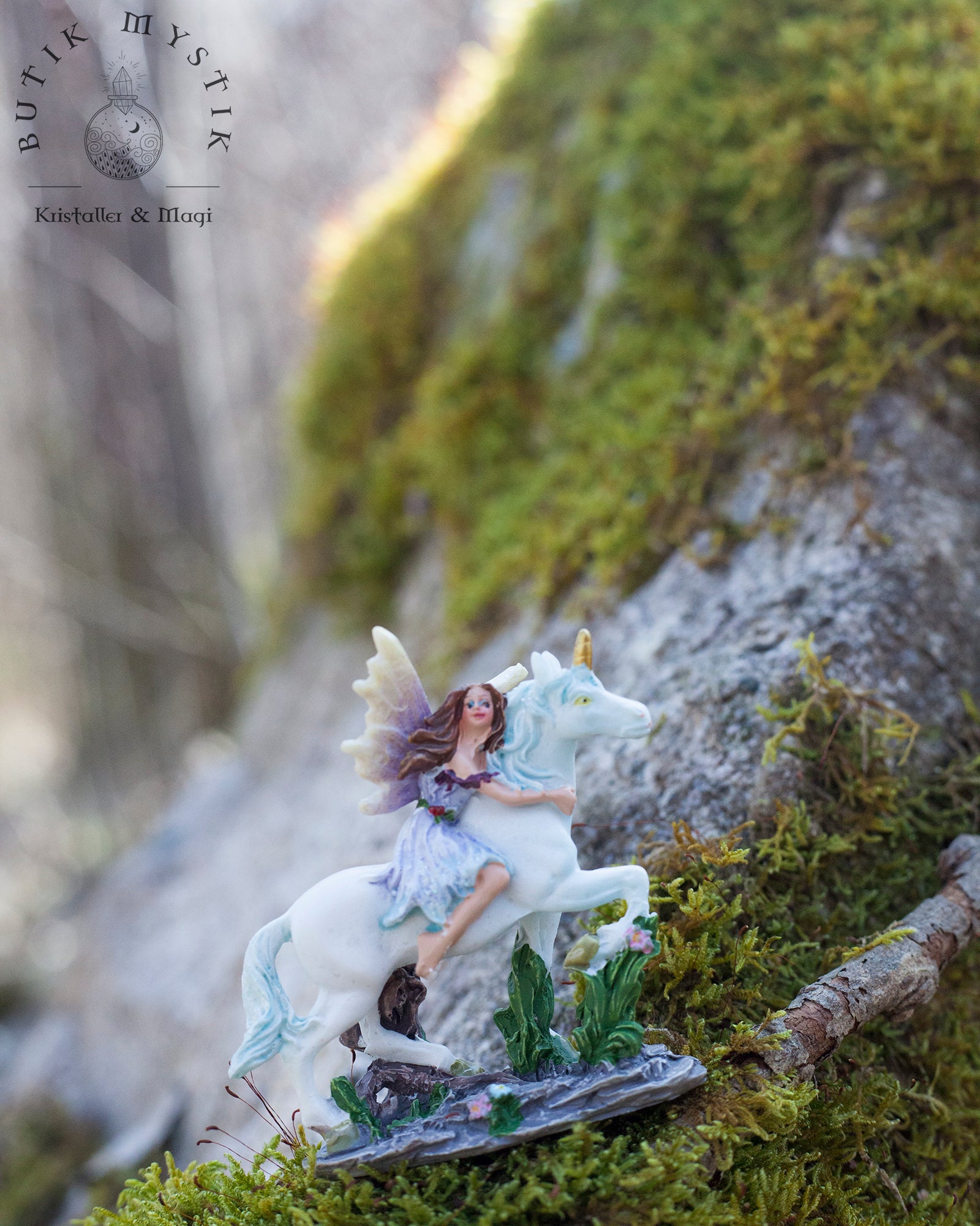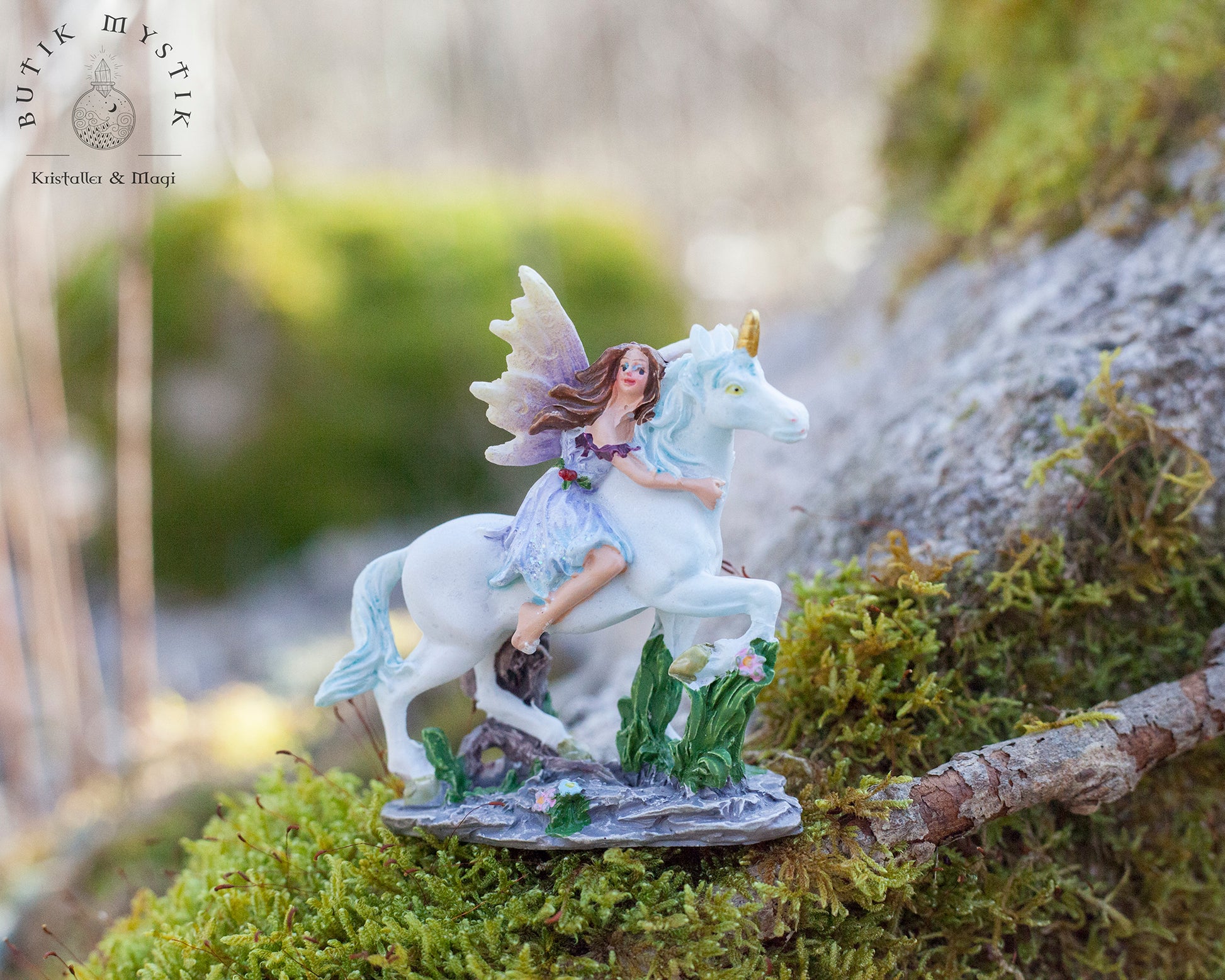 En vacker älva tillsammans med den klassiska enhörningen. Ett vackert tillskott till din samling eller som en liten present.