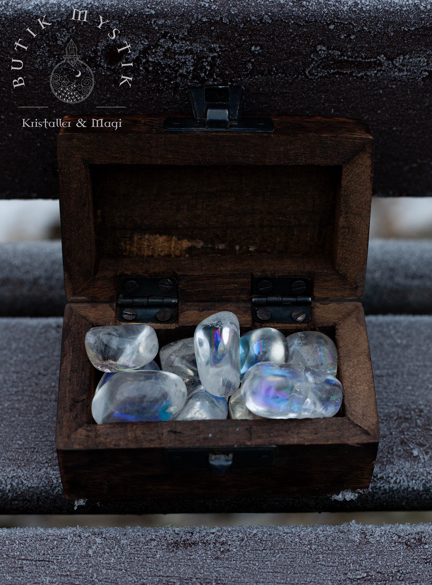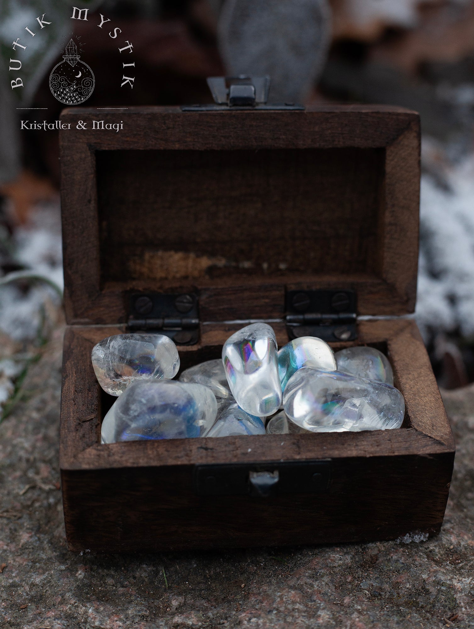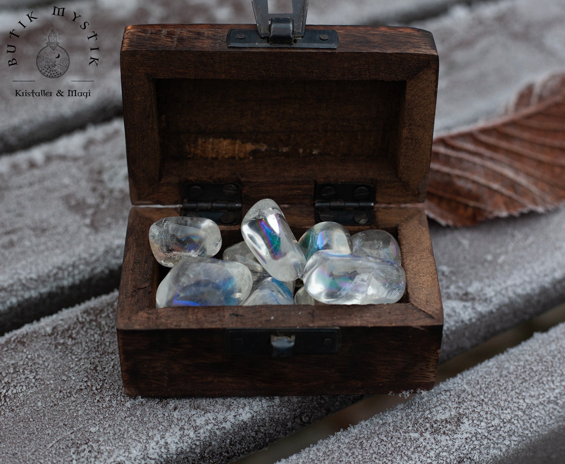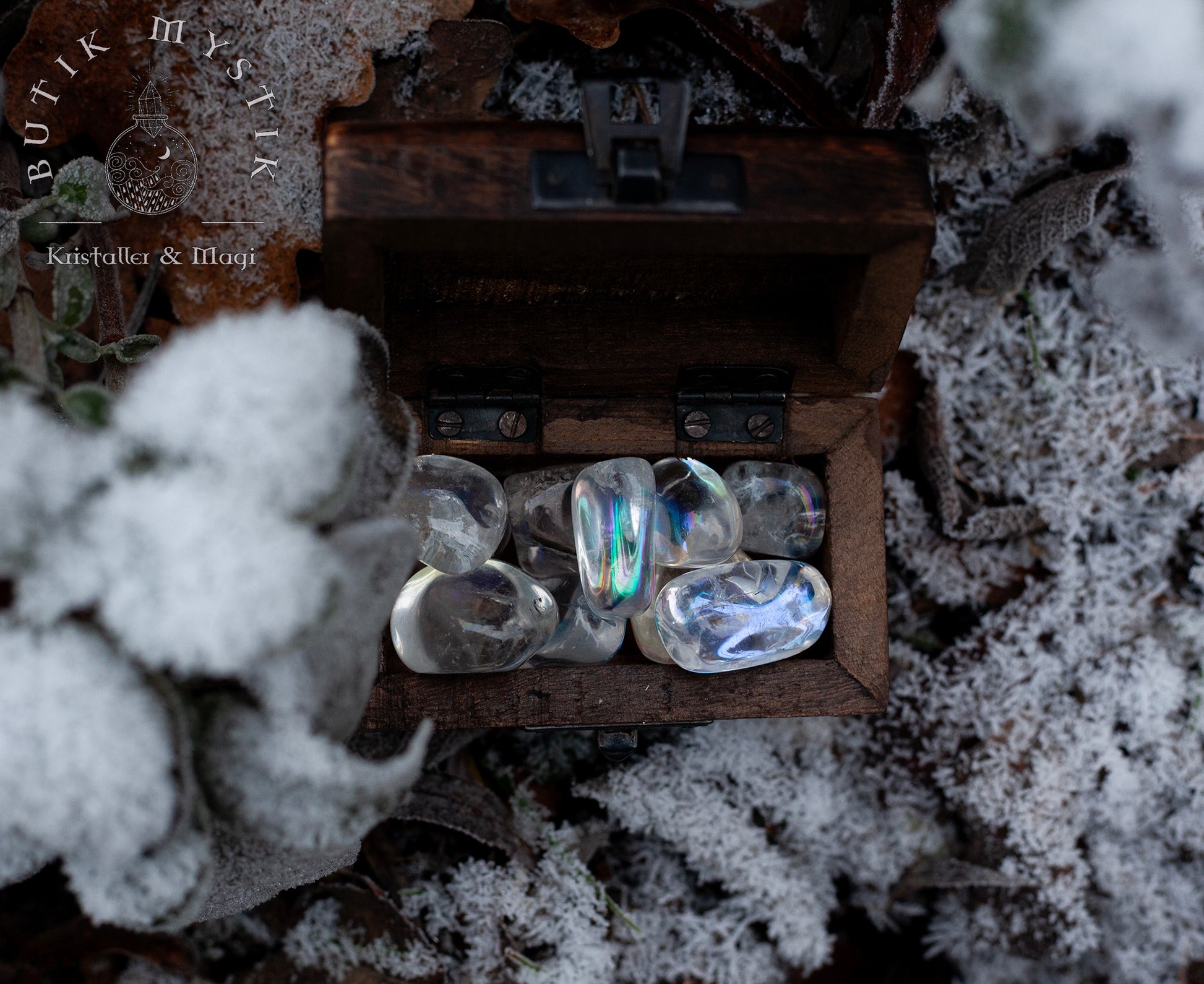 Angel Aura är en högvibrerande kristall som ger en upplyftande energi som hjälper till att göra oss medvetna om vårt egna gudomliga ljus och att minnas tidigare liv.