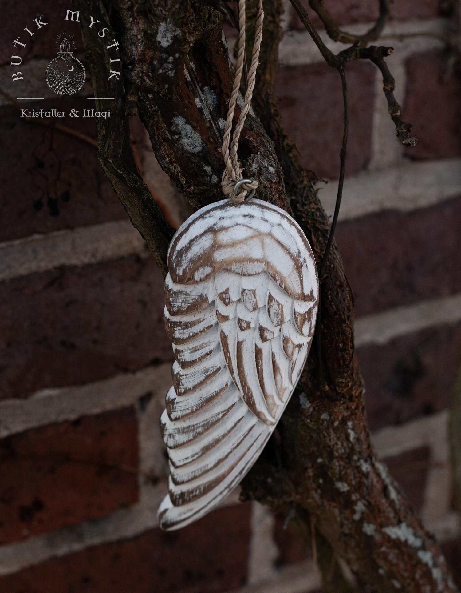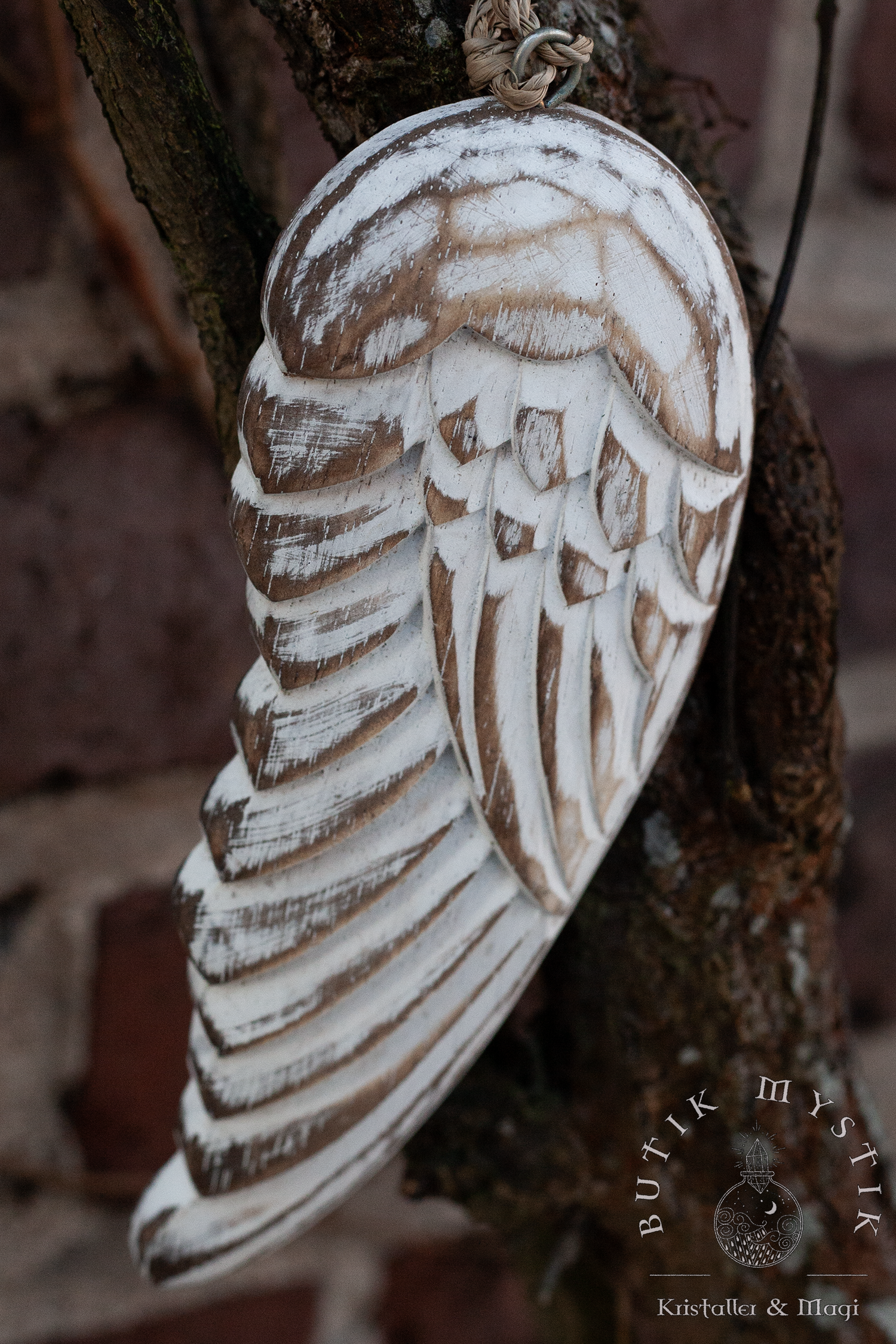 Dessa vackra änglavingar är en perfekt gåva eller en elegant detalj i heminredningen. De ser fantastiska ut hängande på väggen eller dörren, och kan även placeras lutande mot en hylla för en charmig touch. De är särskilt uppskattade vid namngivning, dop och bröllop, vilket gör dem till en ännu mer betydelsefull present.
