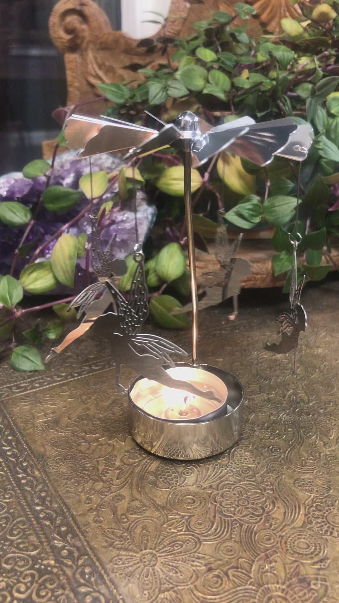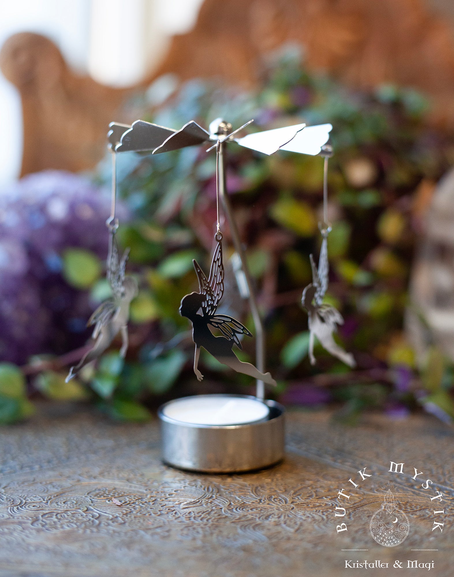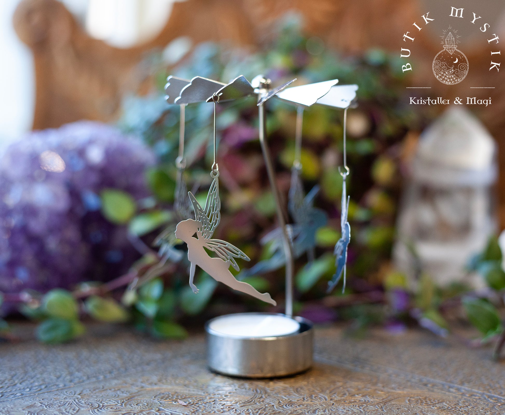 Änglaspel i metall som snurrar av värmen från värmeljuset som du sätter i hållaren.