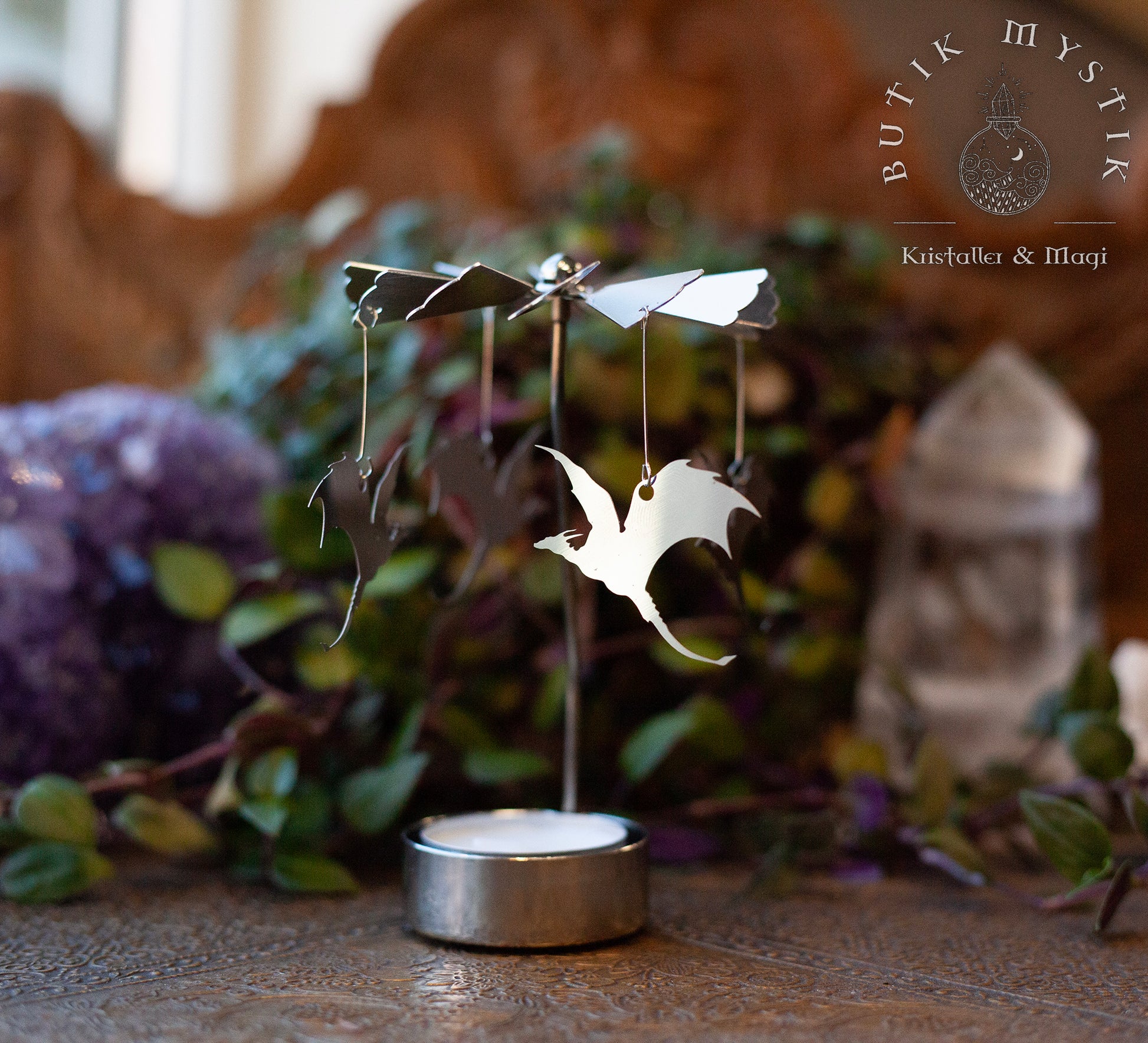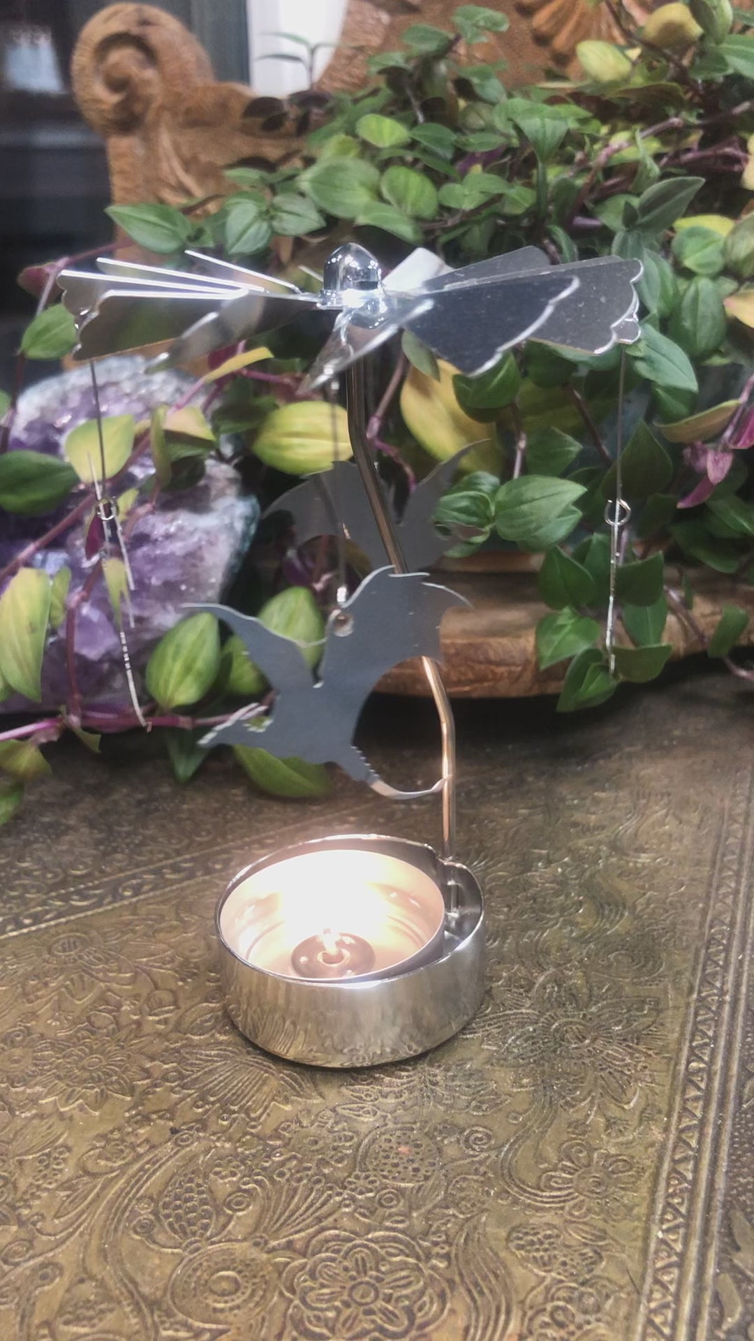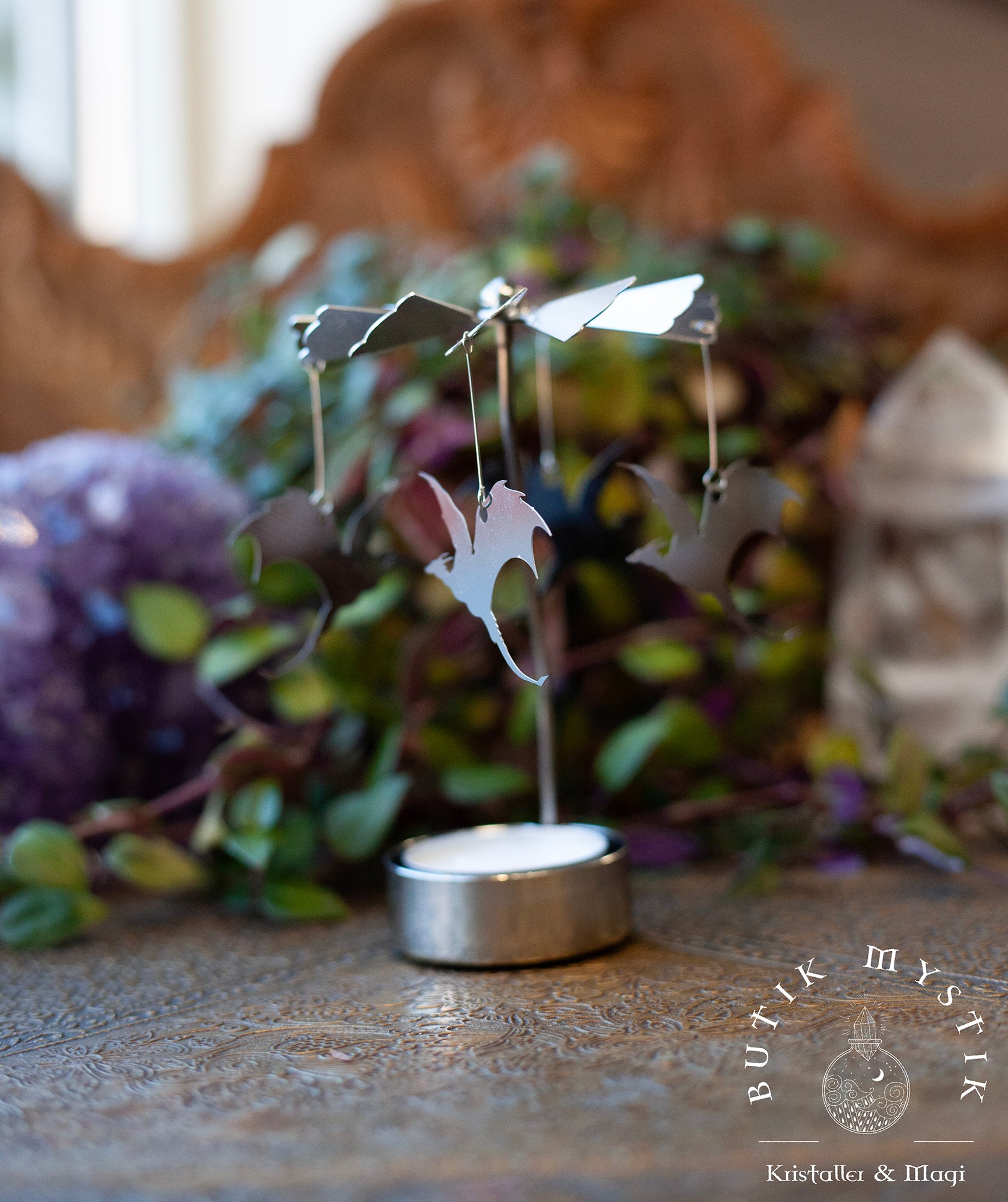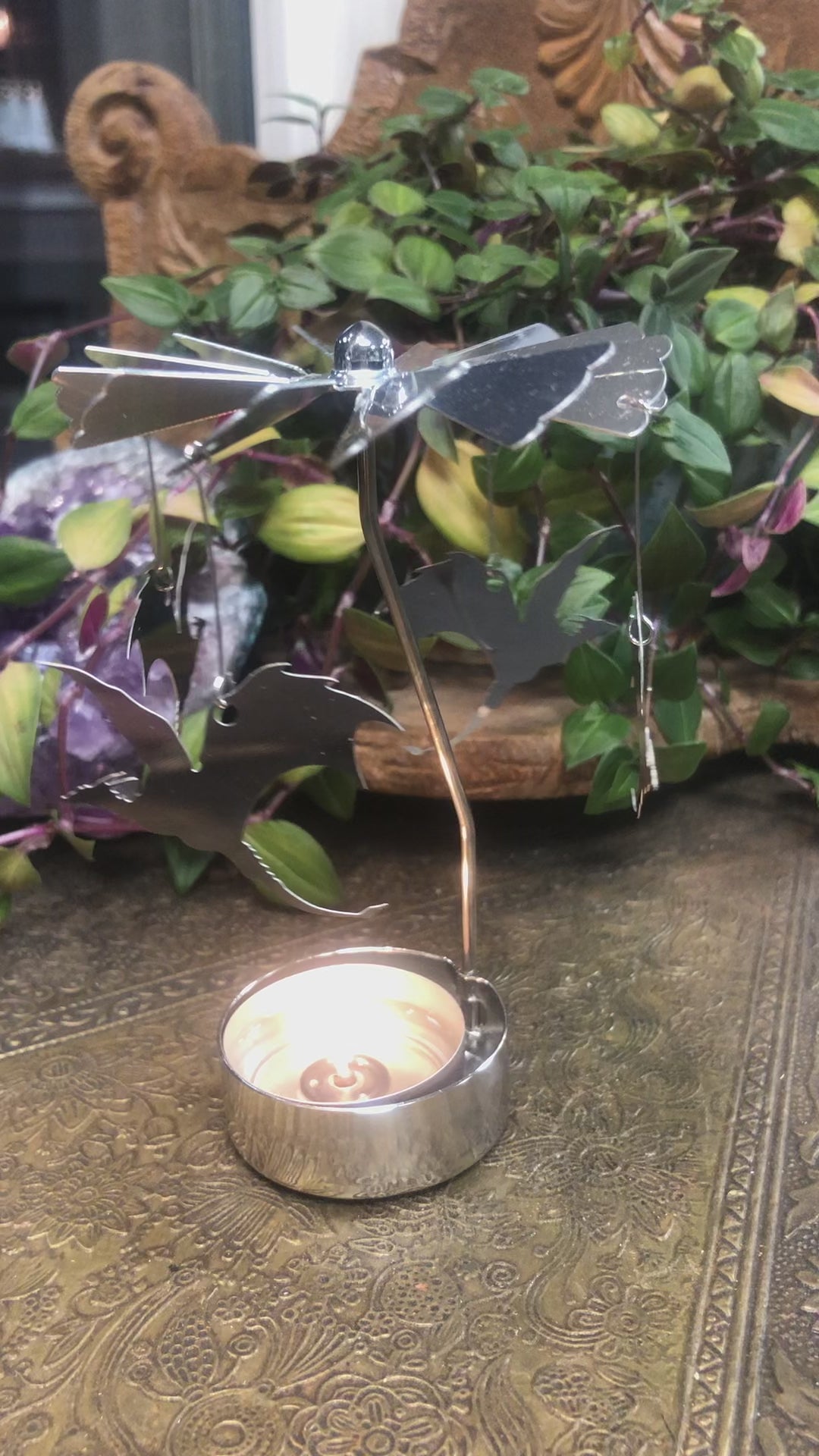 Änglaspel i metall som snurrar av värmen från värmeljuset som du sätter i hållaren.