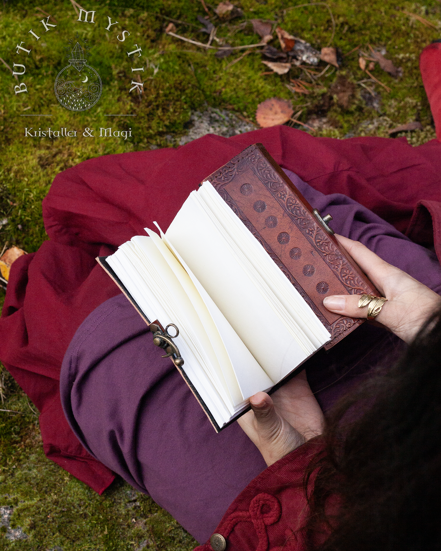 Dagbok/Anteckningsbok/Grimoir/Skissbok i läder med en hjort för alla dina magiska anteckningar, skissar, spells och drömmar.