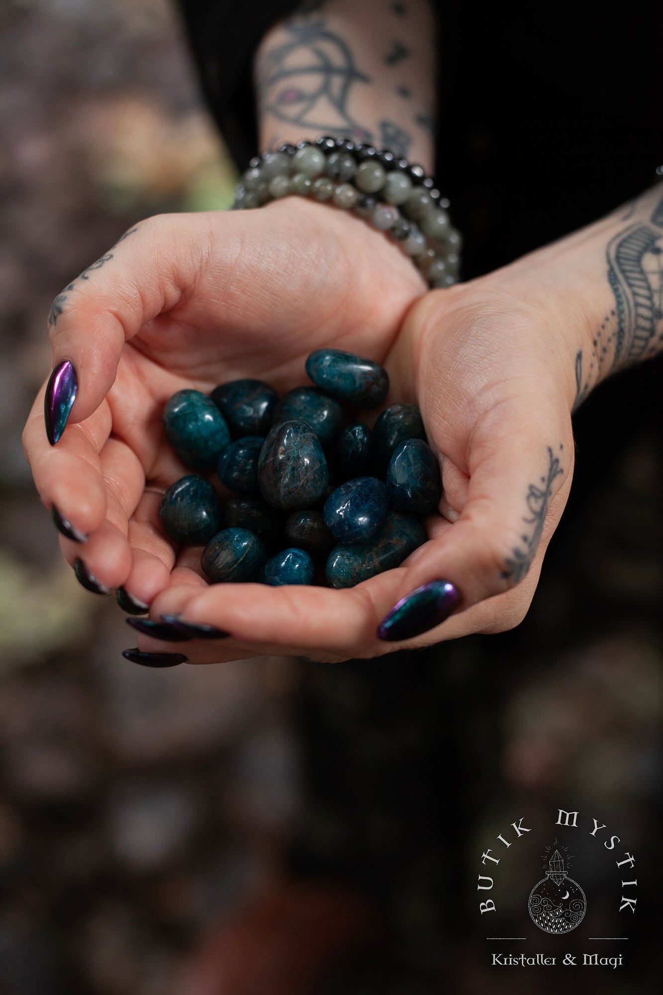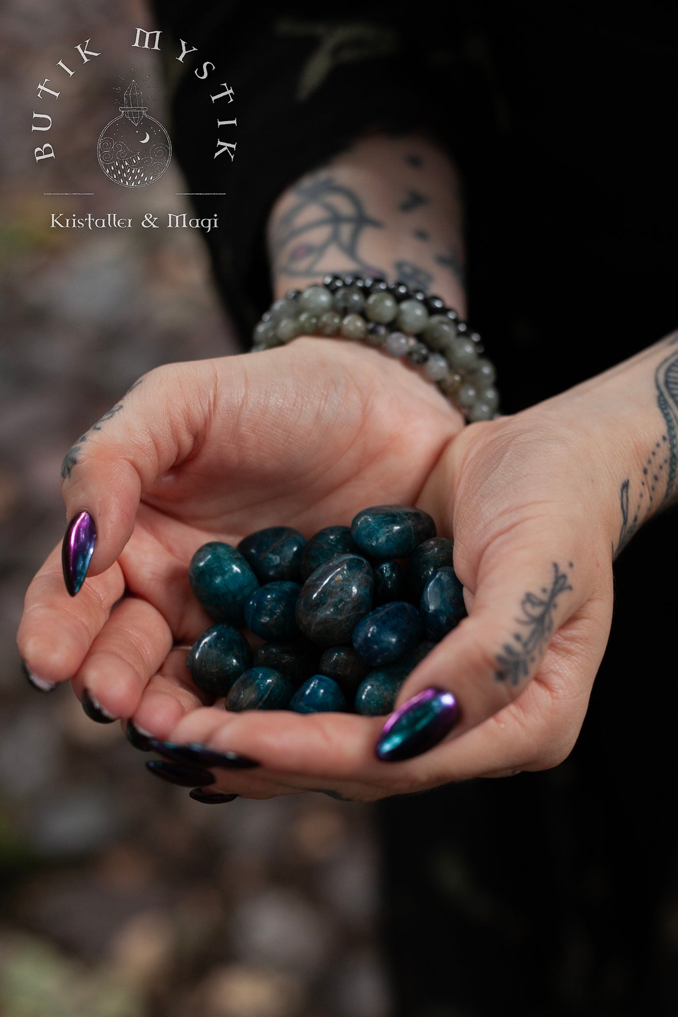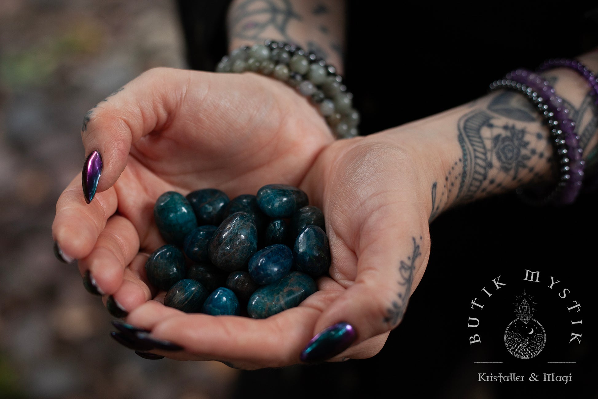 Apatit är en manifestationssten. Apatit sägs hjälpa oss att sätta ord på våra känslor och få saker gjort! Den kan hjälpaoss med kommunikation och självuttryck på alla nivåer.