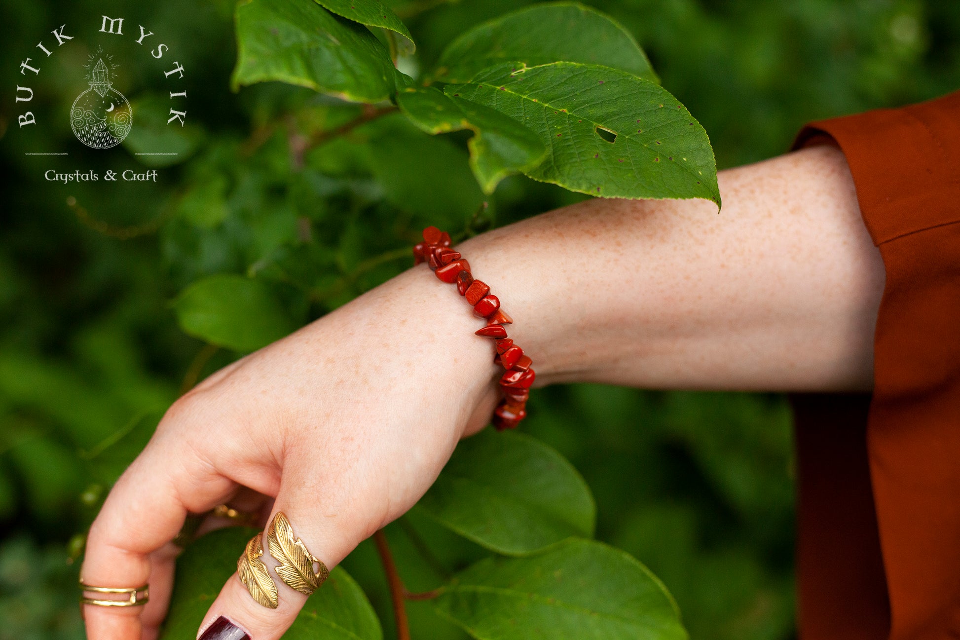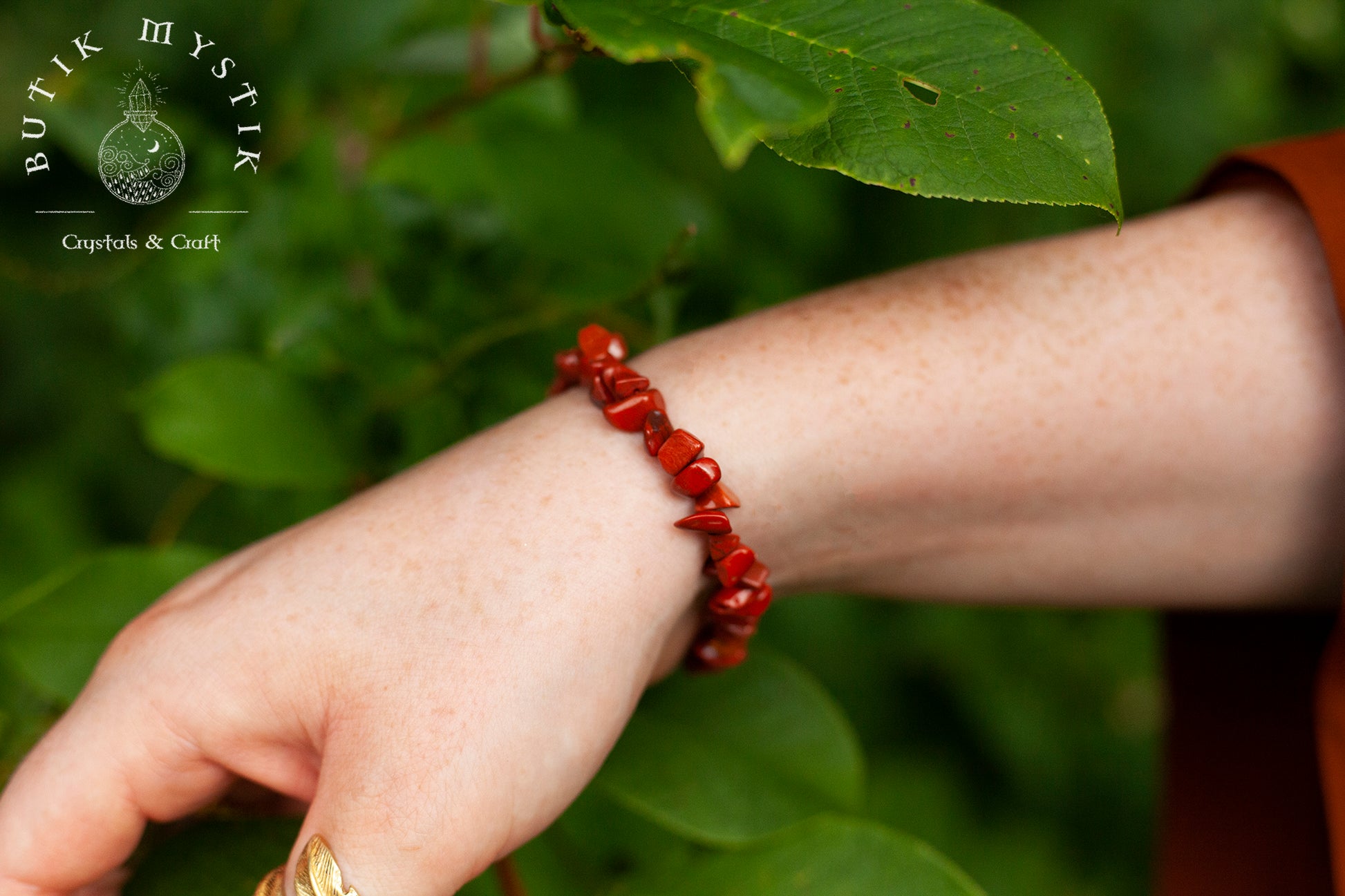 Röd Jaspis kan ge dig mod, styrka, energi och får dig att stå stadigt på jorden. Den sägs vara skyddande och extra bra att ha vid stressande situationer.