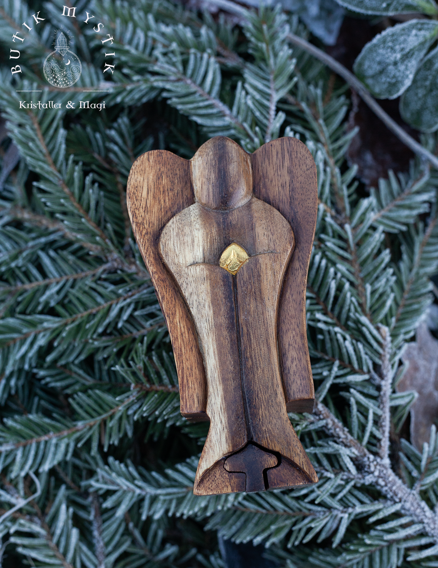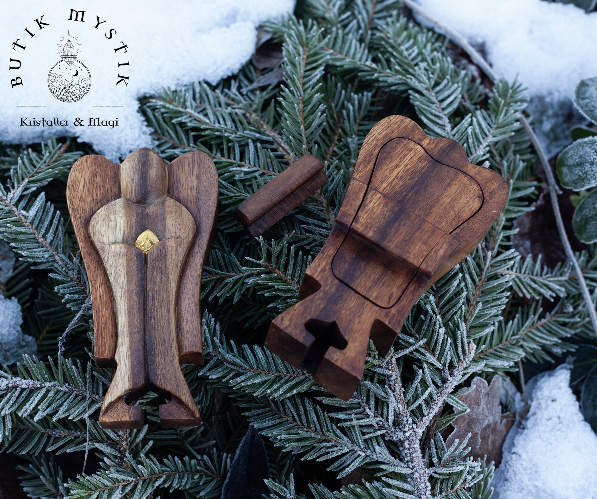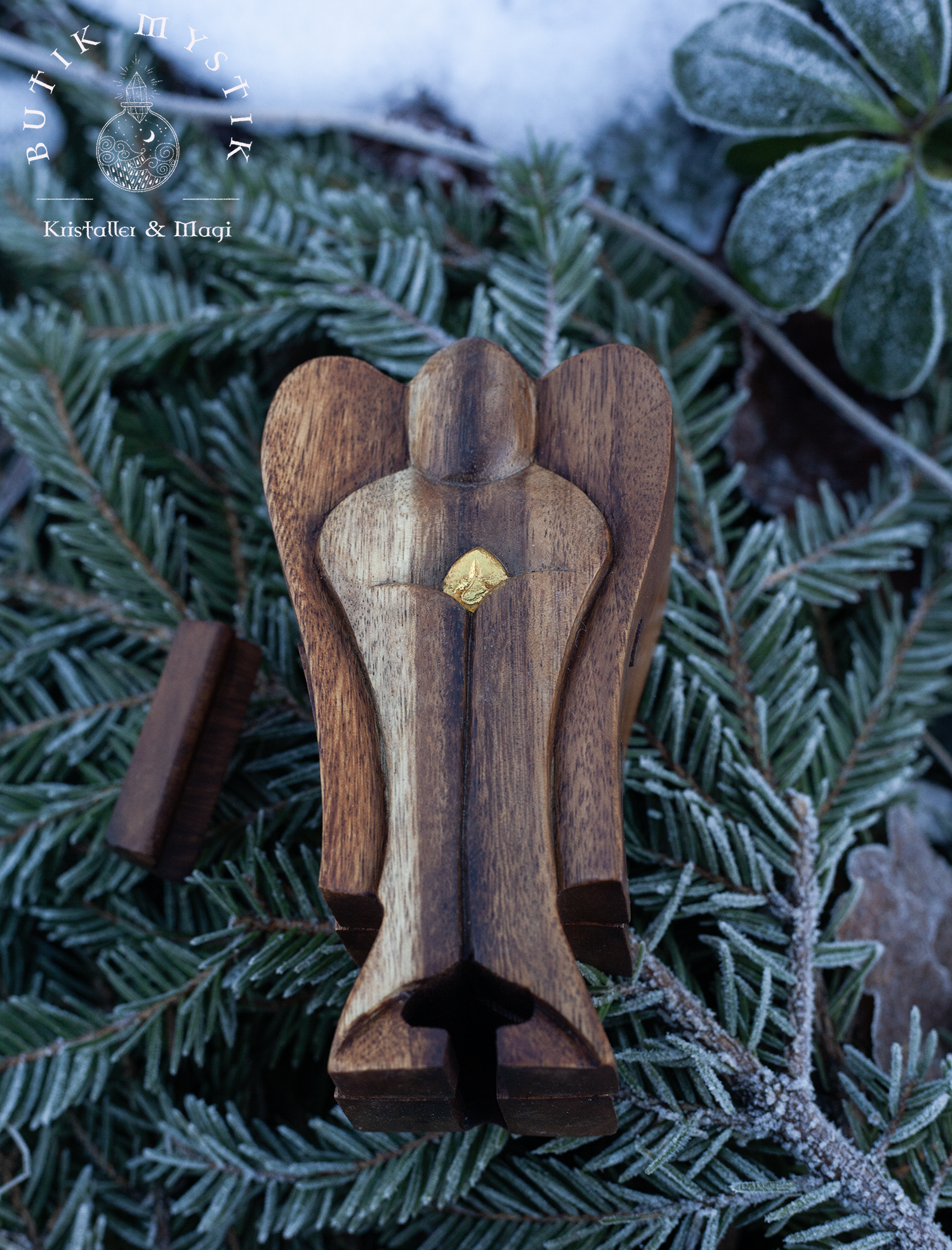 Varje ängelask har noggrant snidats för hand, soltorkat, ytbehandlats, polerats och målats av hantverkare på landsbygden.
