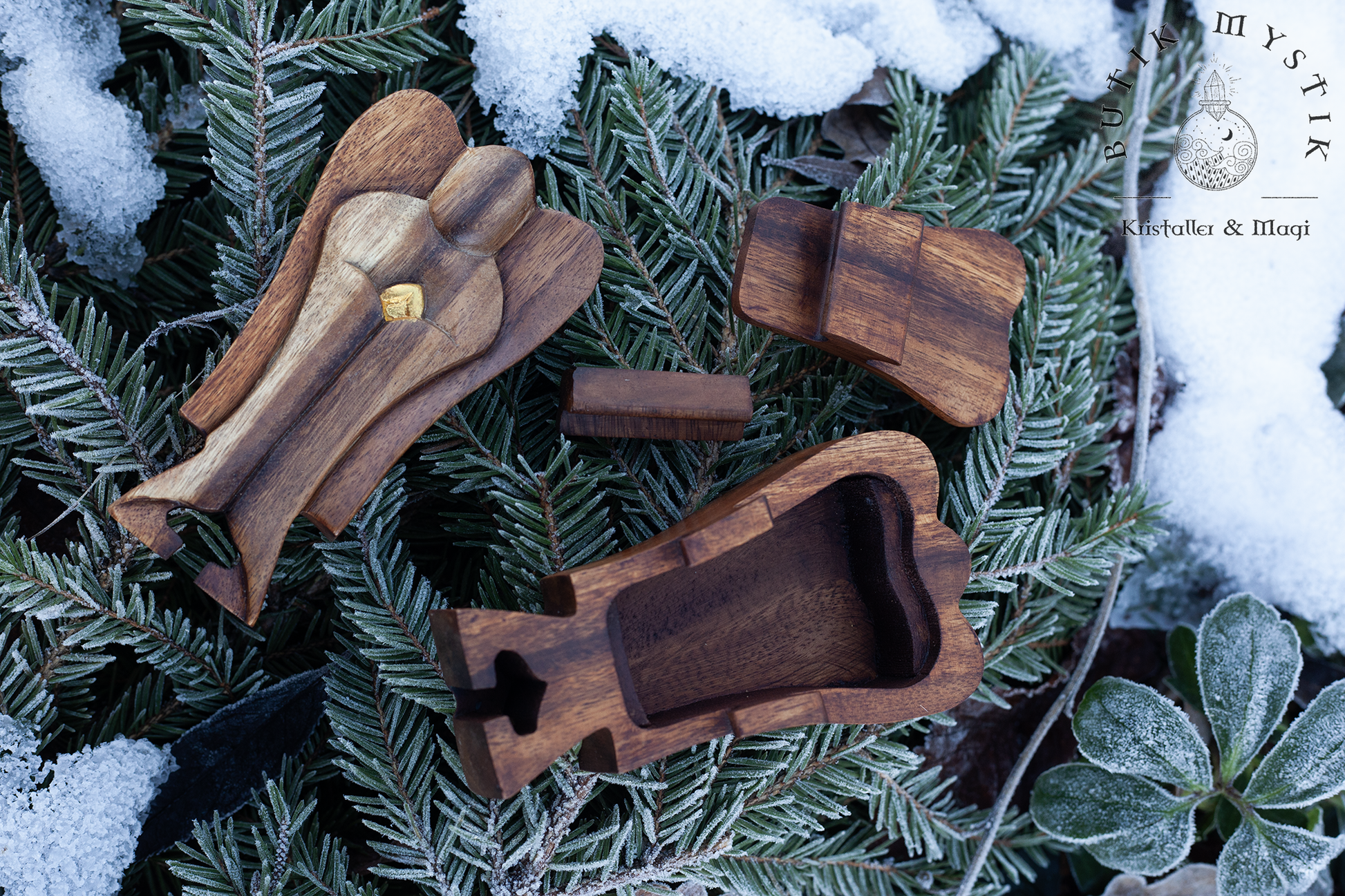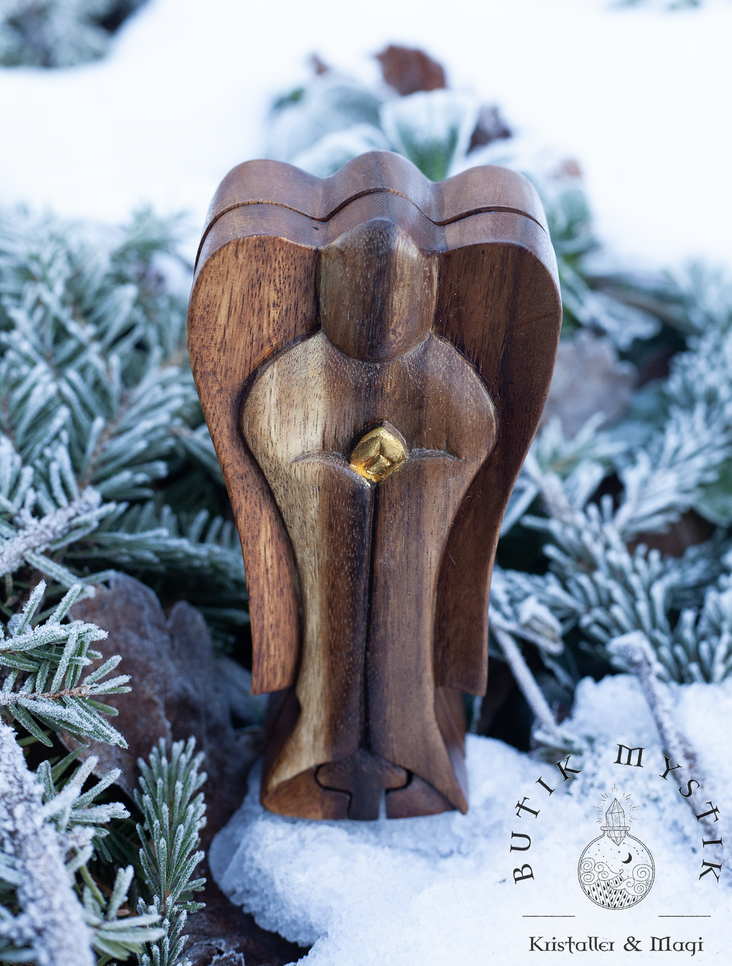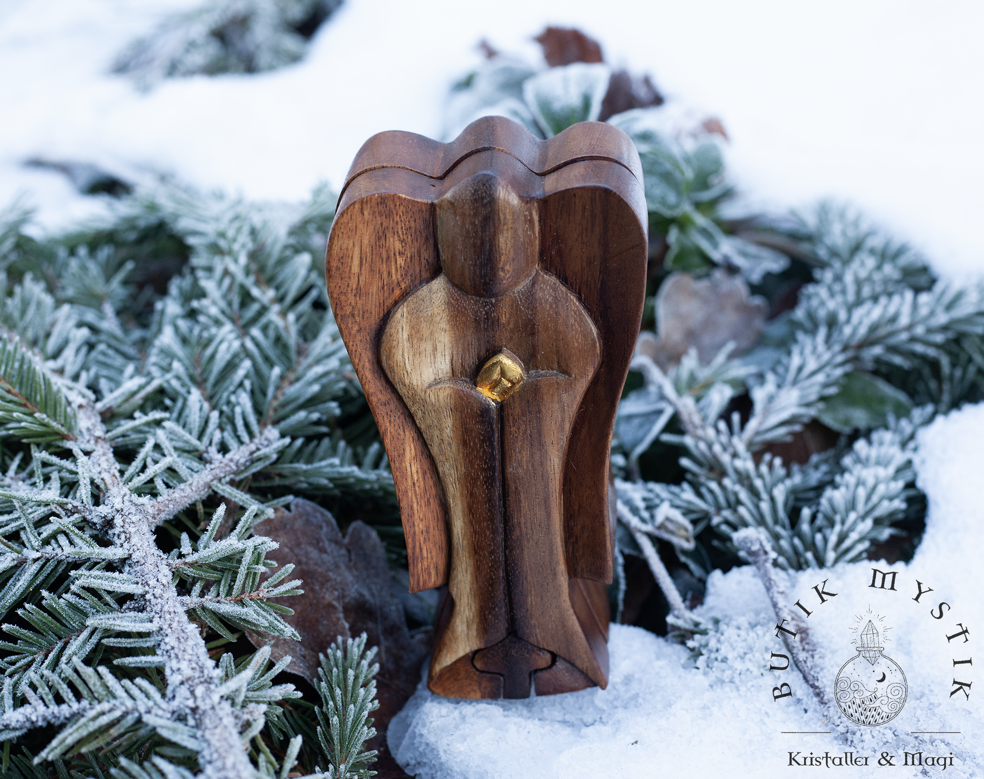 Varje ängelask har noggrant snidats för hand, soltorkat, ytbehandlats, polerats och målats av hantverkare på landsbygden.