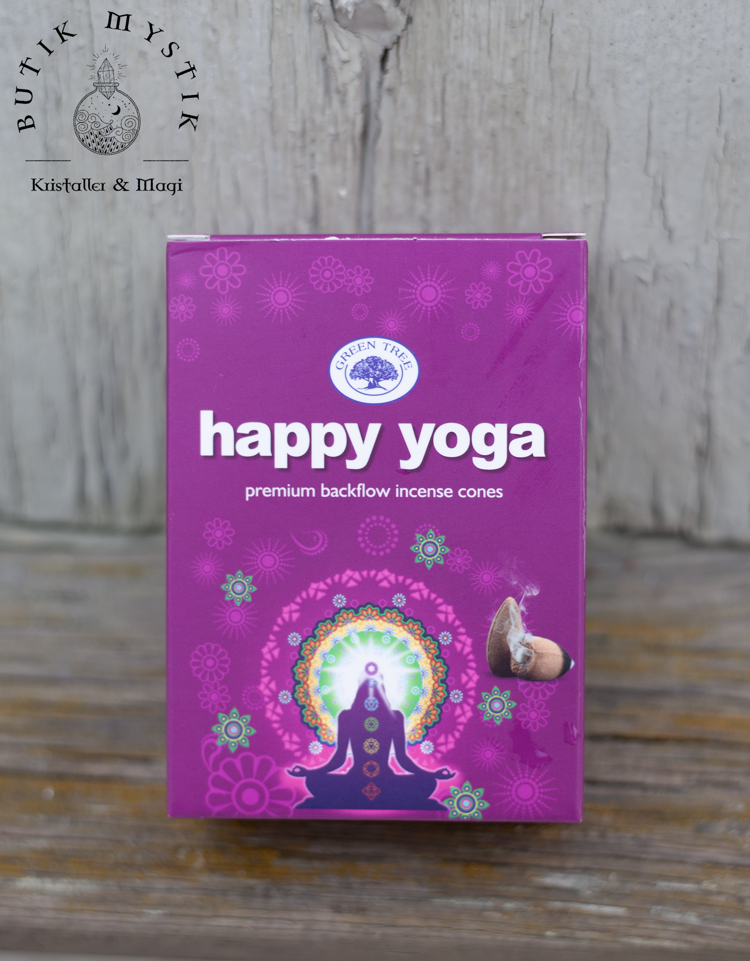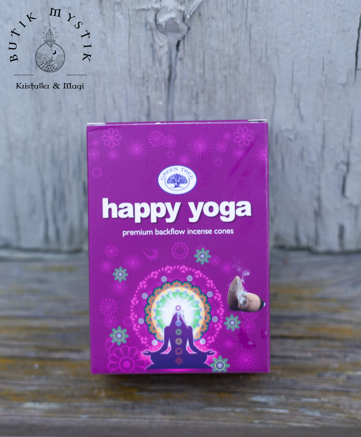 "Happy Yoga" från Green Tree är en rökelse som är känd för sin friska och harmoniska doft. Den kombinerar ofta blommiga, fruktiga och örtliga noter för att skapa en atmosfär av lugn och glädje. Doften kan inkludera inslag av citrusfrukter, såsom apelsin eller citron, som ger en upplyftande och energigivande känsla.