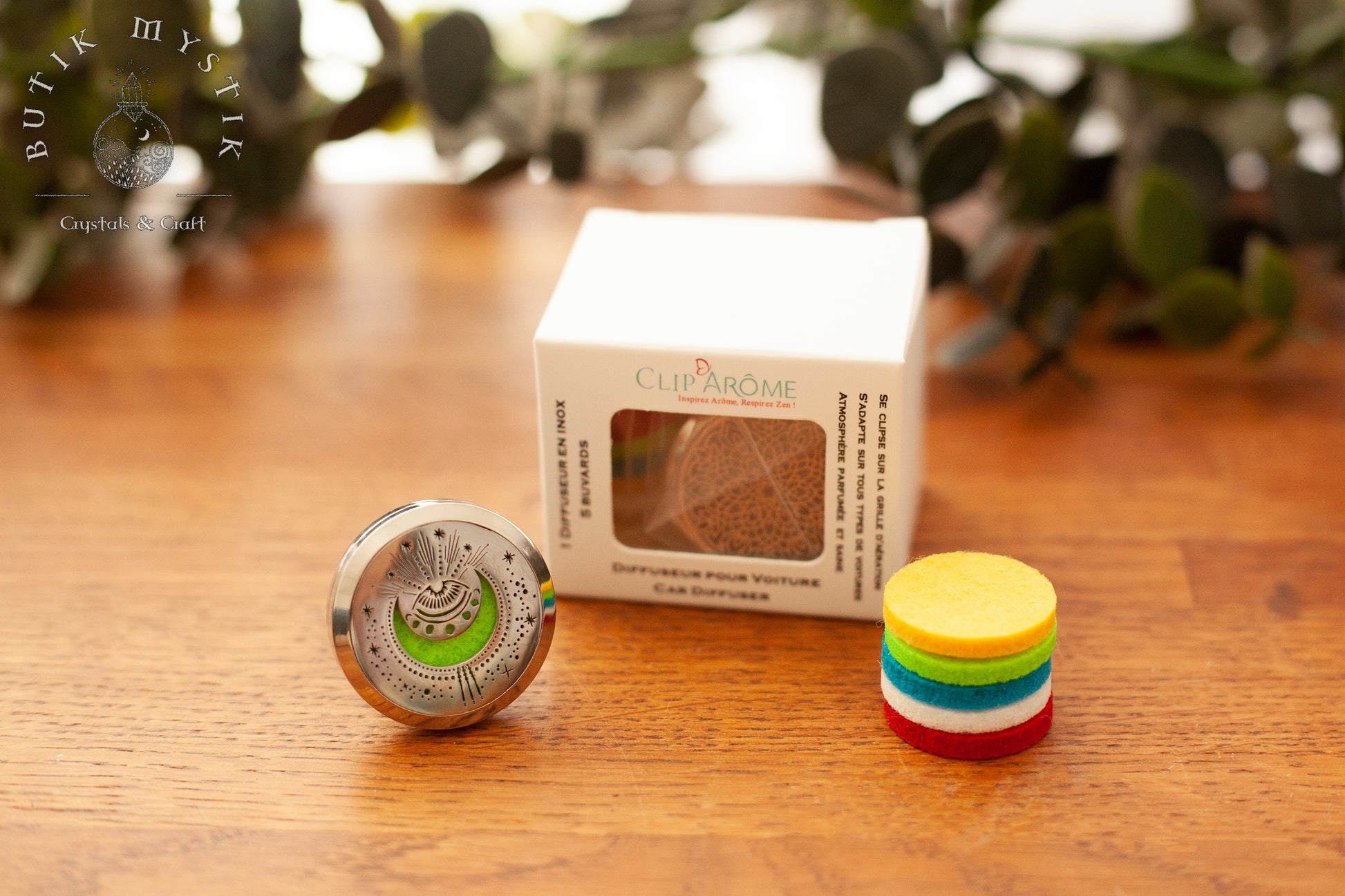 Denna bildiffuser i rostfritt stål kläms fast på ventilationsgallret och skapar en behaglig atmosfär i fordonet.