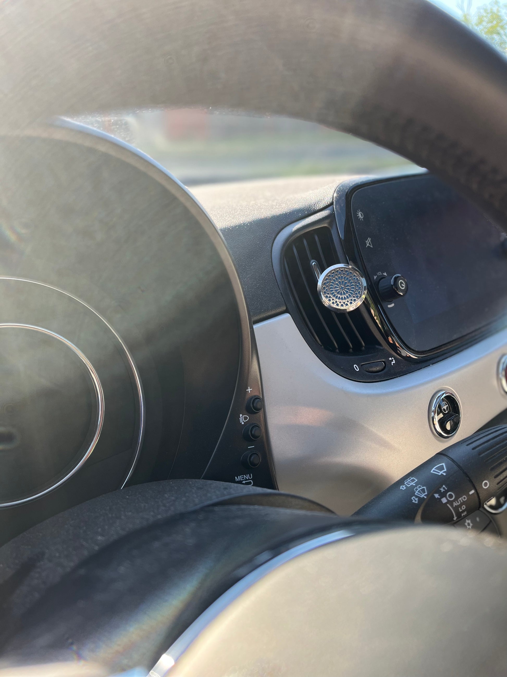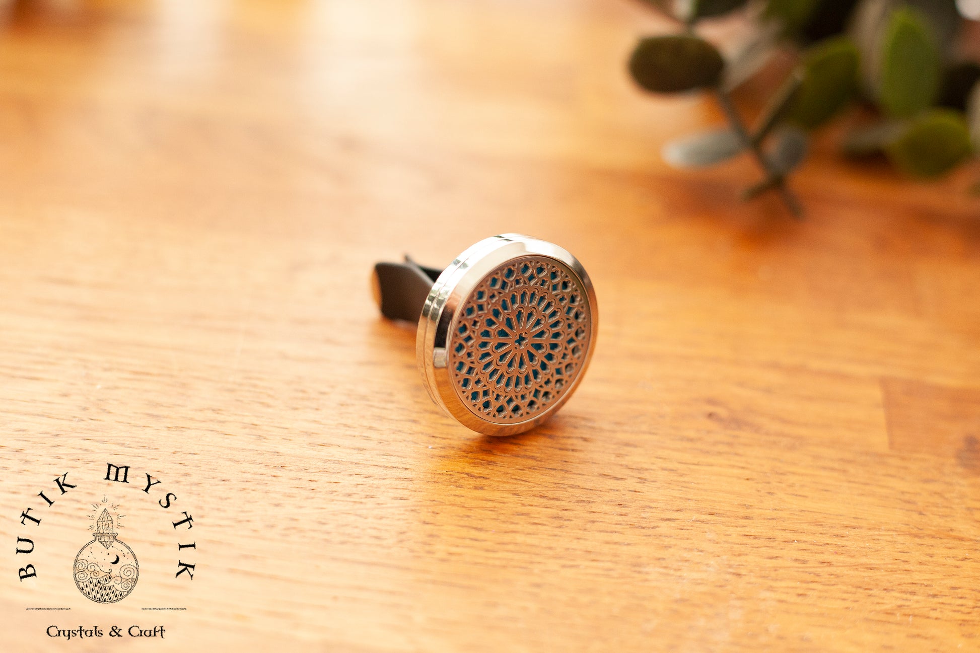 Denna bildiffuser i rostfritt stål kläms fast på ventilationsgallret och skapar en behaglig atmosfär i fordonet.