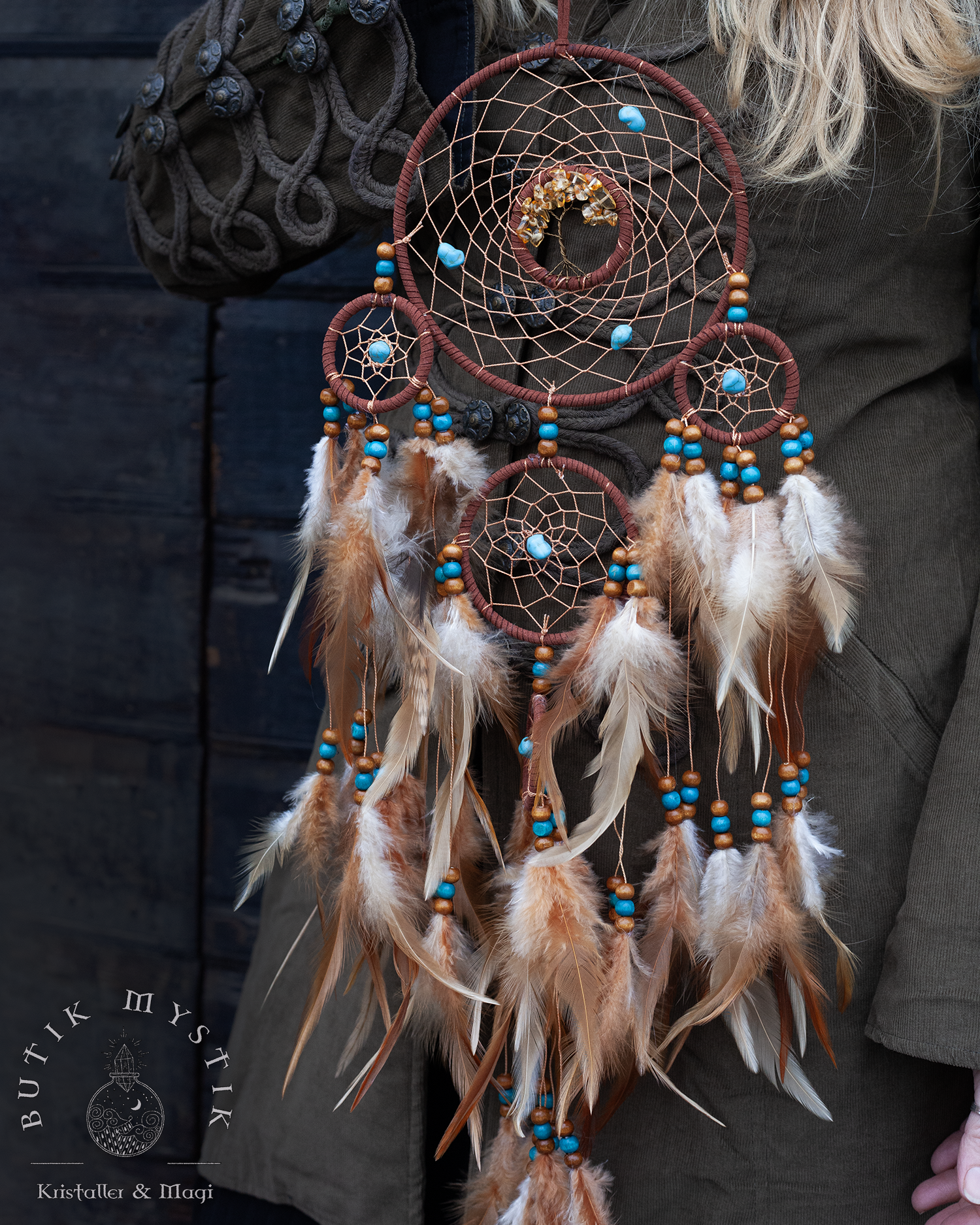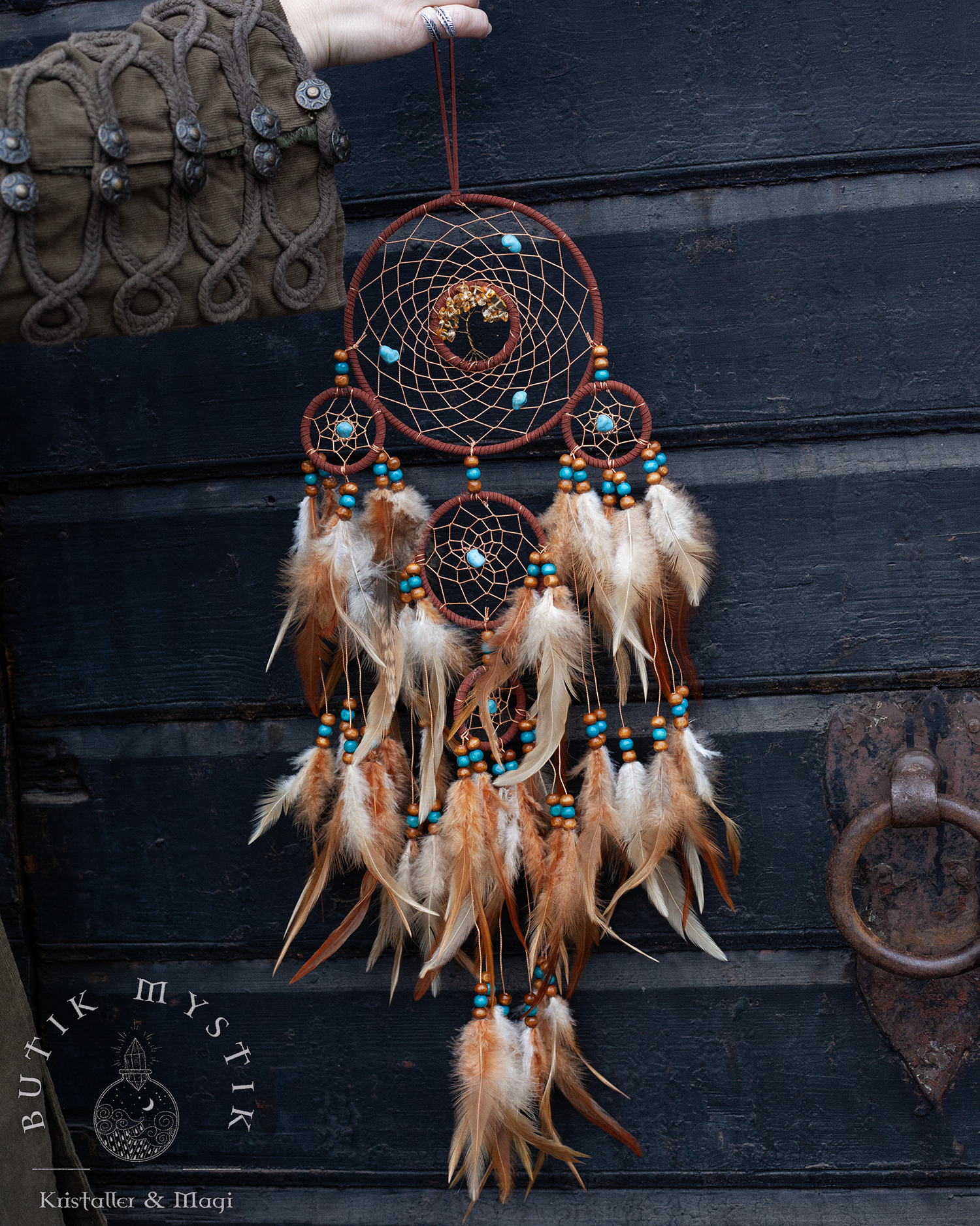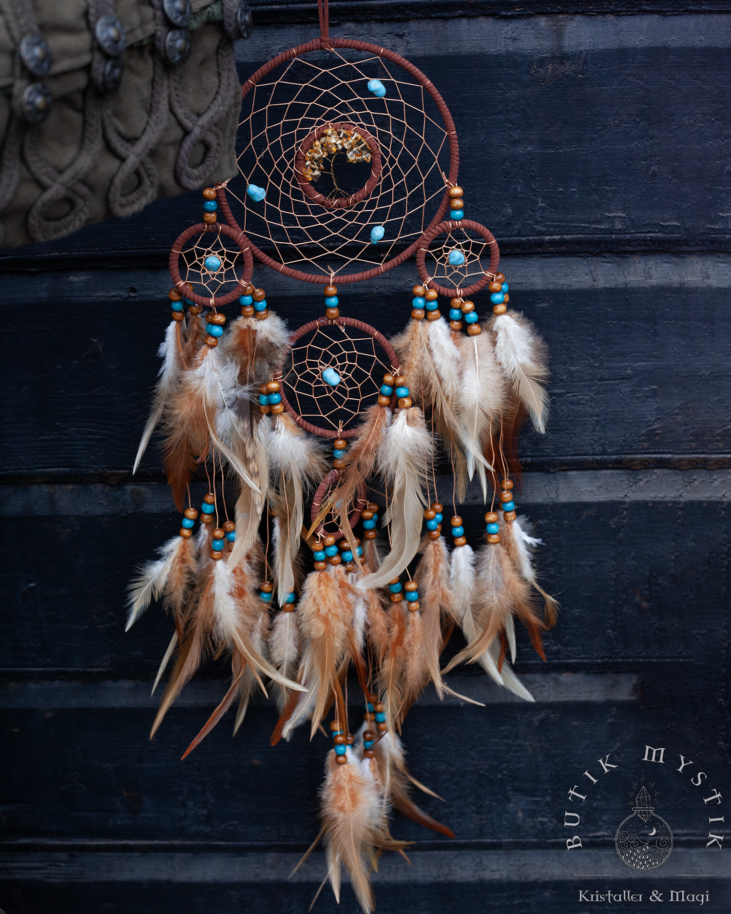 Brun Drömfångare med träd i citrin