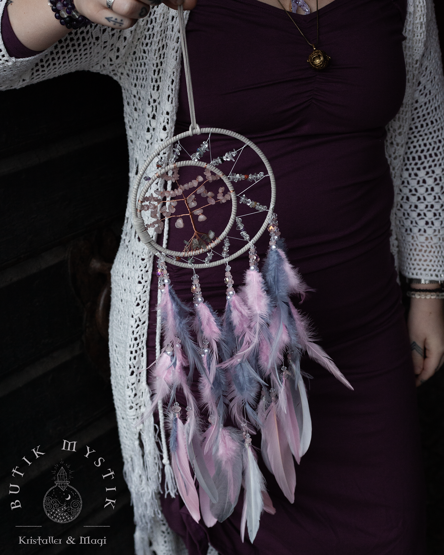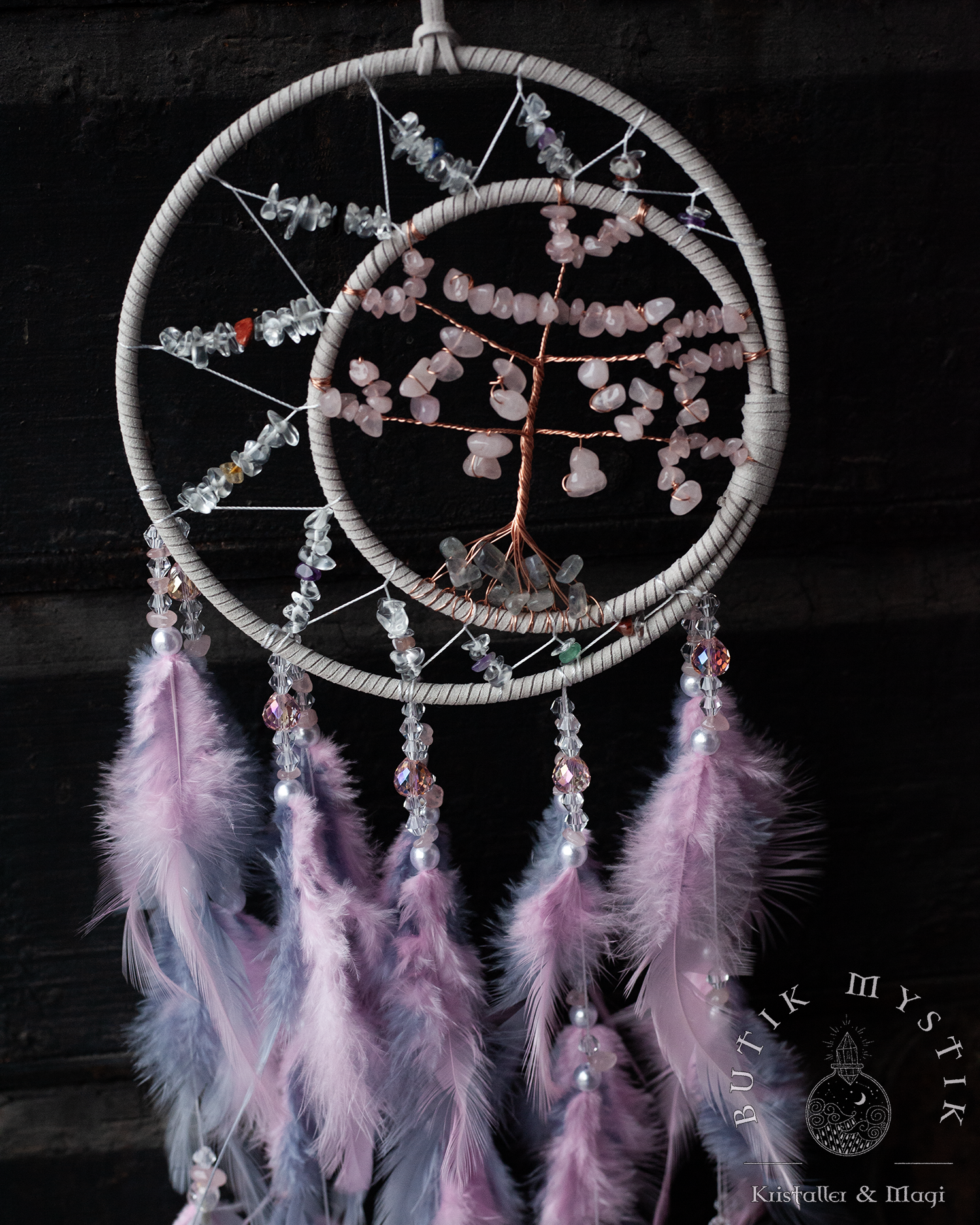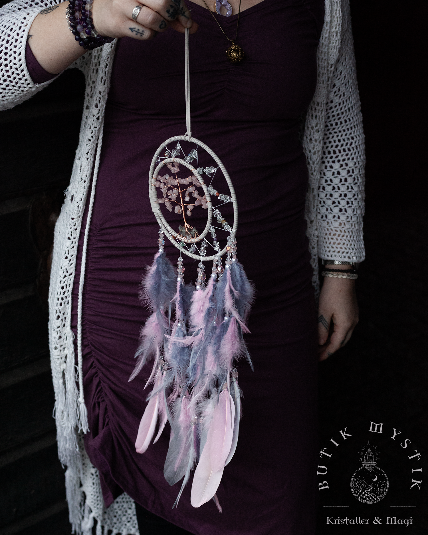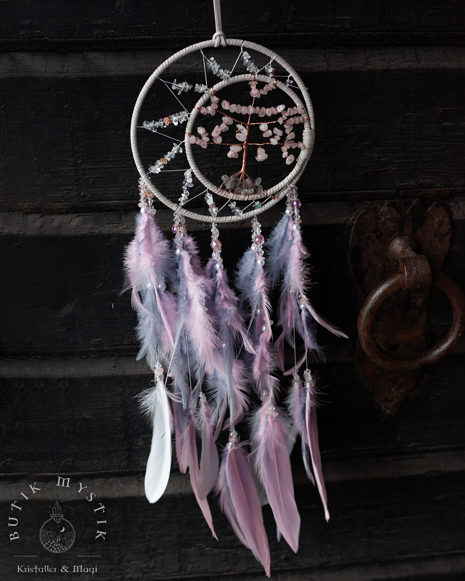 Drömfångare - Rosa/lila pastel med rosenkvarts