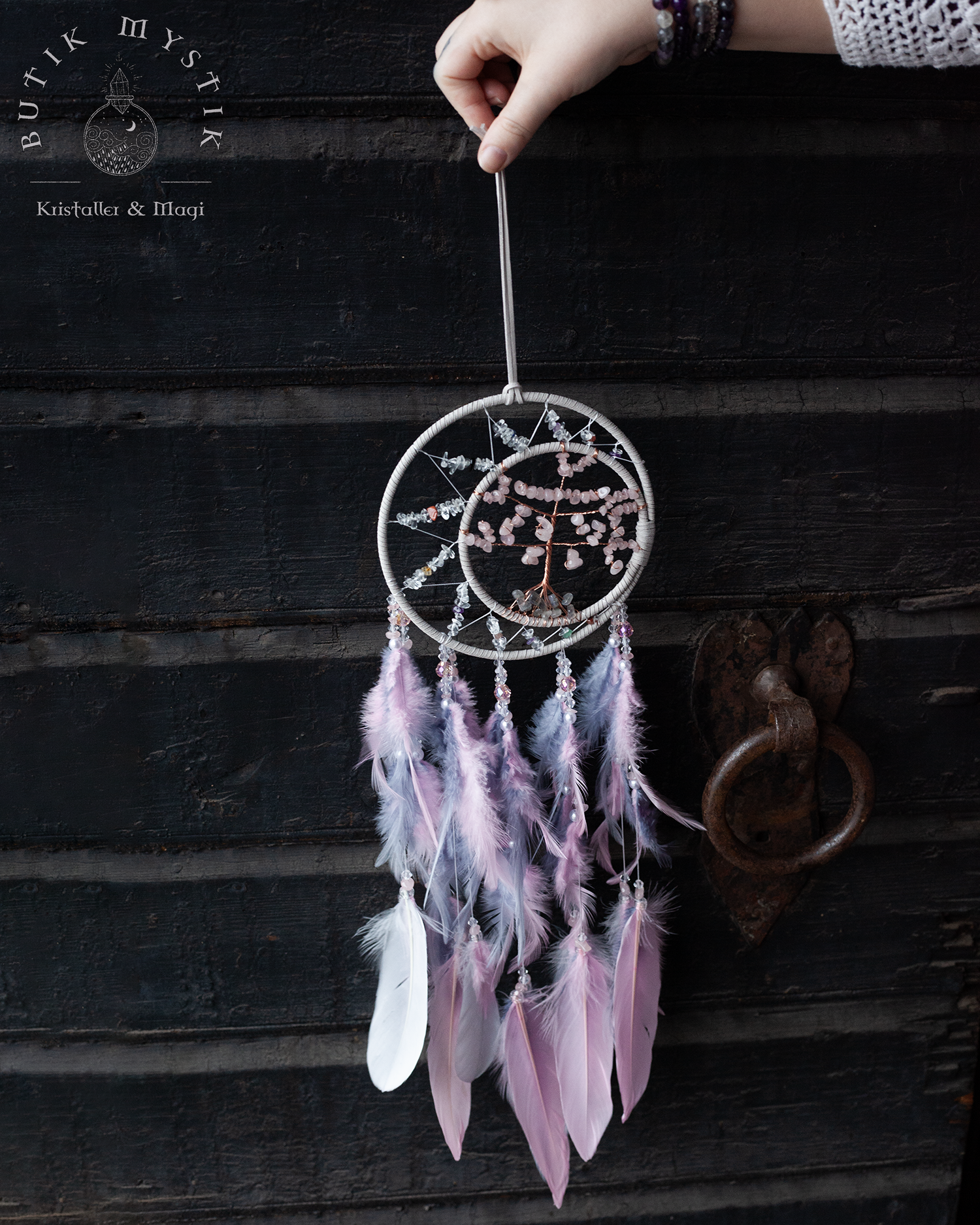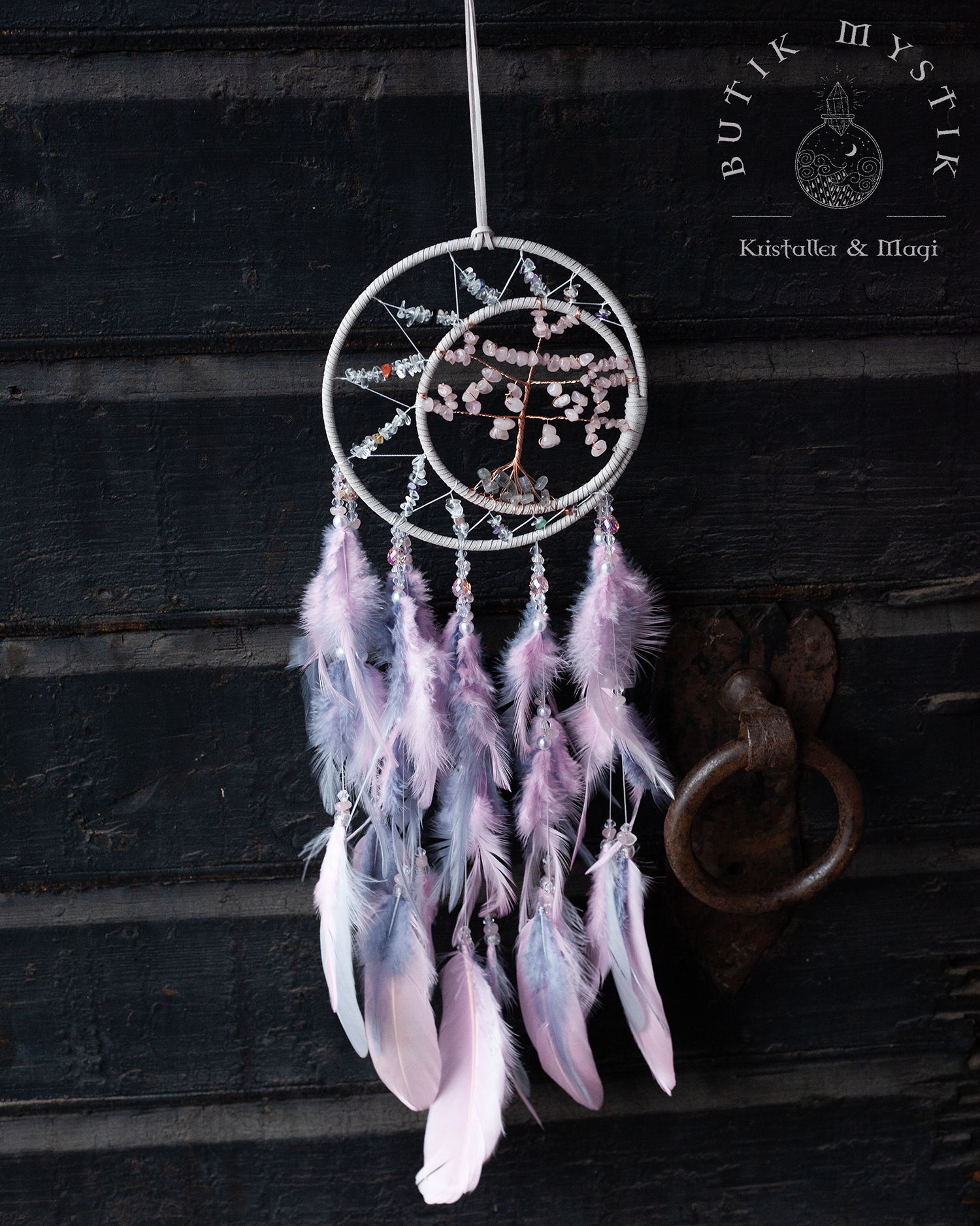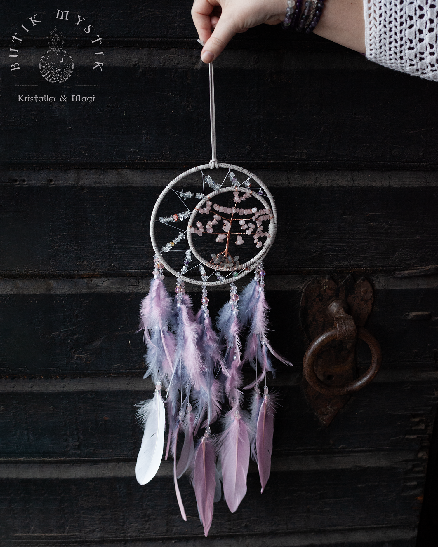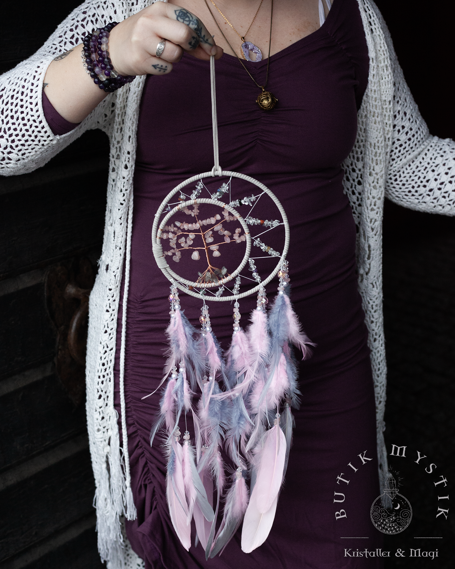 Drömfångare - Rosa/lila pastel med rosenkvarts