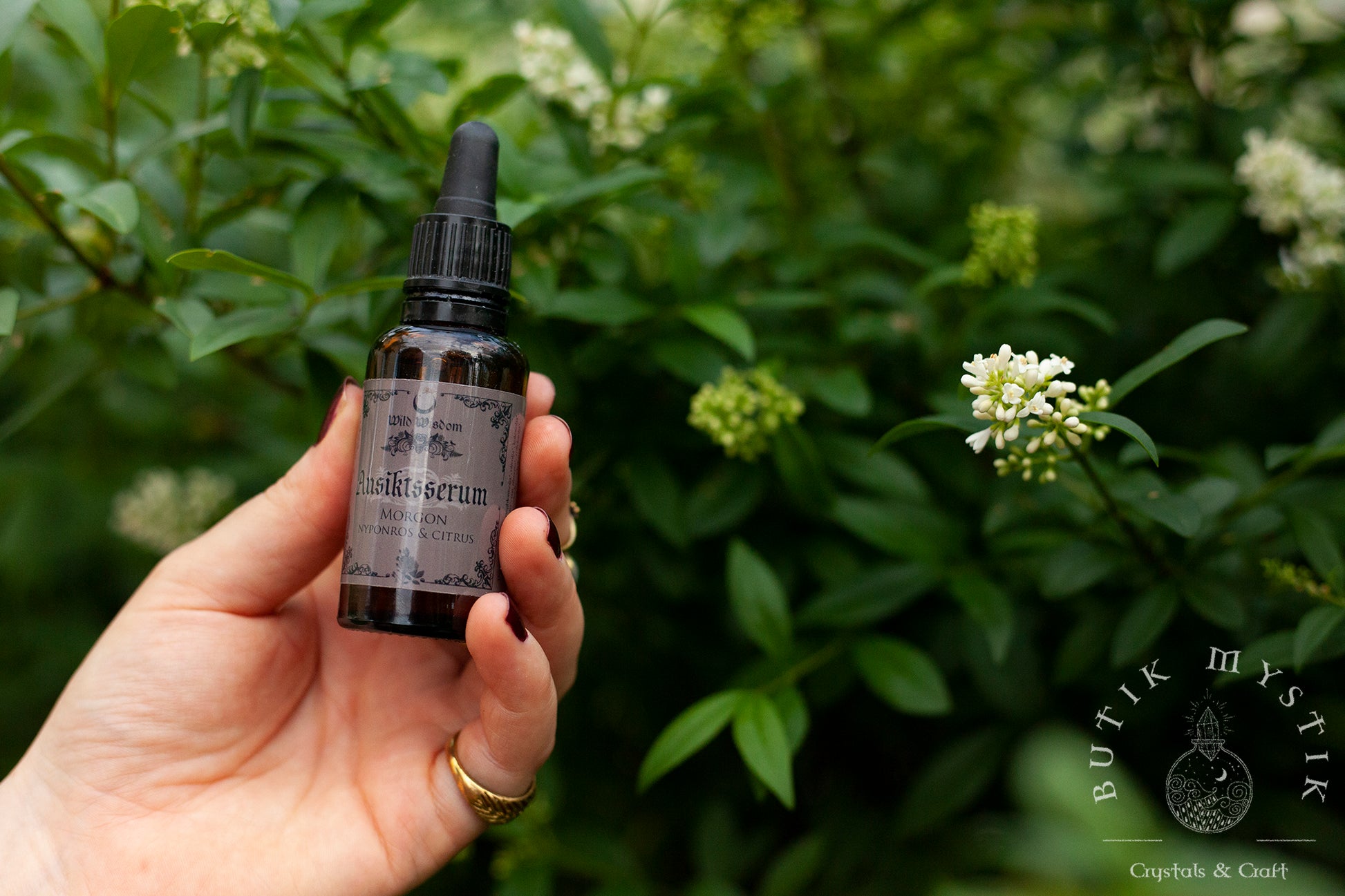 MORGONSERUM: En blandning av lätta, läkande oljor i kombination med en mild doft av ros och citrus. Alla oljor är noga utvalda för att lätt absorberas av huden och samtidigt mjukgörande, rika på vitaminer, fulla av antioxidanter och hjälpa till med återuppbyggnaden av hudceller. Ett utmärkt val för dig med mogen hud. Huden blir mjuk som ett rosenblad med detta serum. De eteriska oljorna valdes för att de är uppiggande och doftar fräscht.