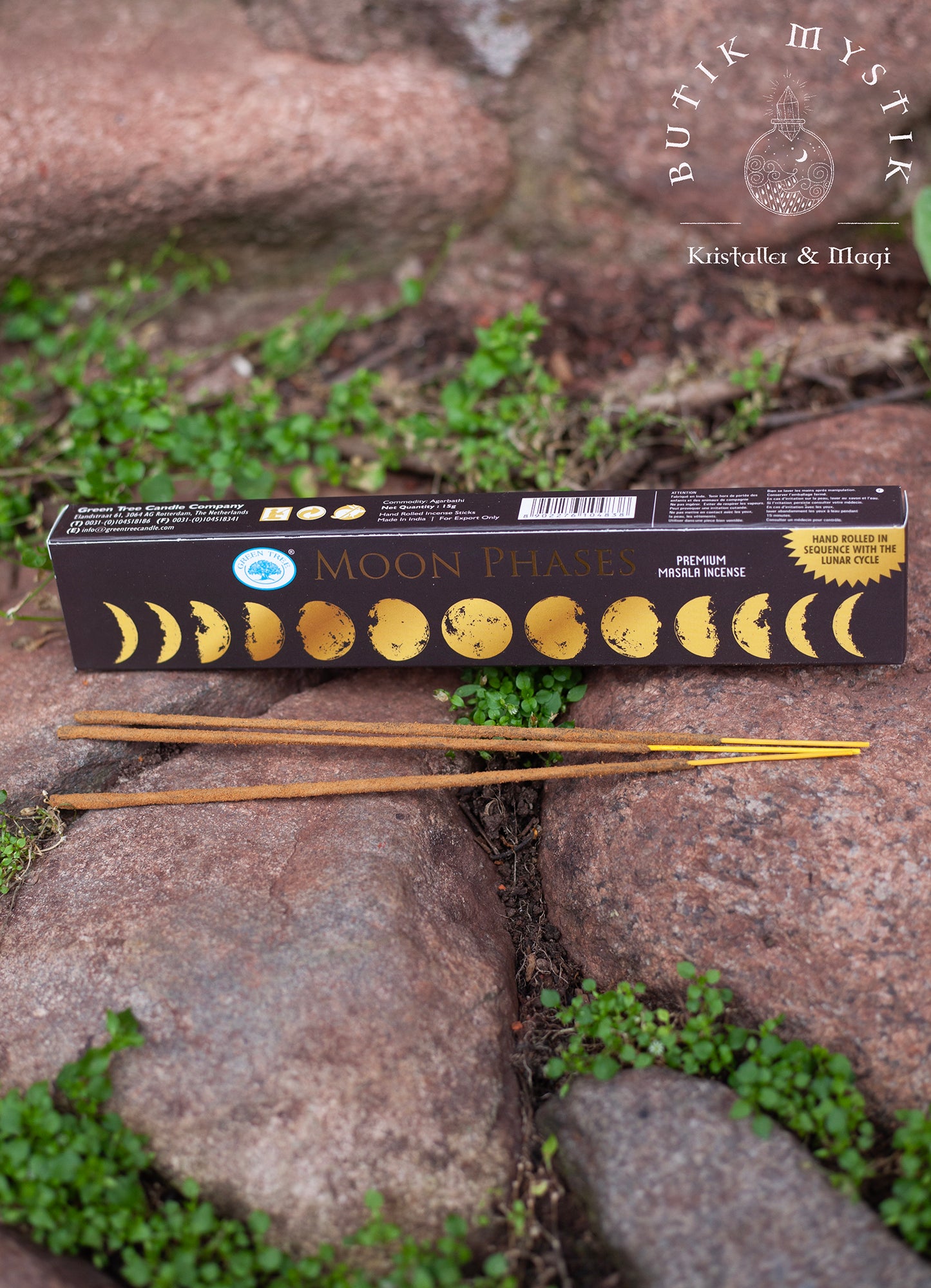 Rökelserna "Moon Phases" är en unik och mystisk doftkomposition som står i harmonisk samklang med måncyklernas oföränderliga rytm. Varje fase av månen har sin egen karaktär och energi, och dessa rökelser fångar essensen av dess olika skepnader, från den magiska nymånen till den strålande fullmånen.