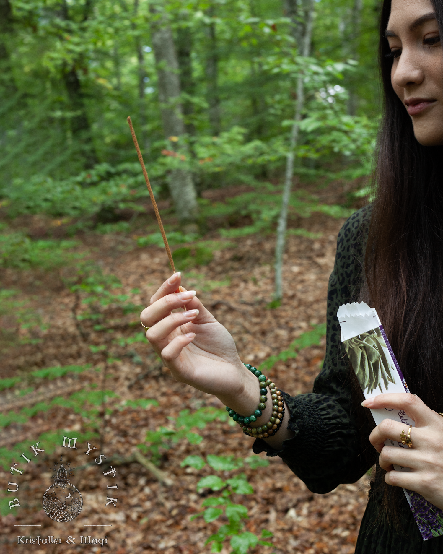 Tillsammans skapar dessa två dofter en balanserad och harmonisk upplevelse. När du tänder rökelsen sprider sig en behaglig och lugnande doft i rummet, vilket gör det till en idealisk följeslagare för yoga, meditation eller bara för att skapa en mysig atmosfär hemma.