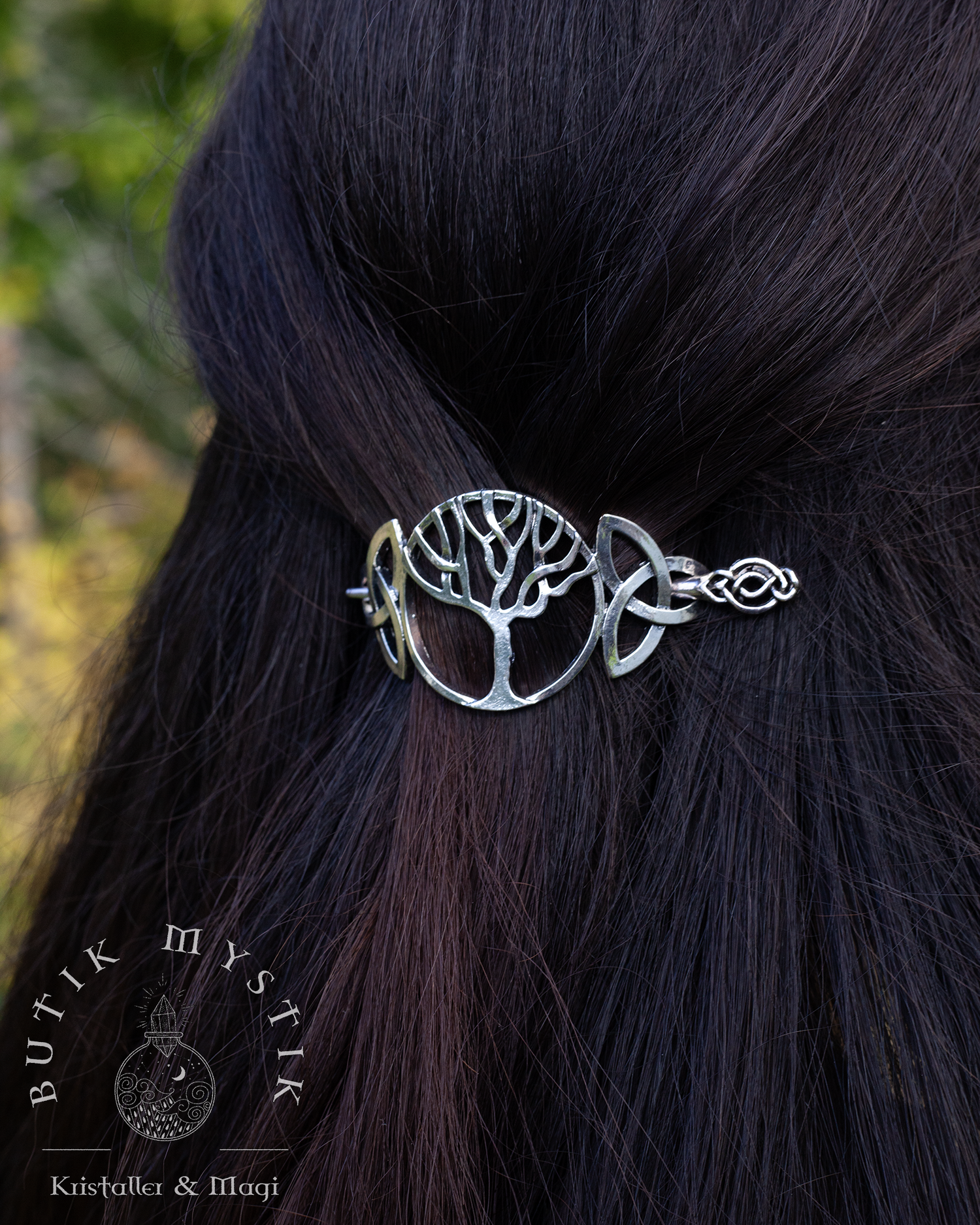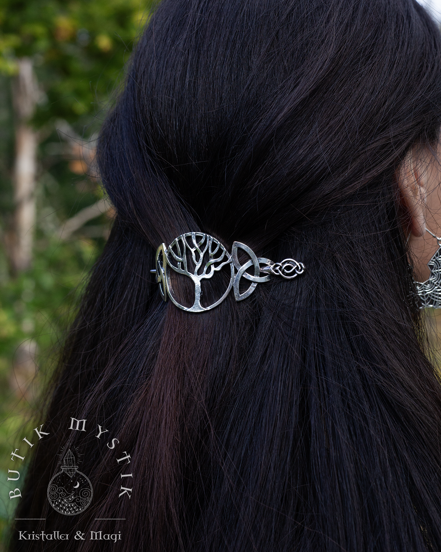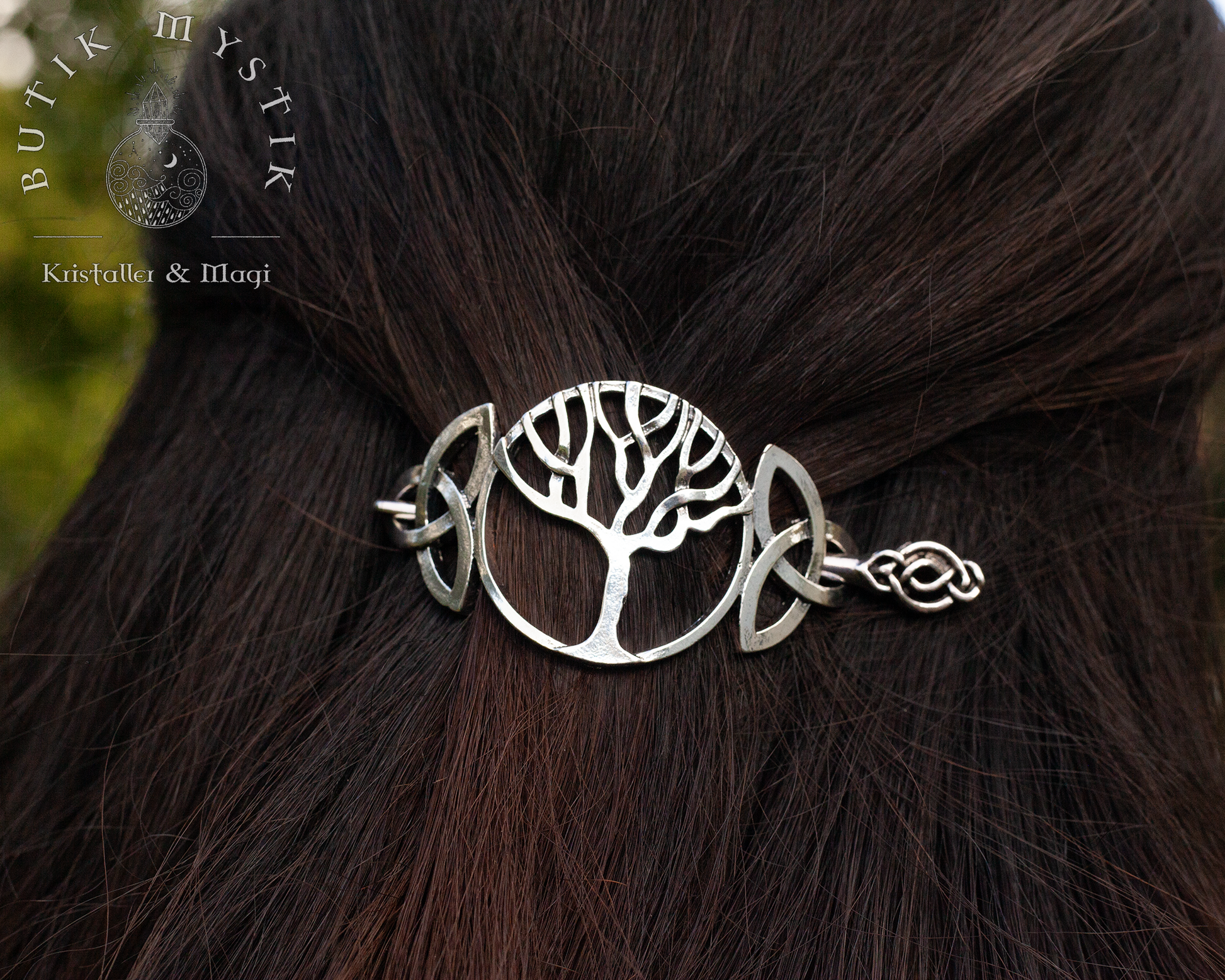 Hårspänne - Keltisk knut med livets träd och triqueta