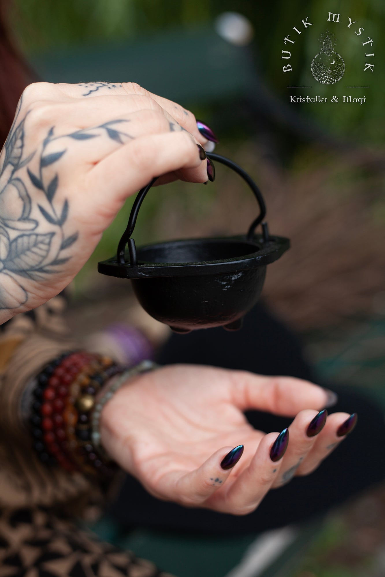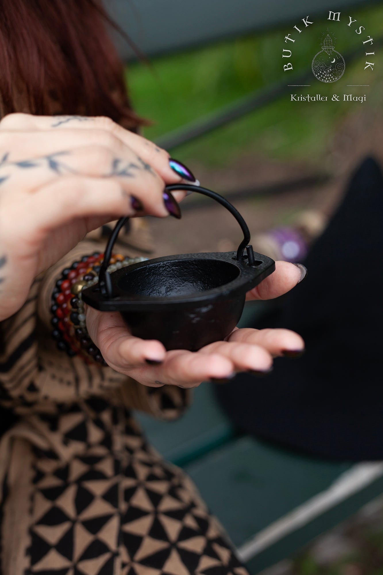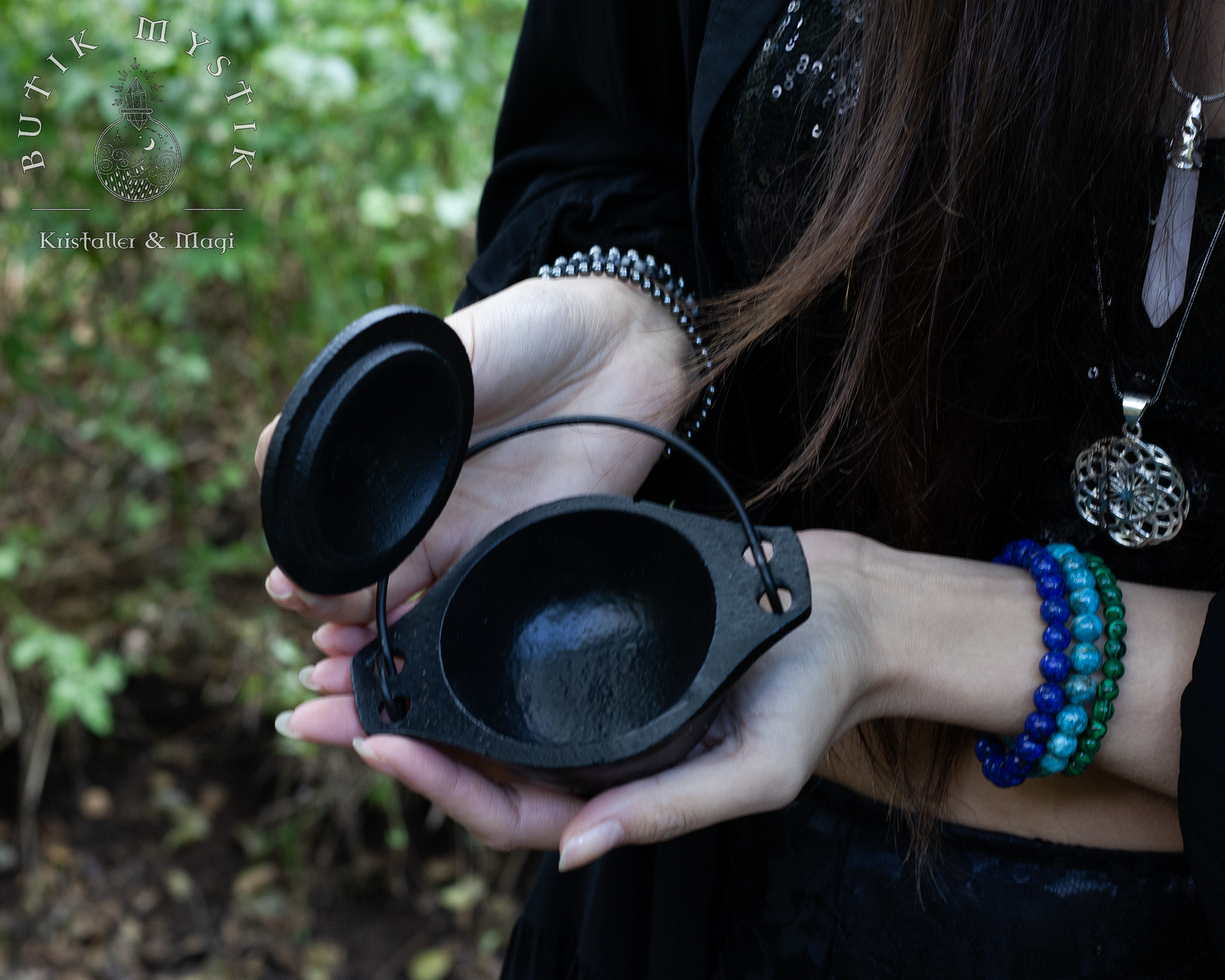 Denna lilla häxkittel kan du använda för att bränna dina spells, rökelser, heliga kådor eller andra örter. Du kan även använda den som skål till dina smycken, kristaller eller andra magiska föremål.