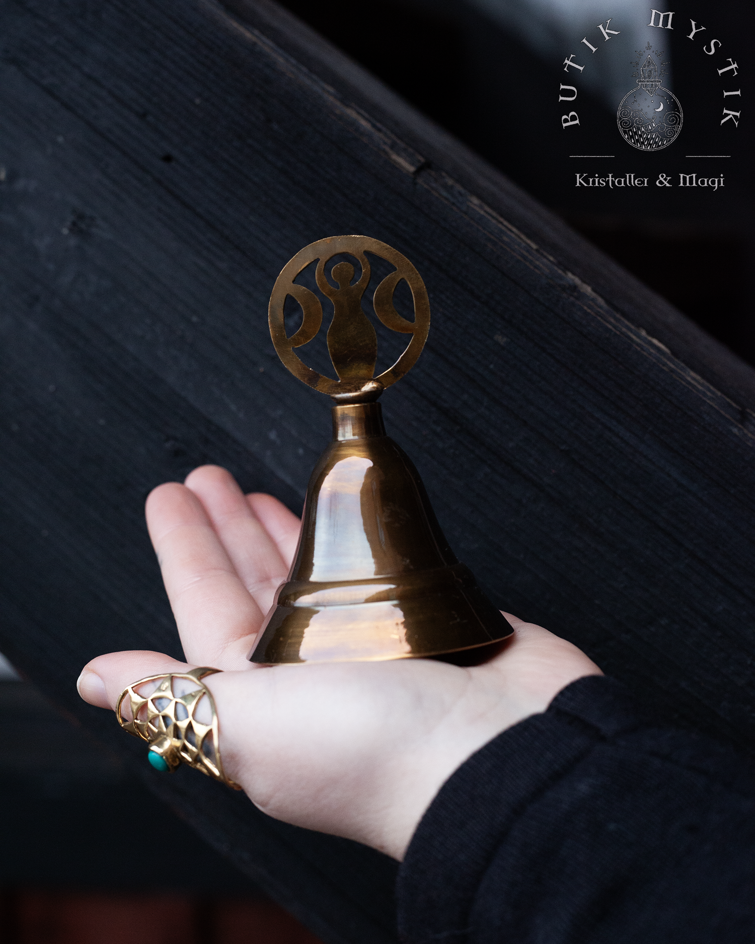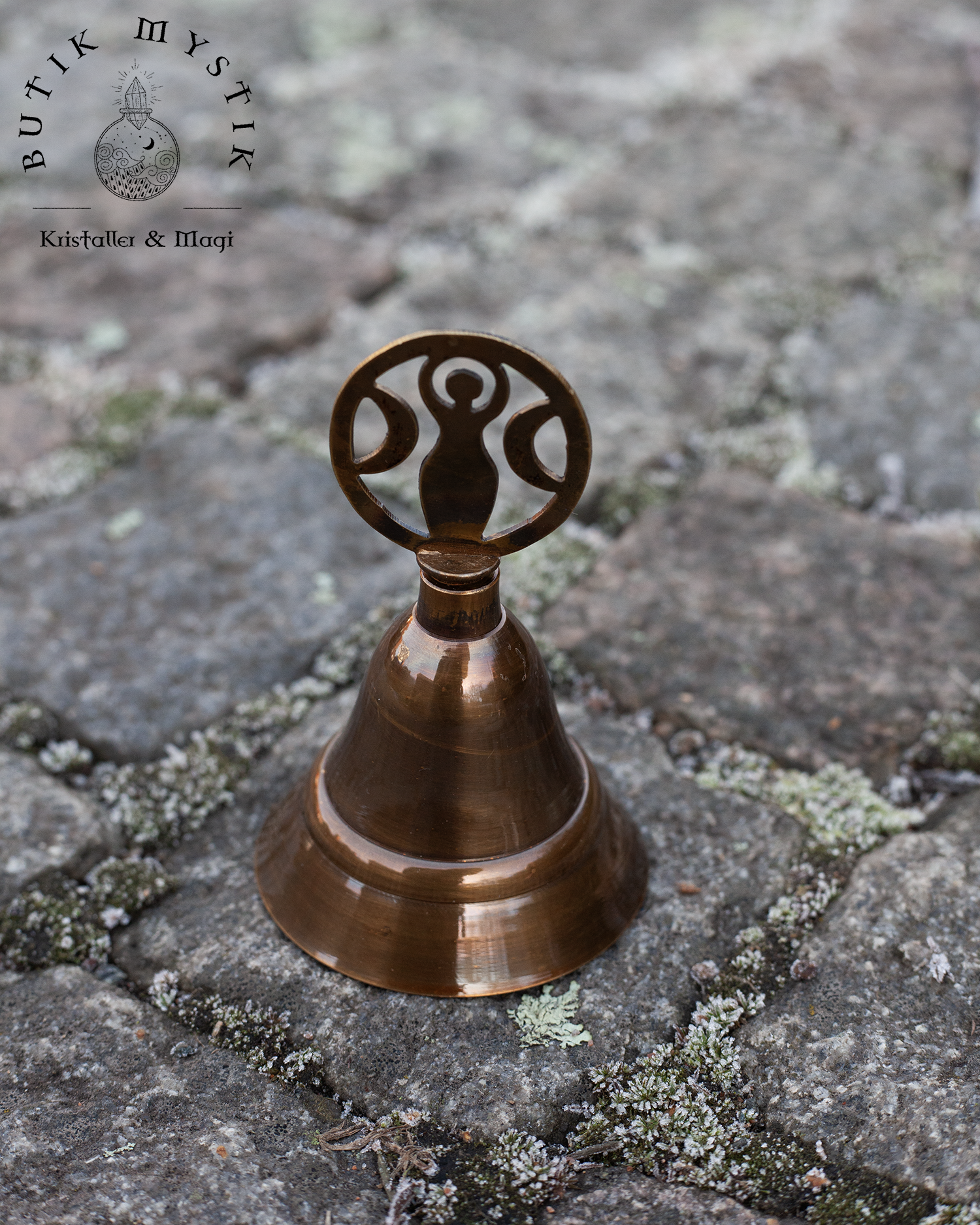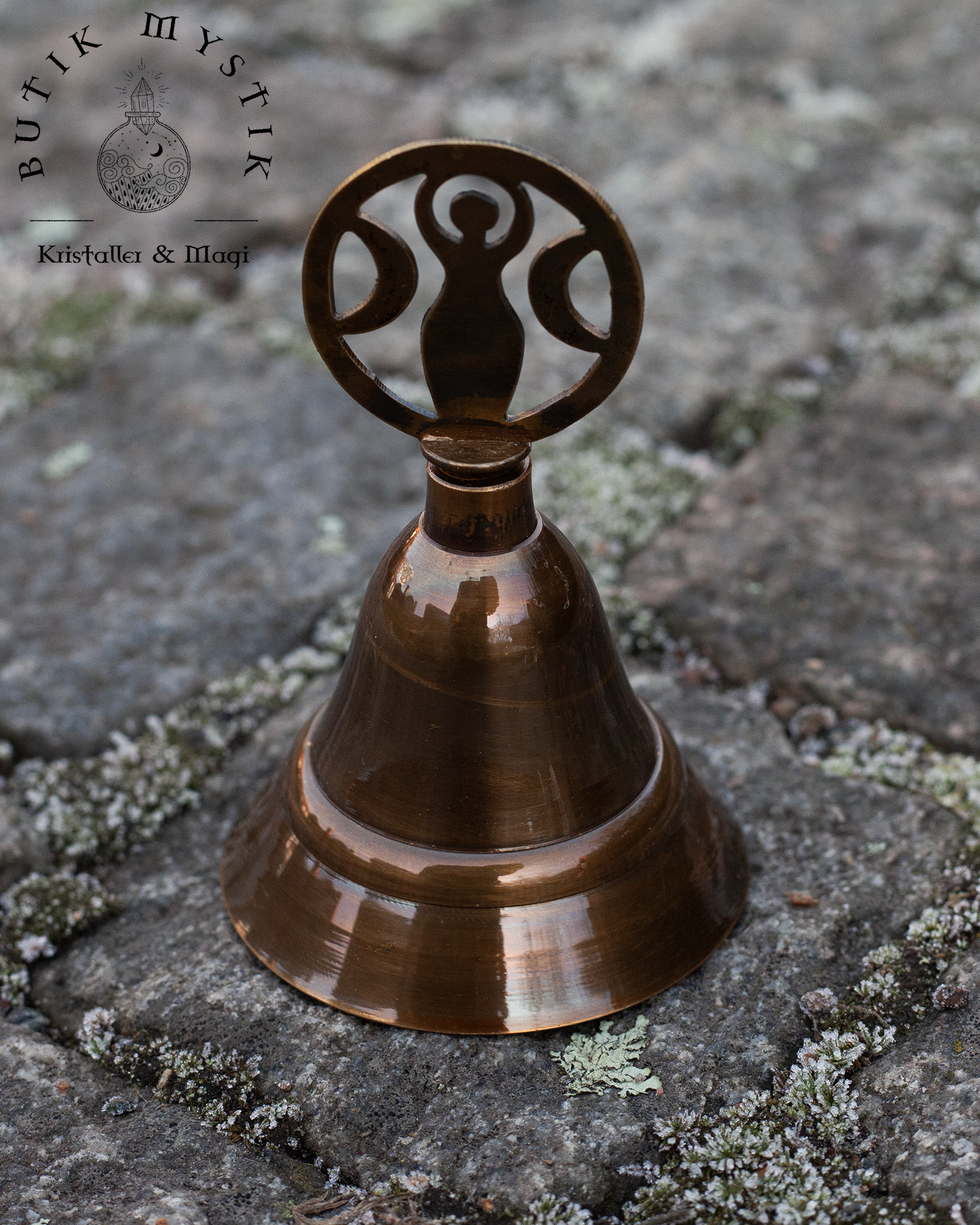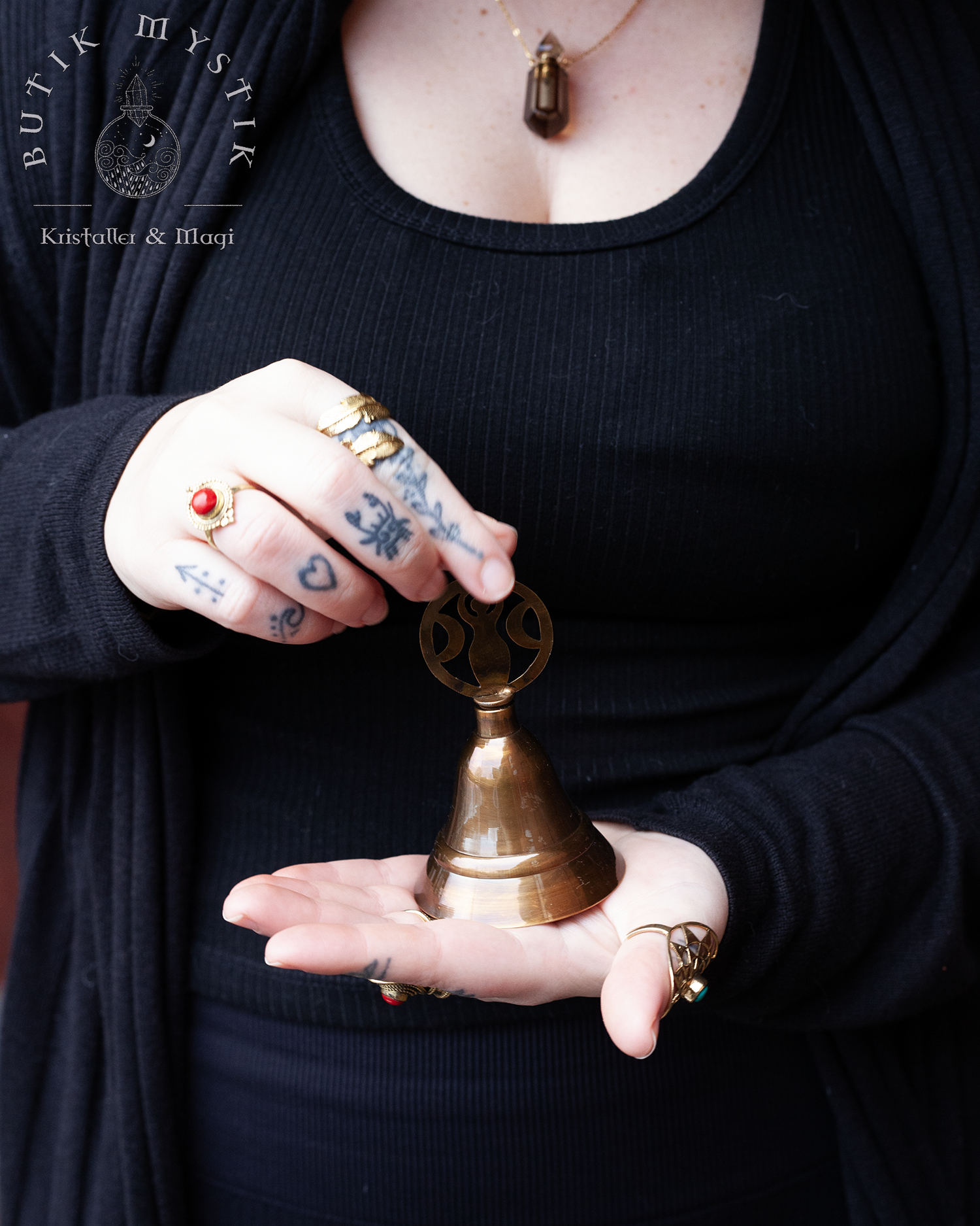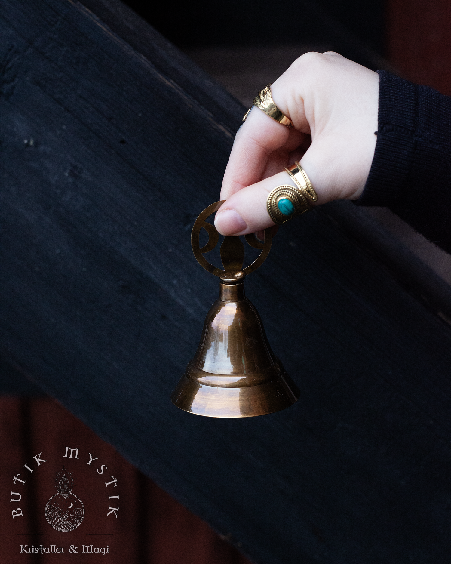 Klockan står på altaret, omgiven av ljus och dofter från rökelse som svävar genom luften. Använd pinglan för att rena energin runt dig, ditt altare eller runt föremål.