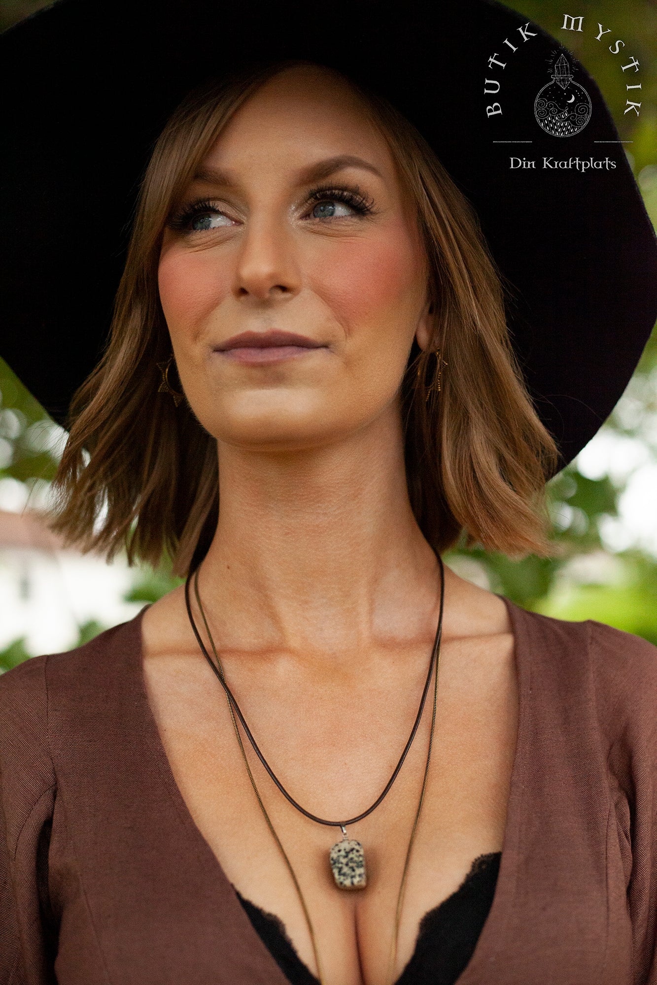 Kristallhalsband med lädersnöre - Dalmartinerjaspis