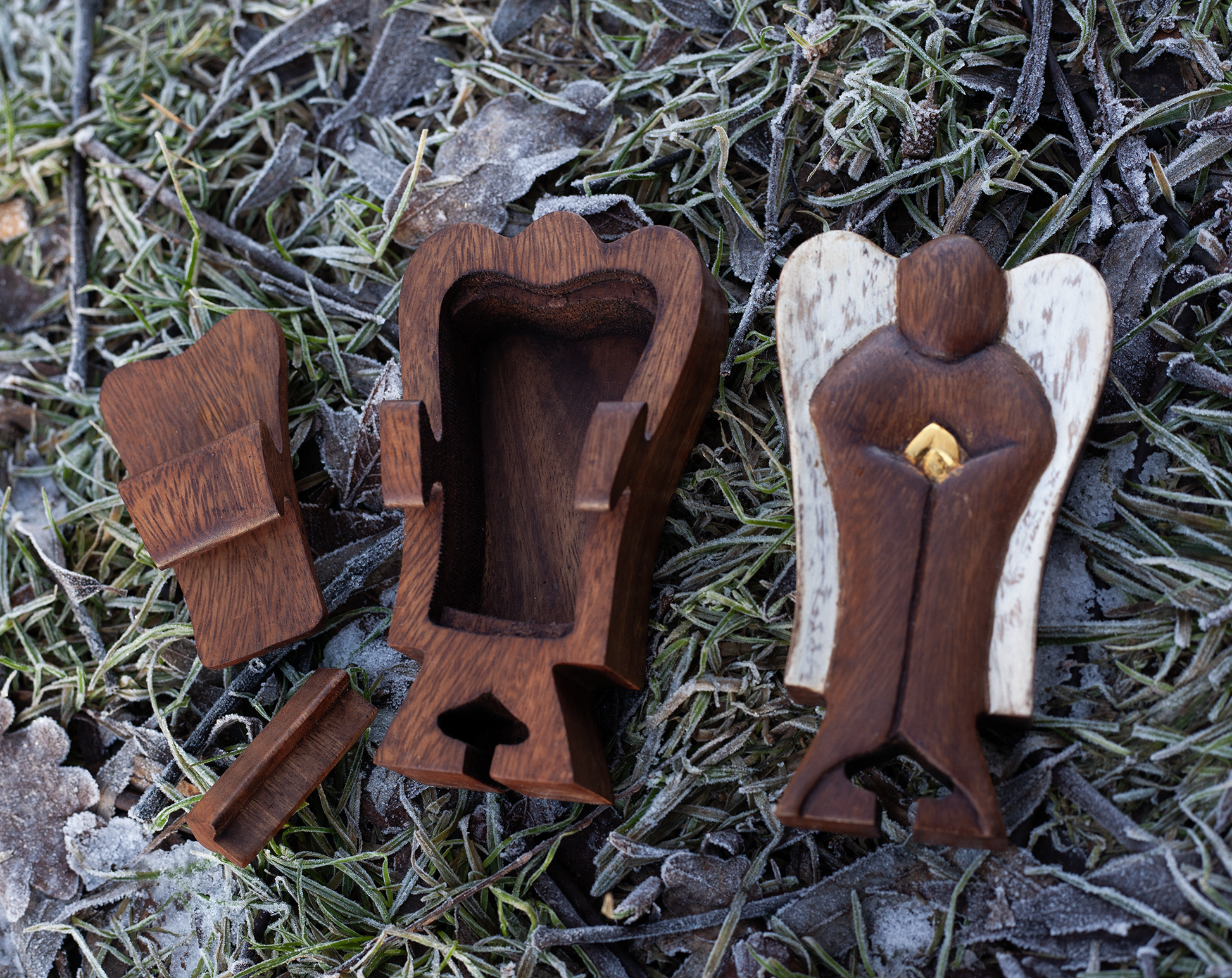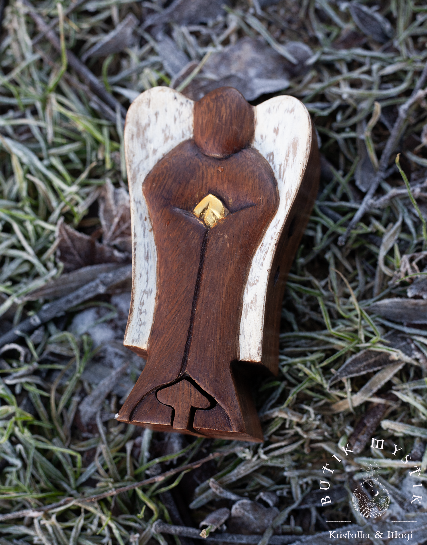 Varje ängelask har noggrant snidats för hand, soltorkat, ytbehandlats, polerats och målats av hantverkare på landsbygden.