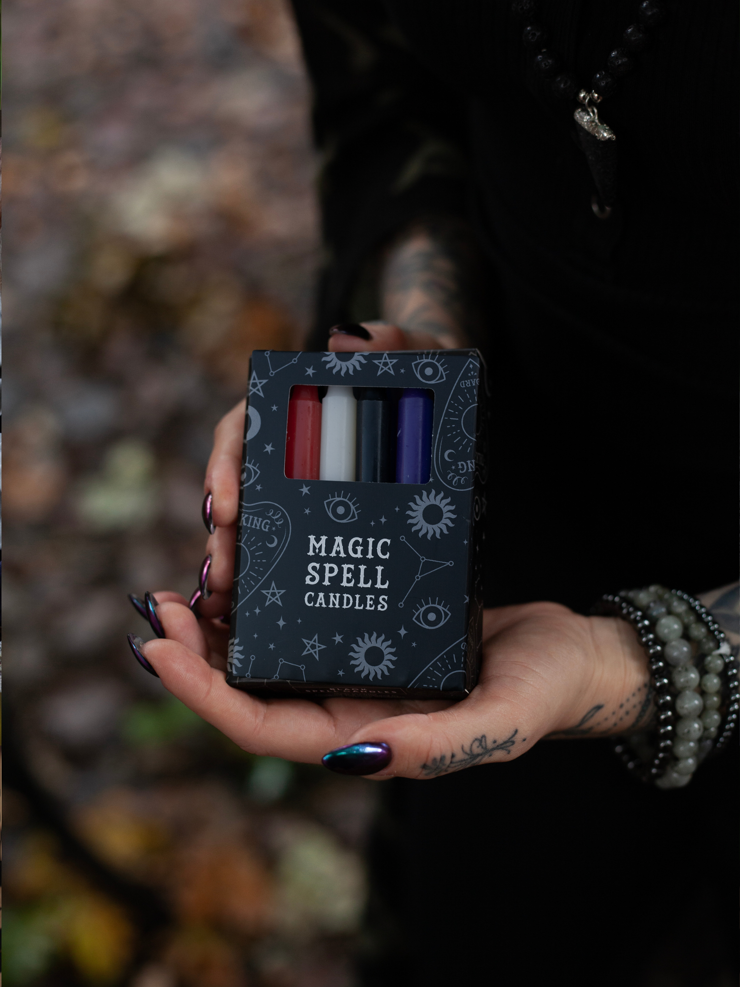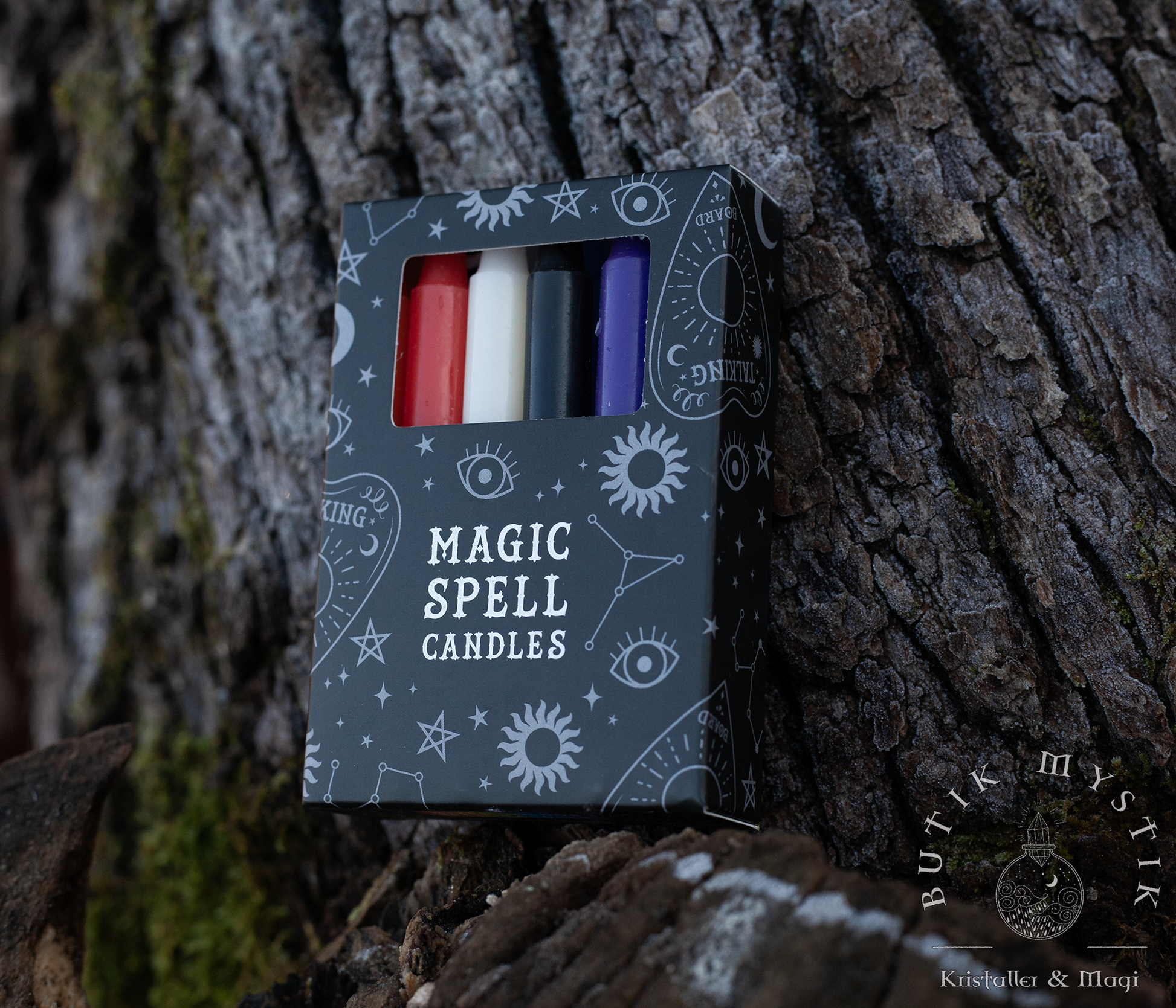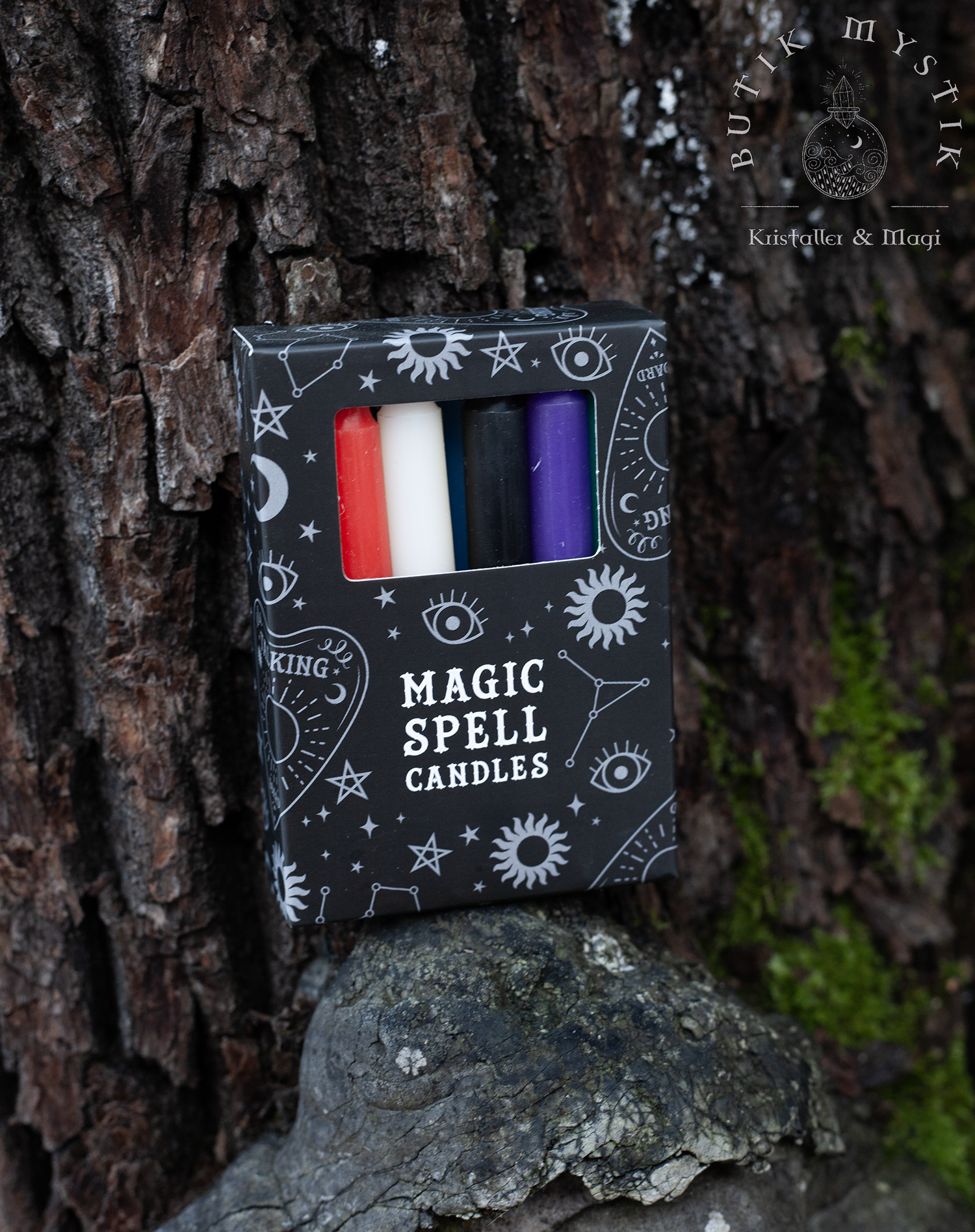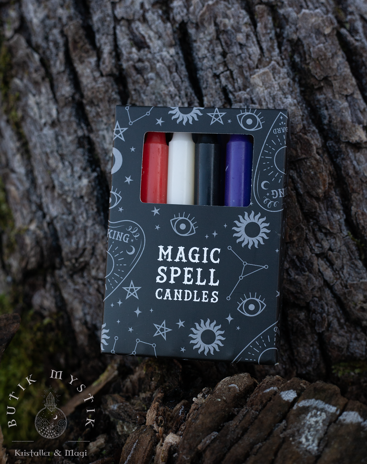 För att använda ljusen, skriv ner din önskan på ett papper i samma färg som ljuset. Tänd sedan papperet i en eldfast skål. Det är viktigt att ljuset brinner ner helt för att förtrollningen ska kunna verkställas. Varje ljus har en brinntid på cirka 1 timme. Våra stavljus är enfärgade genomgående (ej doppade) och tillverkade av högkvalitativt paraffinvax.
