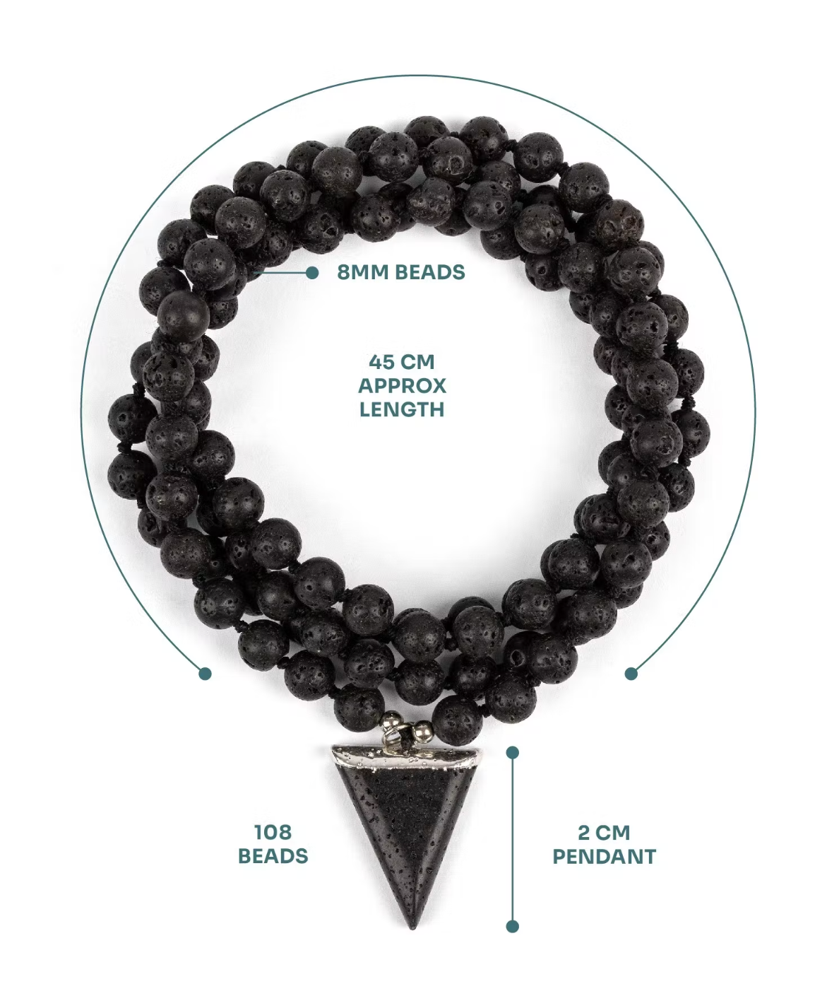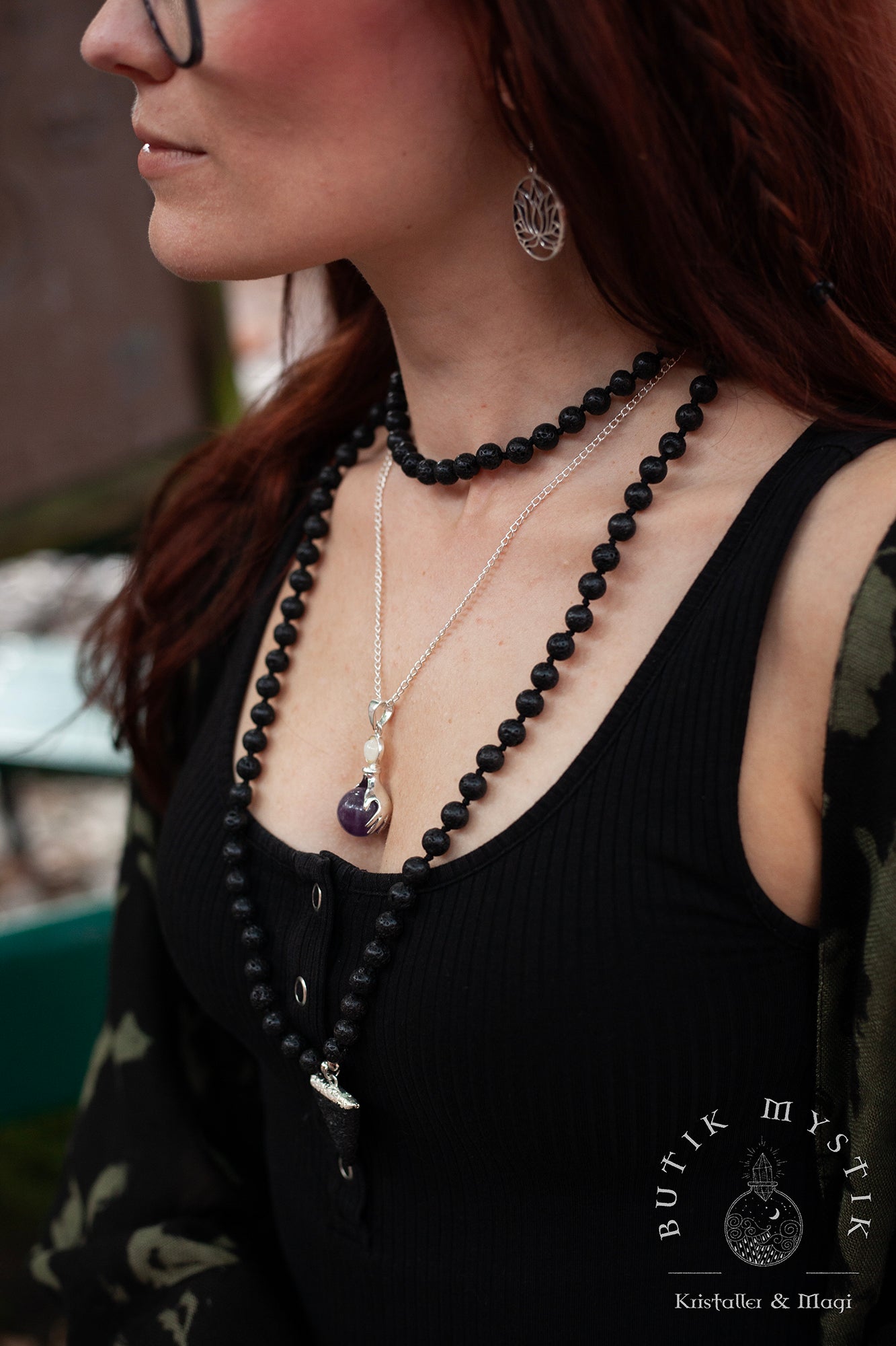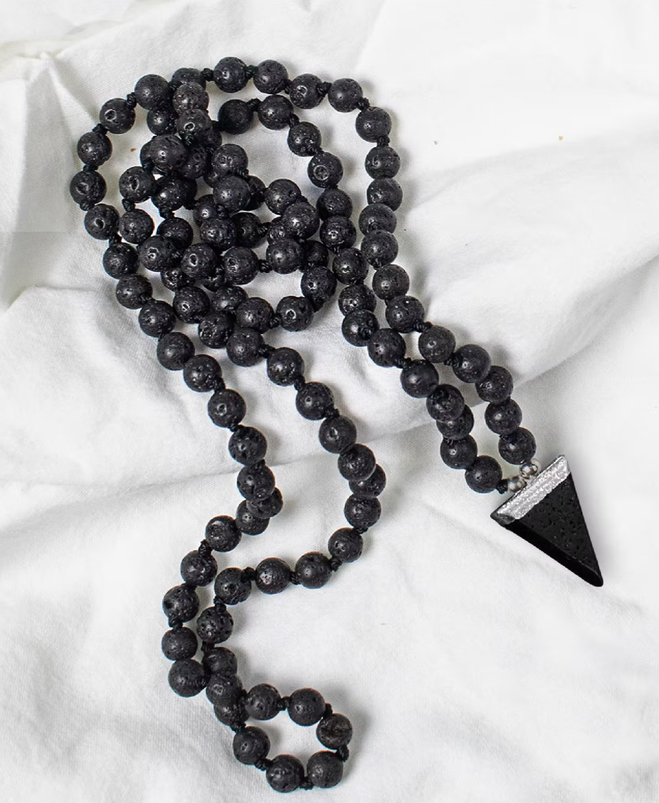 Stärk och jorda din anslutning till jorden för att tillåta stabilitet i tider av förändring med detta vackra knutna mala-halsband.