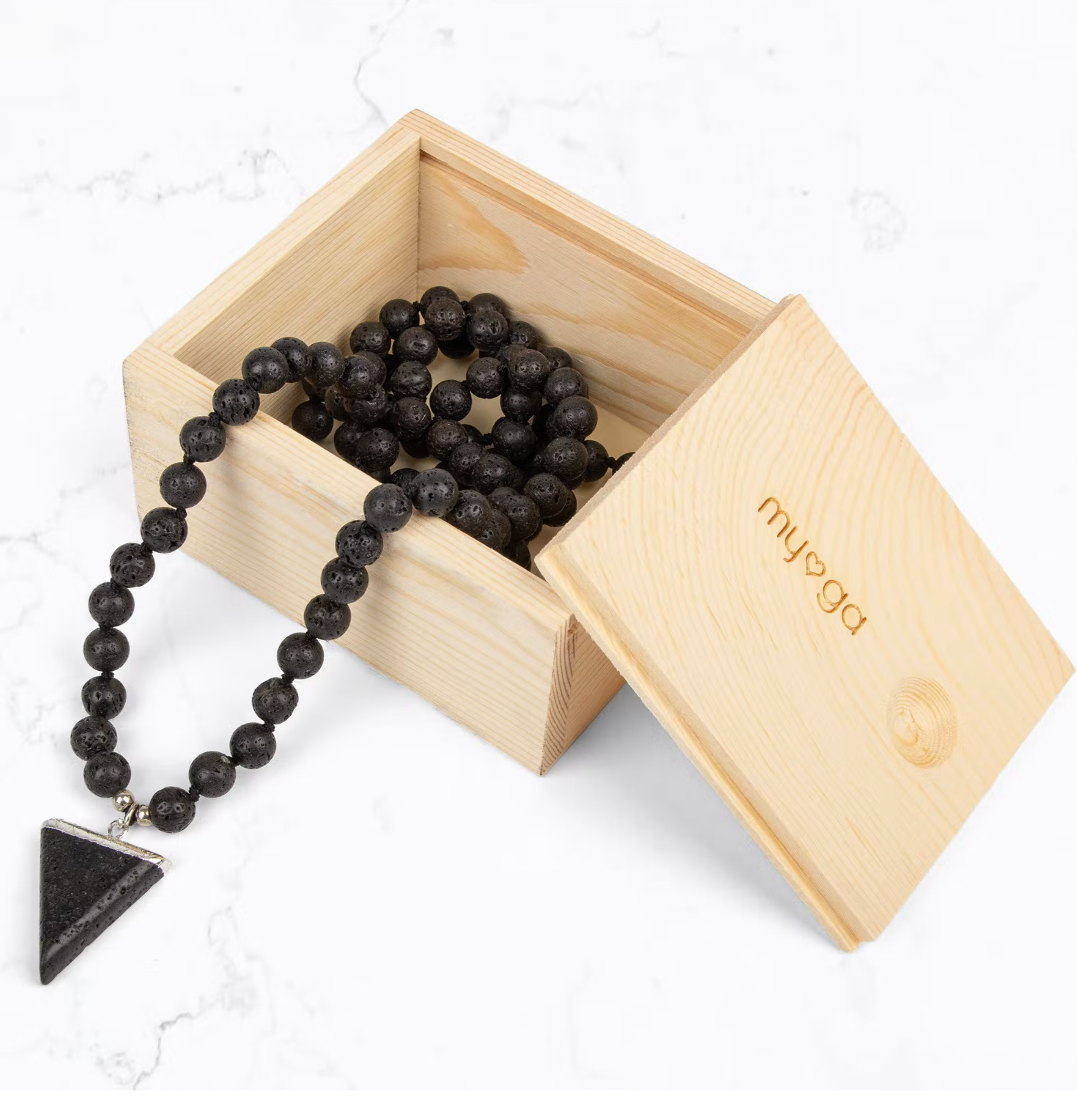 Halsbandet kommer i en bomullspåse med dragsko, som sedan ligger i en vacker snidad trälåda. Inuti lådan finns också ett litet informationshäfte, som gör att mottagaren kan se vilka stenar de har fått, och innebörden bakom deras pärlhalsband.