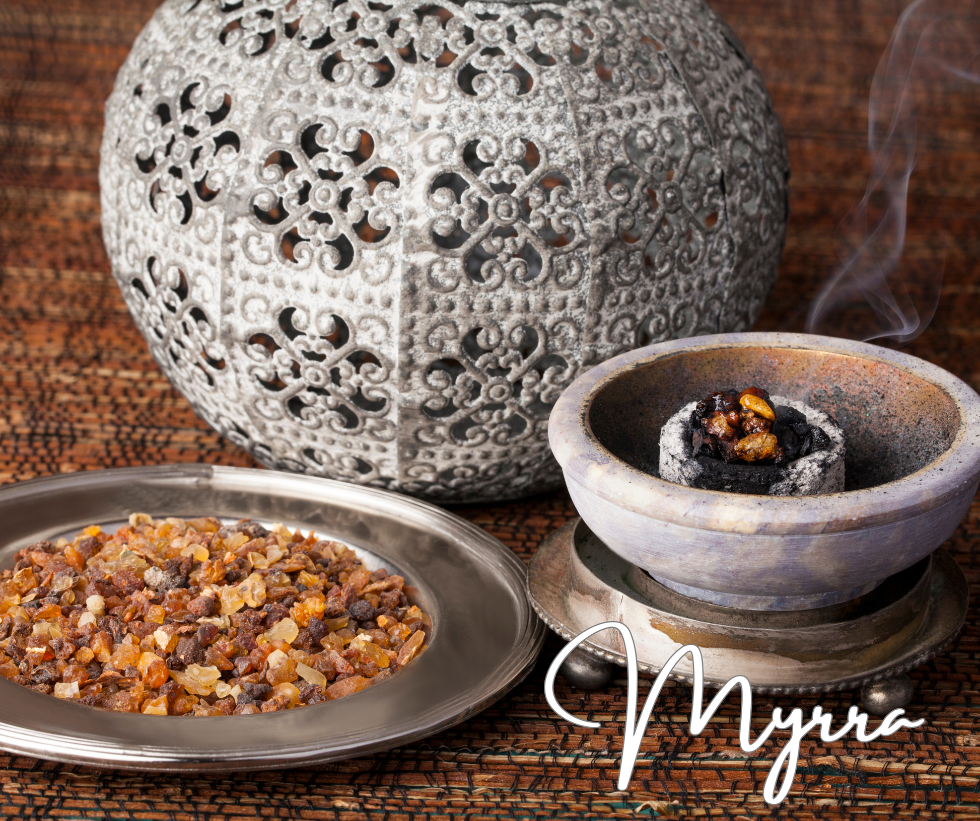 Myrra är en kåda som används i aromaterapi och religiösa sammanhang världen över. Doften sägs boosta anden och själen, lindra störningar i nervsystemet och rensa negativ energi.