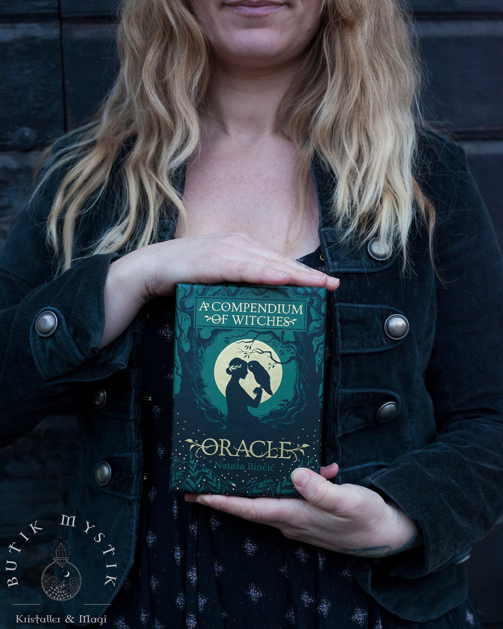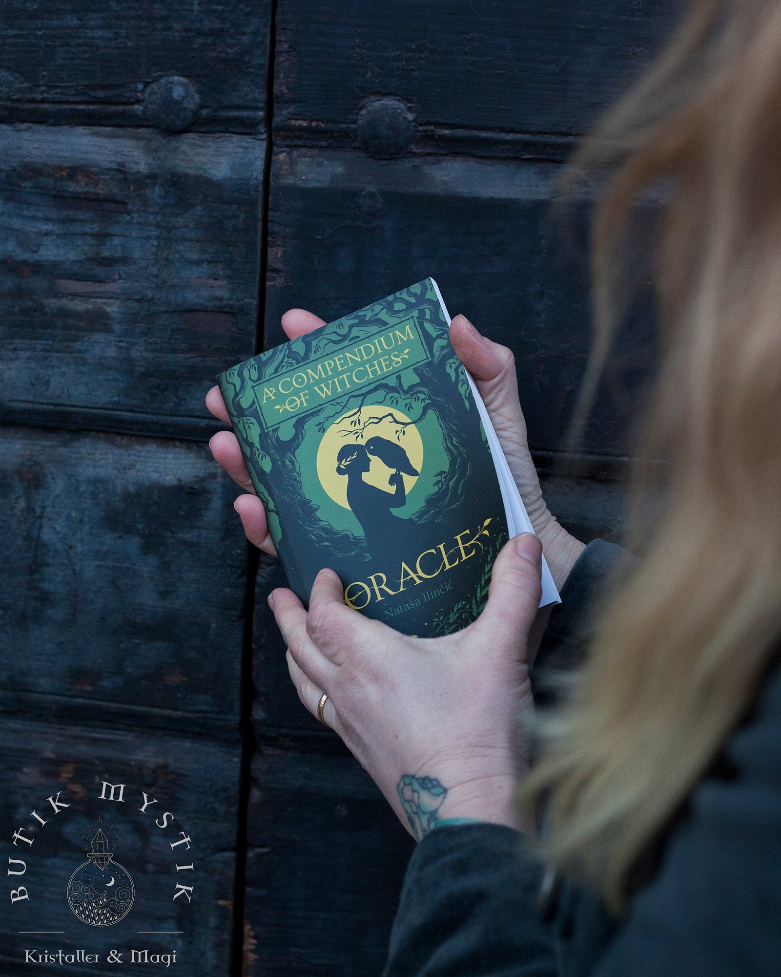 "A compendium of witches" orakelkort innehåller berättelser och porträtt av fiktiva häxor från hela världen i olika noggrant forskade historiska miljöer. Norska Vǫlur, antika grekiska sierskor, galliska druider, Ainu-eremiter, Jakut-sjamaner, tuffa skyterkvinnor, kamerunska häxor, voodoo-arbetare, renässansalkemister, baltiska healers... lever alla på de olika korten.