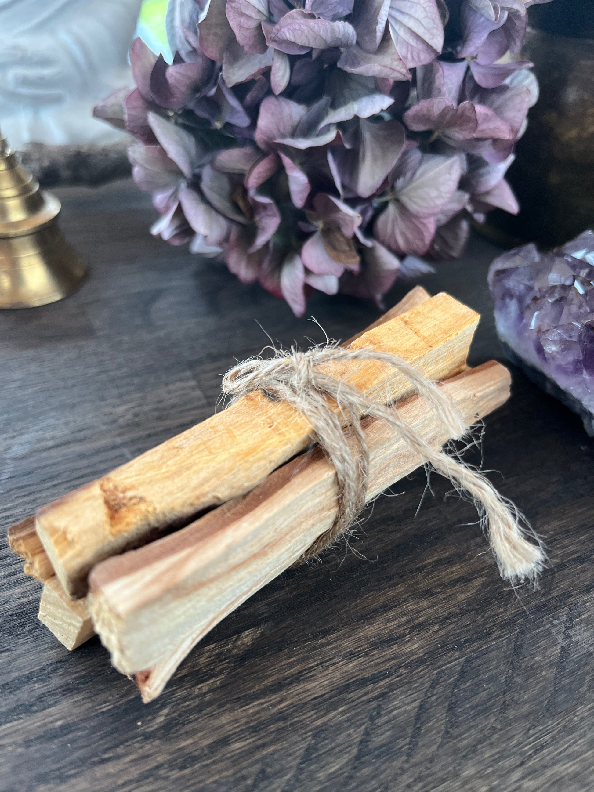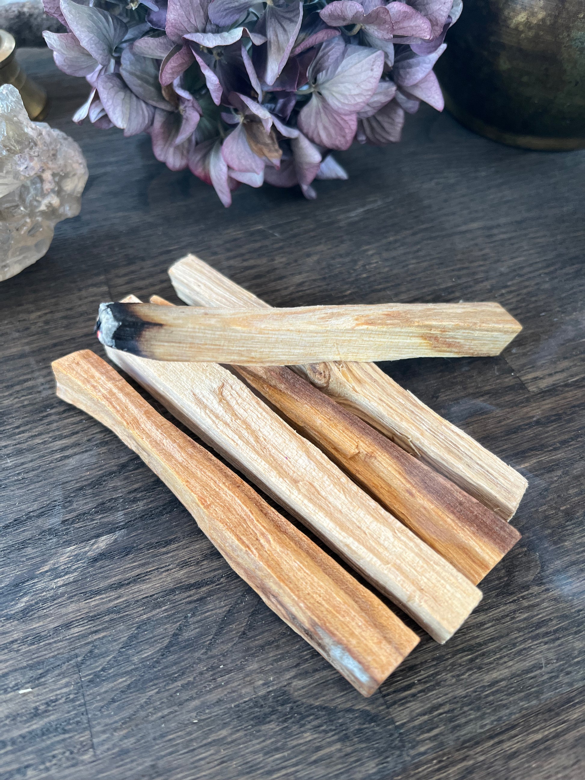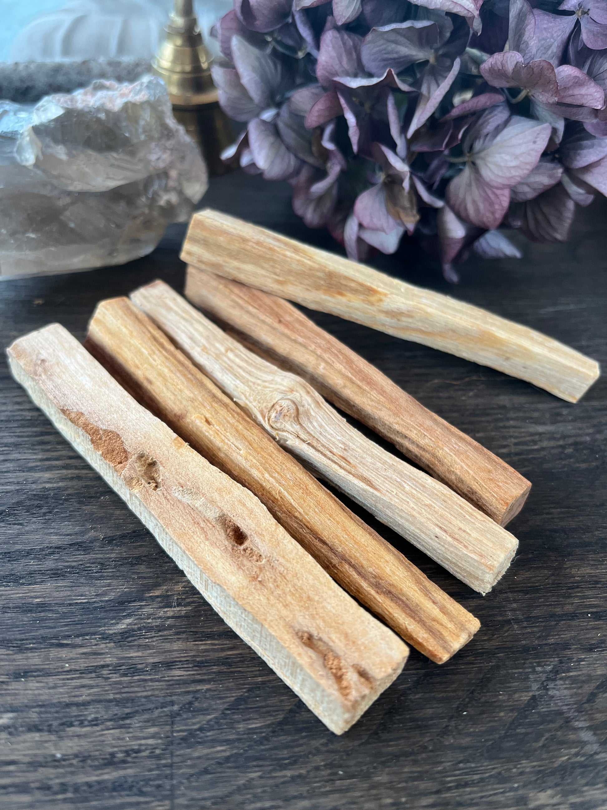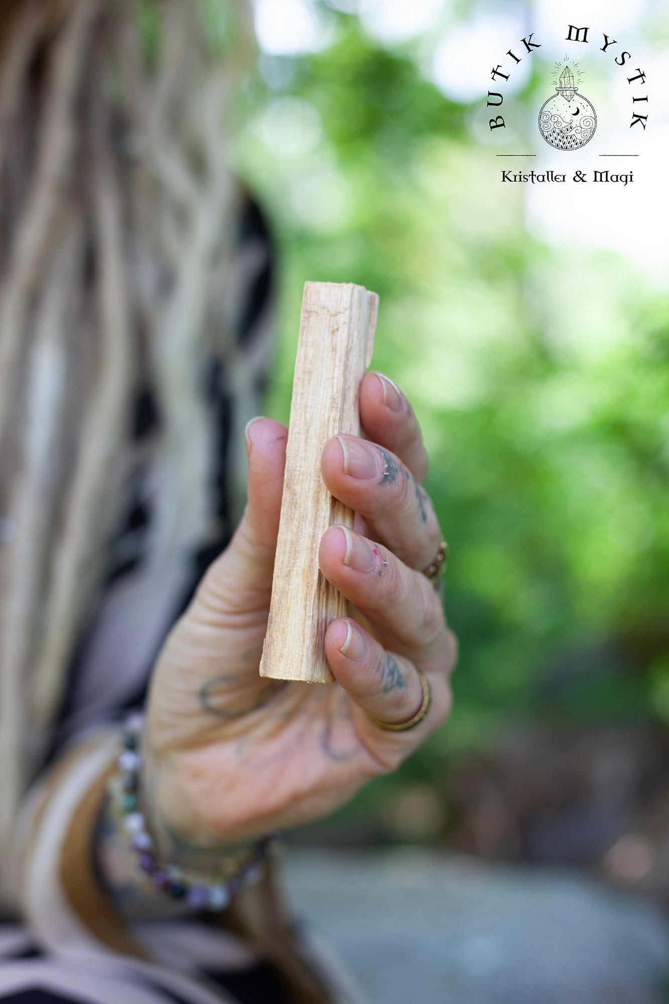 Våra Palo Santo är pinnar som kommer från naturligt nerfallna träd, som således dött en naturlig död. De kommer ifrån Peru & har torkat under många år för att få sin speciella doft. Dessa bidrar inte till regnskogsskövling eller förstörelse av skog & mark. Palo Santo har använts av Sydamerikas ursprungsbefolkningar, i olika former av ritualer sedan urminnes tider.