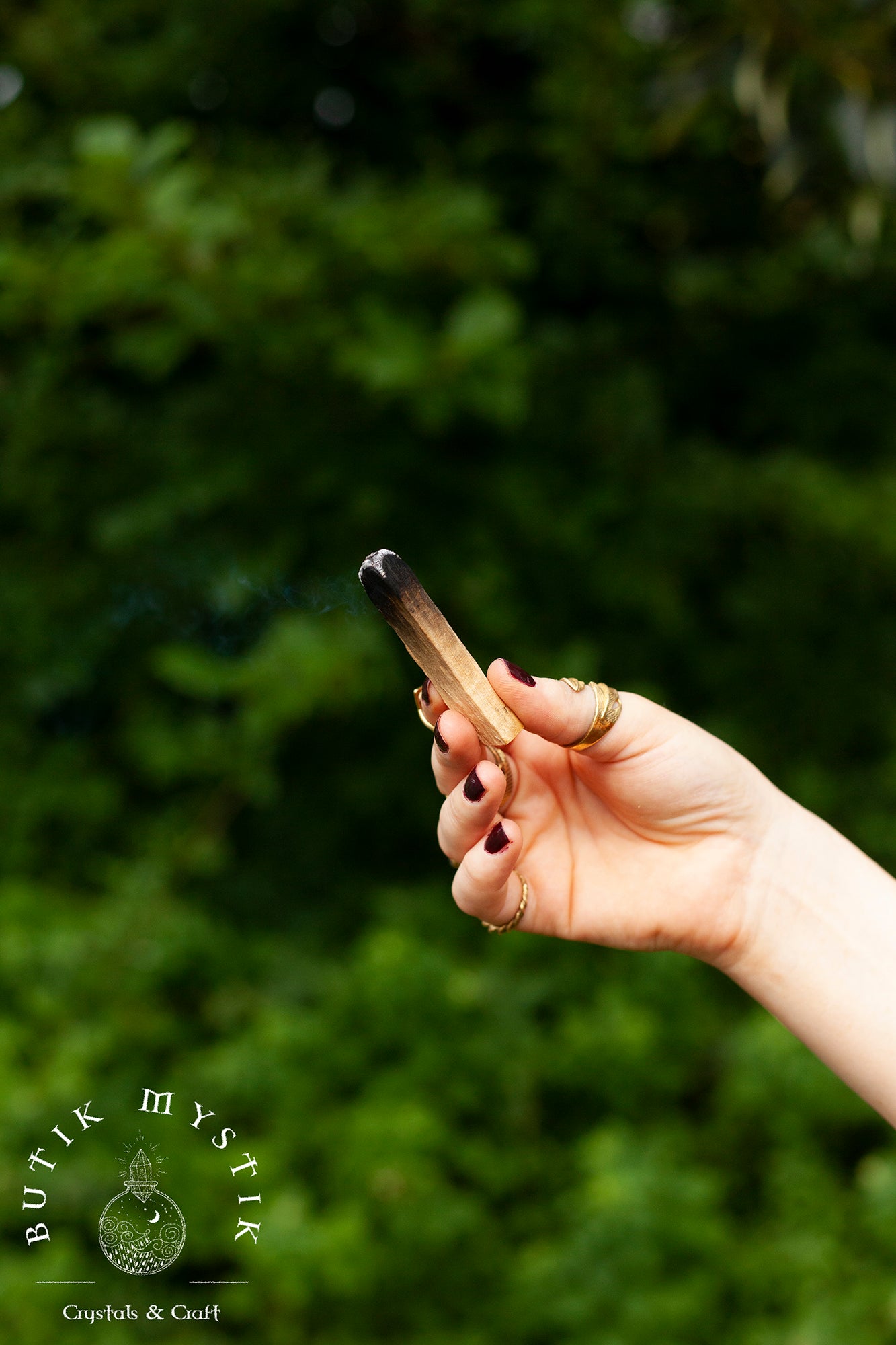 Du tänder ena änden av stickan & låter den brinna en stund (runt 30 sekunder till 1 minut). Därefter blåser du ut lågan, men låter det glöda. För sedan röken över det du vill rena. Sägs vara mycket spirituellt renande. Du kan sedan släcka din Palo Santo genom att sänka ned glöden i ett värmetåligt fat eller t.ex. ett vattenglas. Ha gärna ett fönster öppet när du använder dig av rökelser så att röken kan ta sig ut.