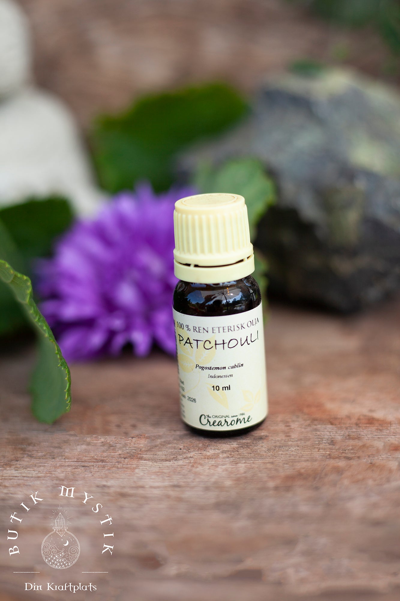 Patchouli eterisk olja En unik, varm, jordig och rund doft. Avslappnande. Passar de flesta hudtyper. Har en sammandragande verkan och stimulerar nybildningen av huden vilket gör det populär ianti-age produkter eller produkter för mogen hud. Kan med fördel användas på akne och svampinfektioner. På fett hår och fet hud.