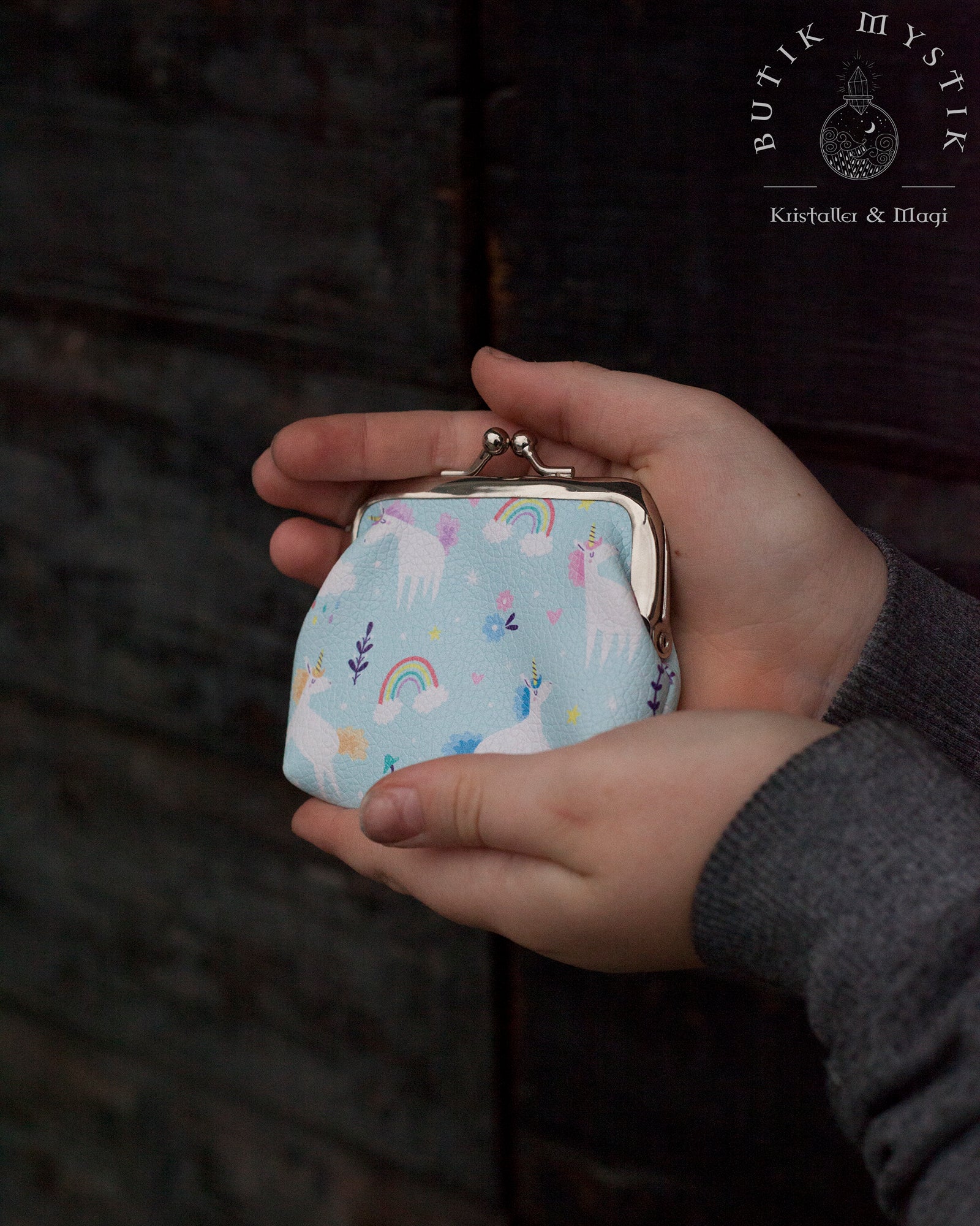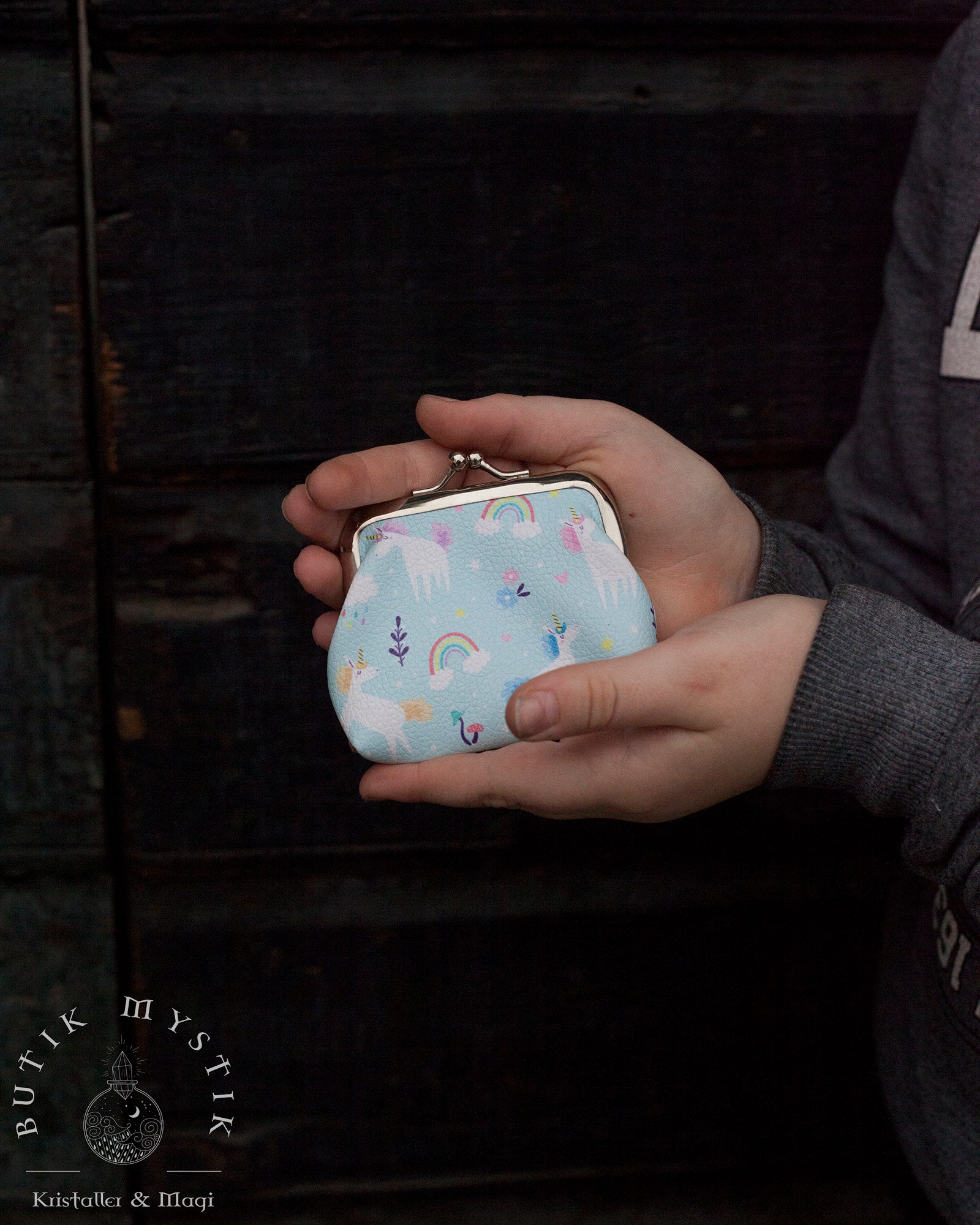 Vår blå portmonnä/myntplånbok är en lekfull accessoar som passar perfekt för shoppingäventyr med fickpengar för små barn. Den erbjuder både en praktisk och förtrollande lösning för att förvara småsaker på ett ordnat sätt!