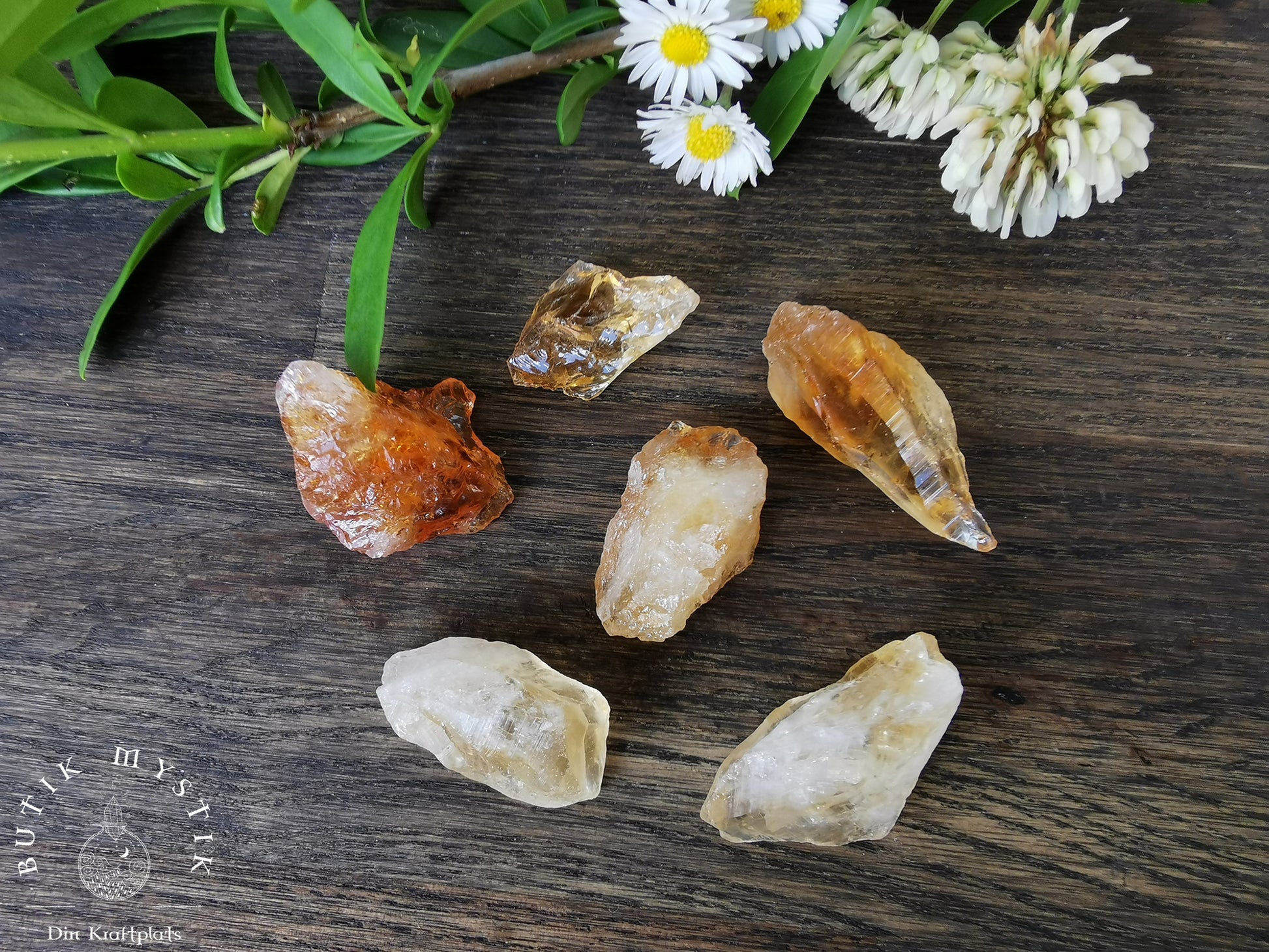 Soliga Citrin har en glädjefylld vibration som sänder utåt och omkring. Citrin hjälper dig att befria dig från depression, släppa taget om ilska. Citrin är en kreativ sten, för in glädje, optimism, i ditt medvetande. Den dämpar oro och nervositet, utmärkt att använda för studenter.