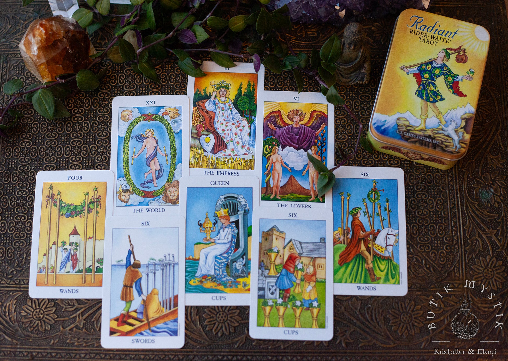 The brilliantly colored tarot deck that has been popular for decades is now presented in a charming keepsake tin. For Radiant Rider-Waite, the artwork of Pamela Colman Smith has been updated and enhanced with a vibrant palette of colors, bringing new energy and radiance to the familiar scenes of 78 cards.