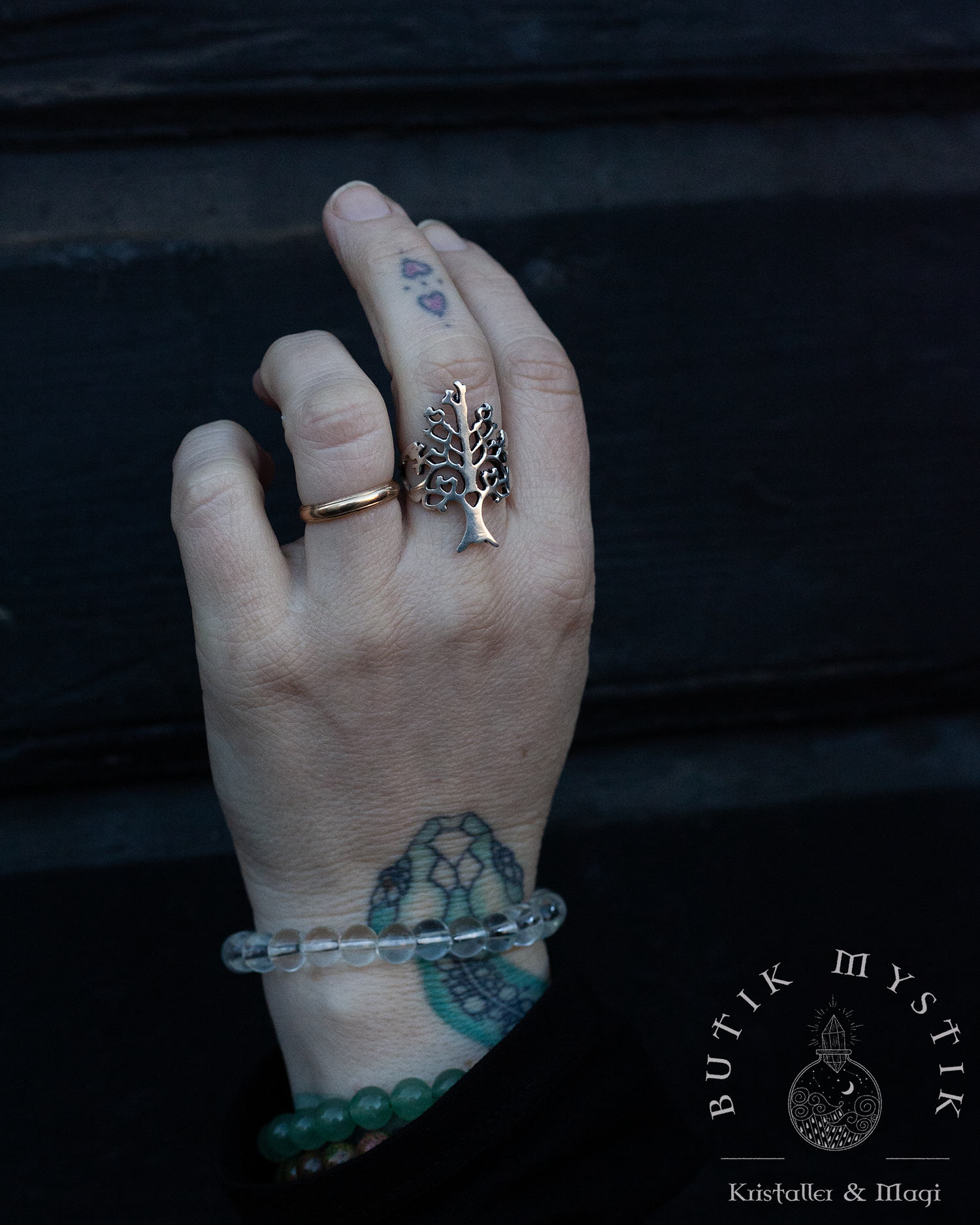 Vacker silverring med livets träd.
