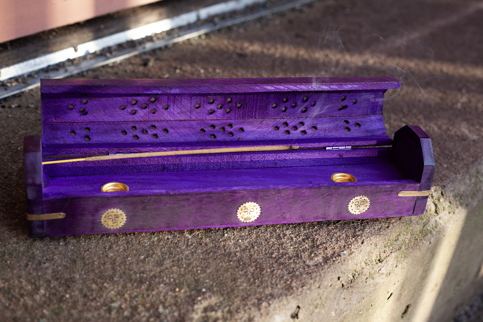 Efter att ha tänt rökelsepinnen eller konen, placera den helt enkelt i hålen som är gjorda för inuti lådan och njut av "dansen" eftersom dofterna sakta börjar lämna lådan och fylla rummet med en fridfull doft.