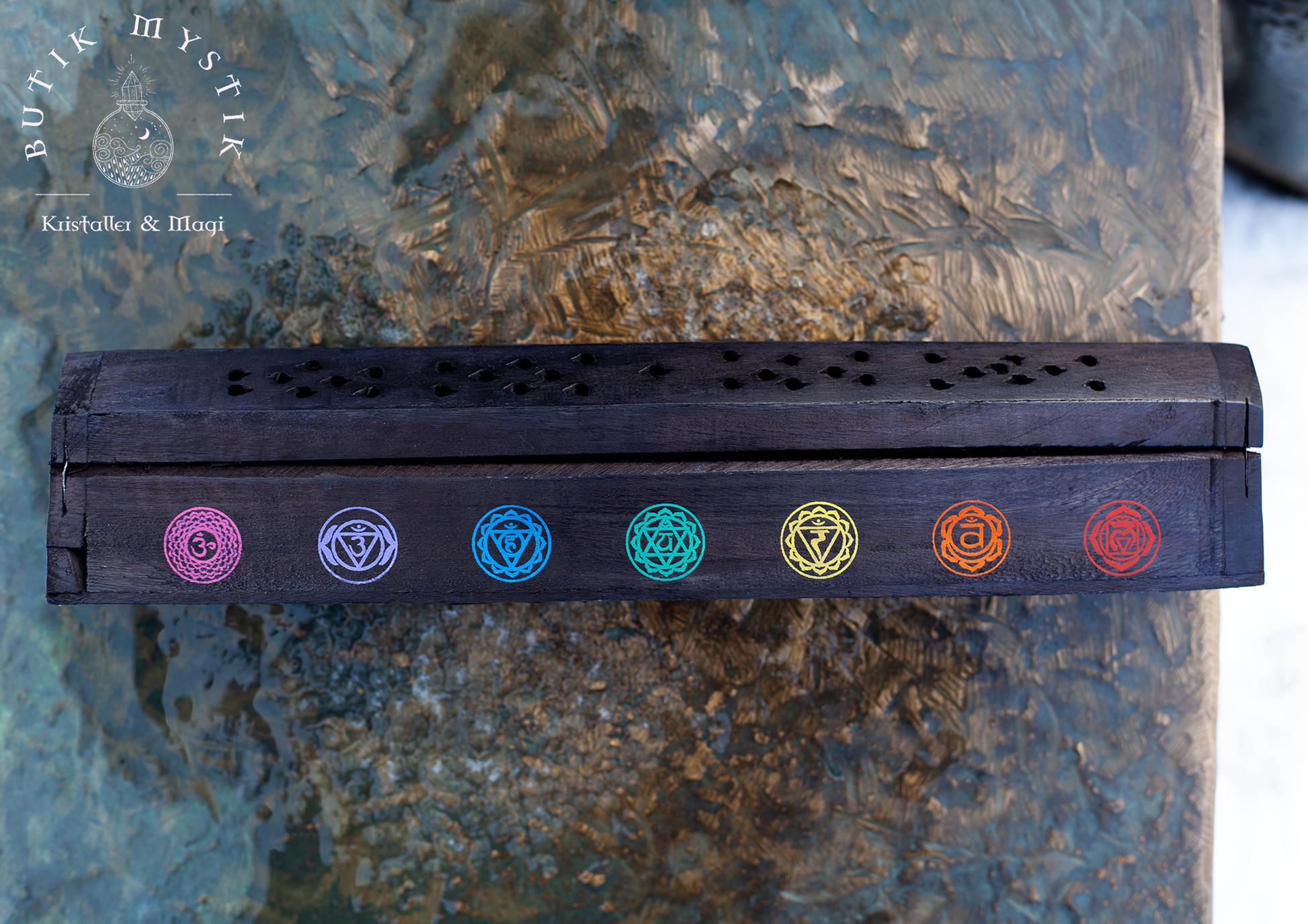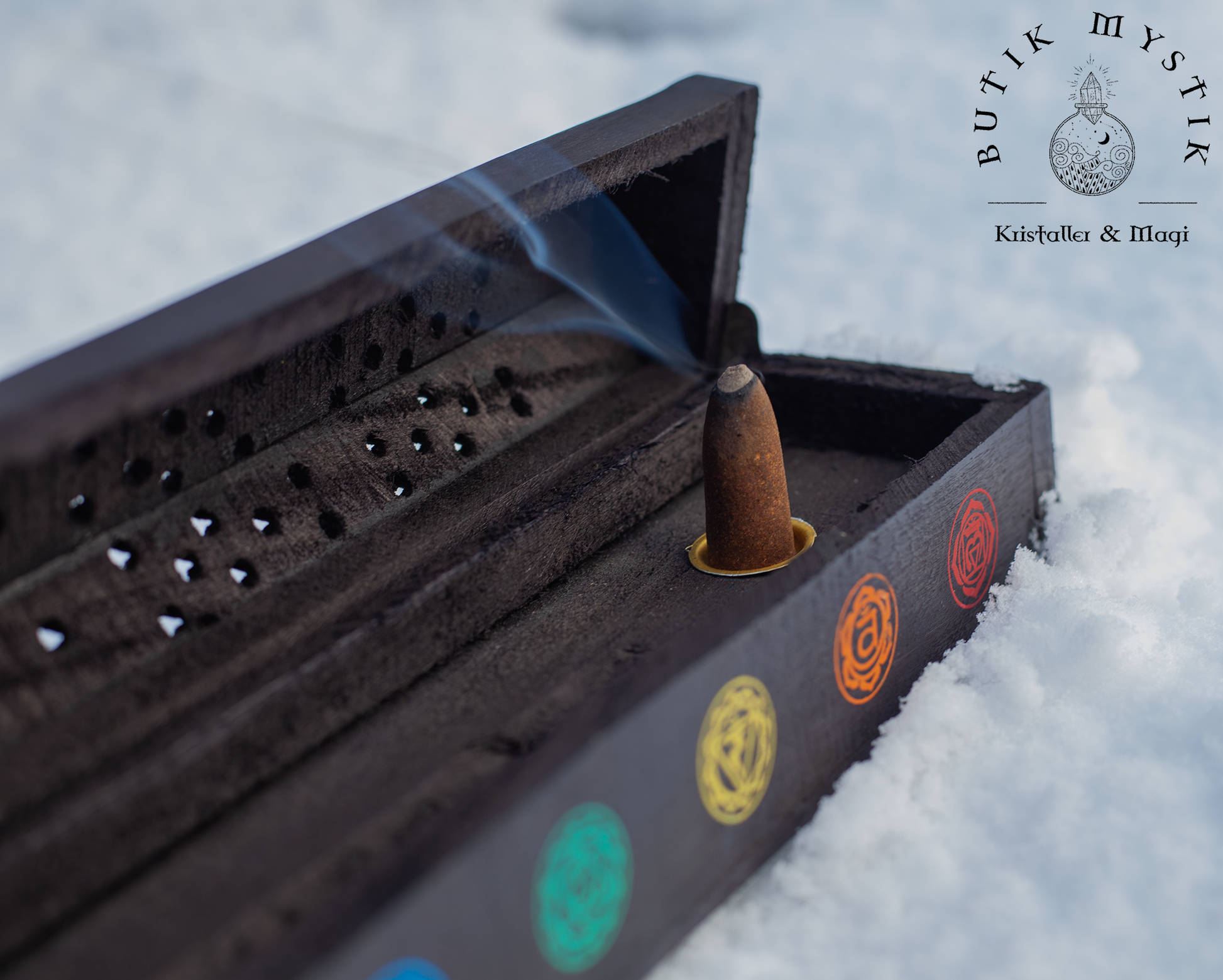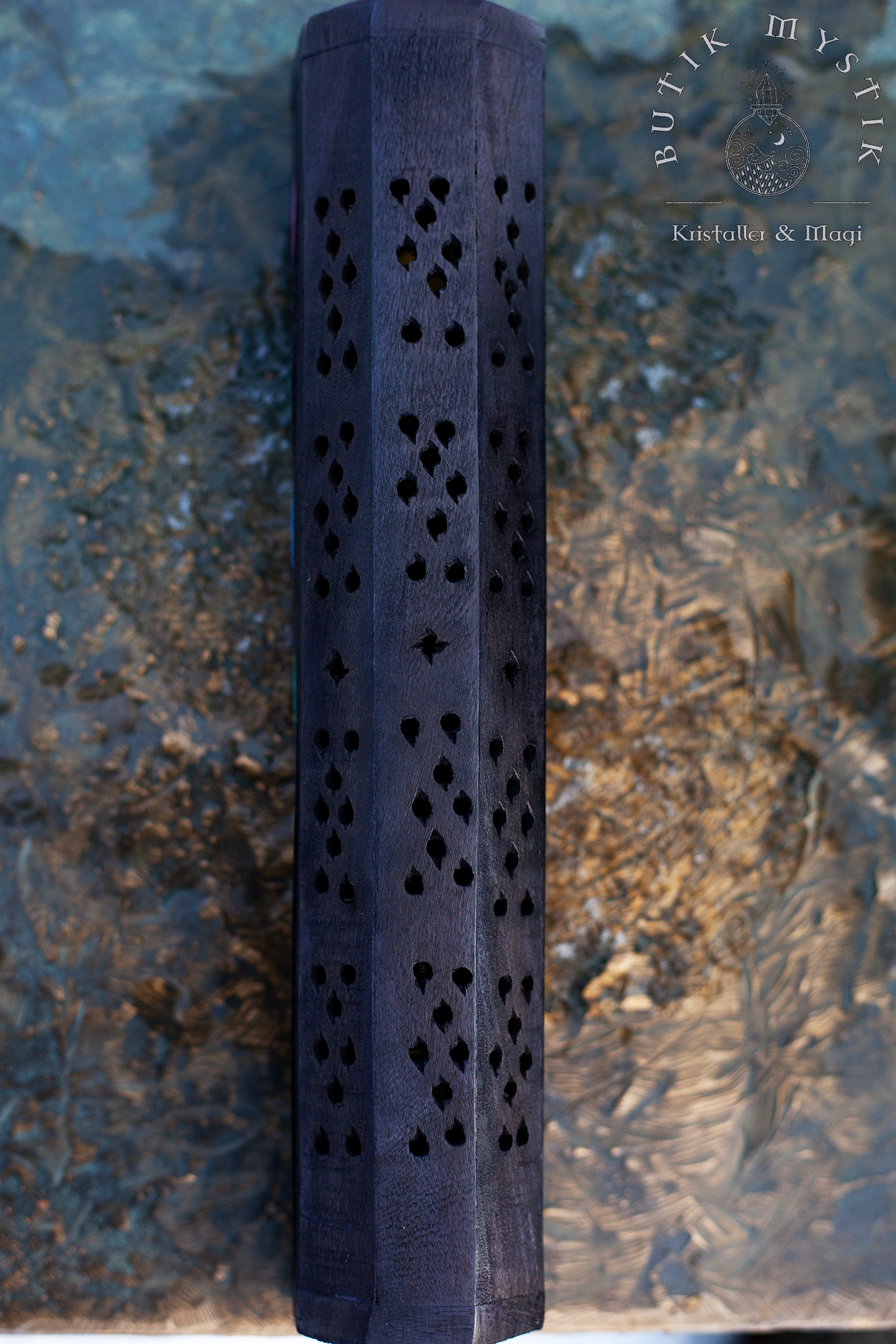 Trälådan kan bränna två rökelsepinnar åt gången samt två rökelsekoner Mycket lätt att rengöra. Använd den i din meditation, yogaträning, vilken ceremoni som helst eller som vacker inredning i ditt hem.