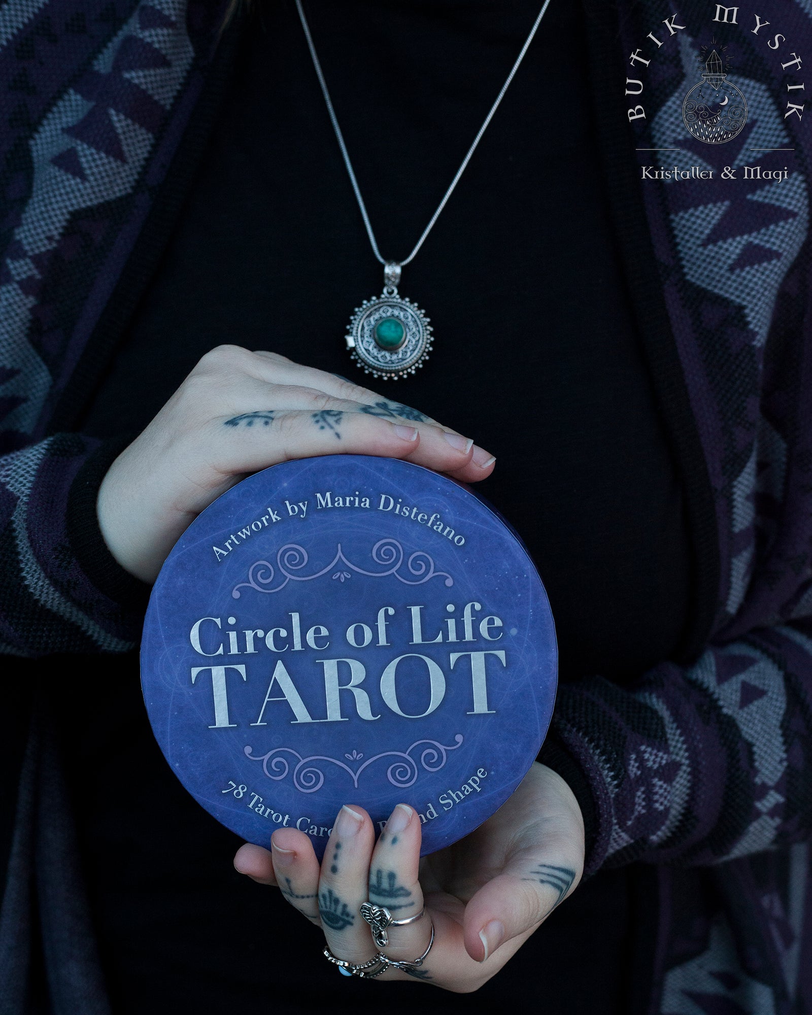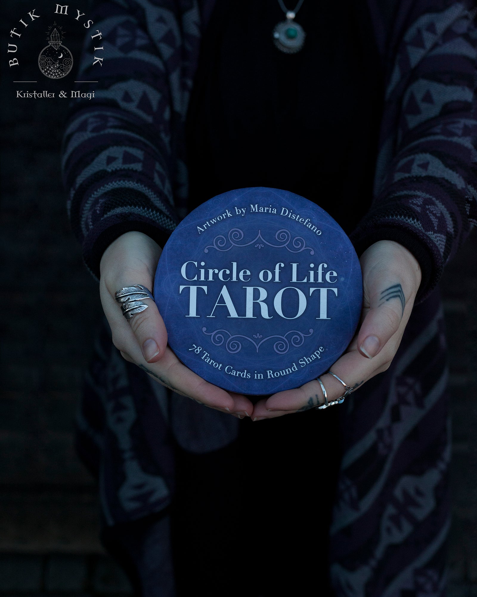 Cirkeln är en helig symbol, utan början och utan slut, som visar alltings sammanlänkning. Tarotkorten Circle of Life kommer med en guidebok på engelska, som bara har siffror på korten och ingen text.