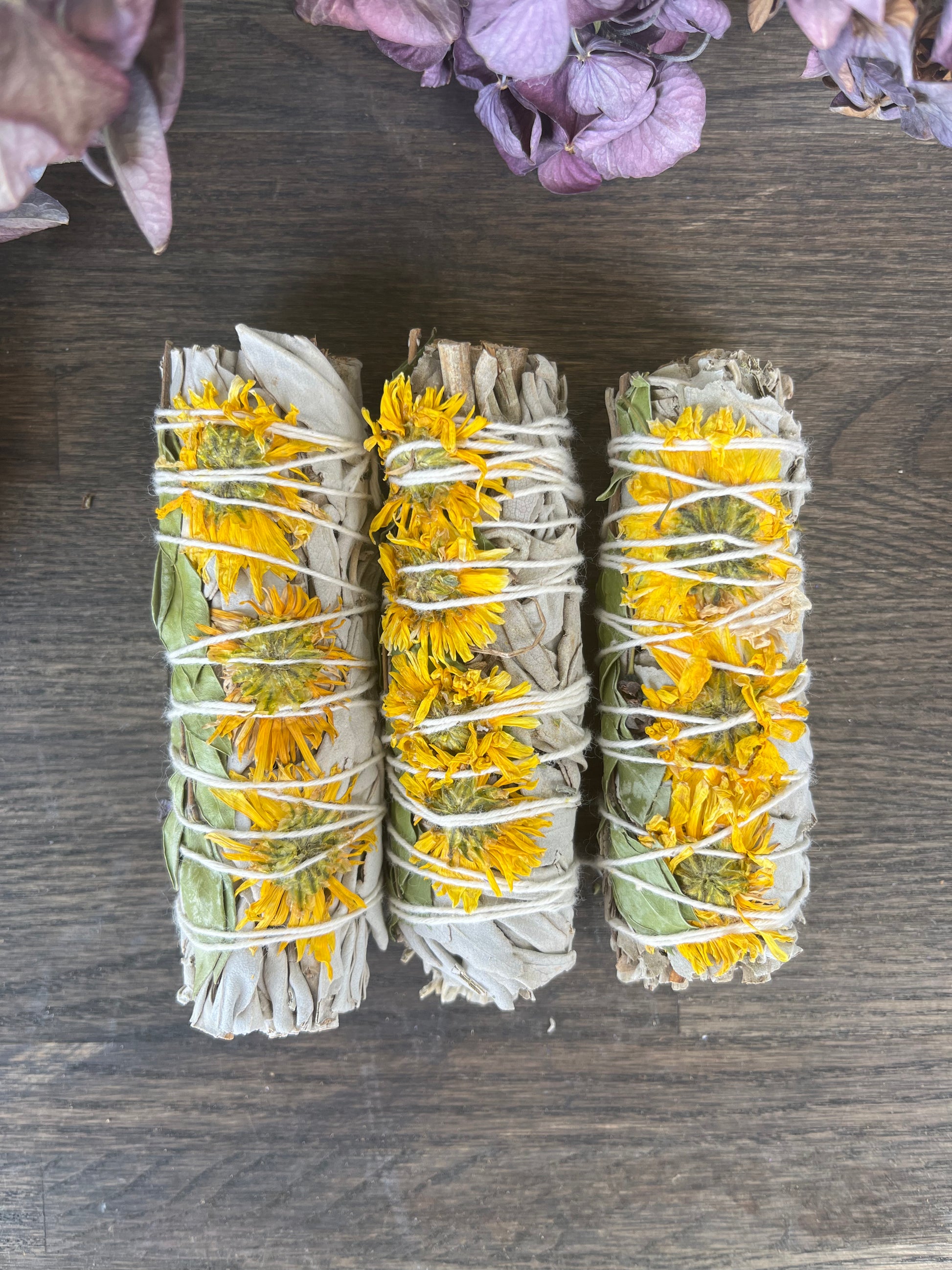 Solrosen är förknippad med solen och alla solgudar. Dess väsen hjälper till att balansera det första chakrat och hjälper också till med självförtroende i ledarskapsroller. Brinnande vit salvia + solrosor hjälper till att ge positiv energi till hemmet.