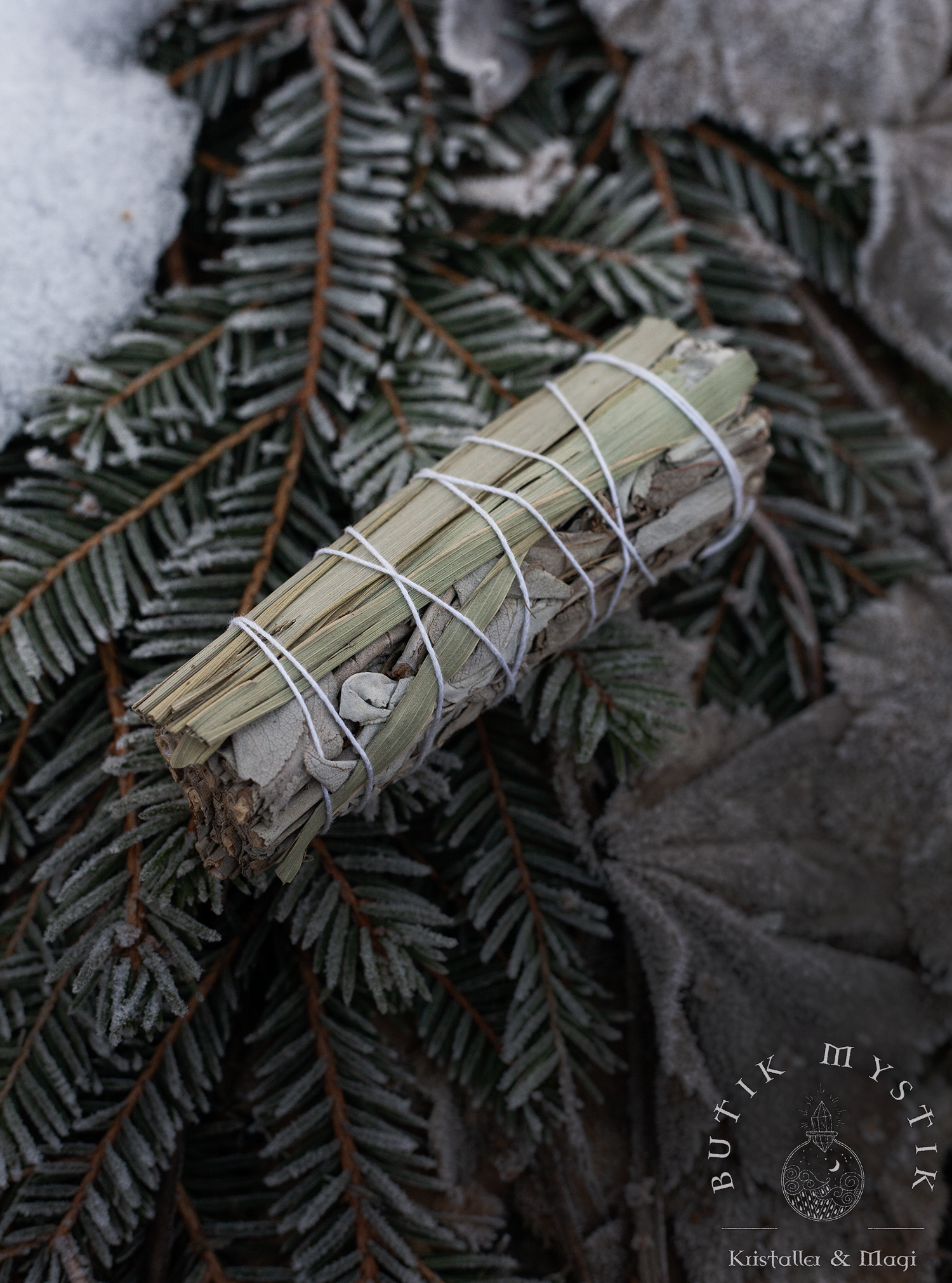 När du tänder din smudge har röken en ganska intensiv men uppfriskande doft. Används för att rena t.ex. dina kristaller eller ett rum och få bort stillastående/negativ energi. Jobba med din egen intuition, perfekt att använda före en meditation.