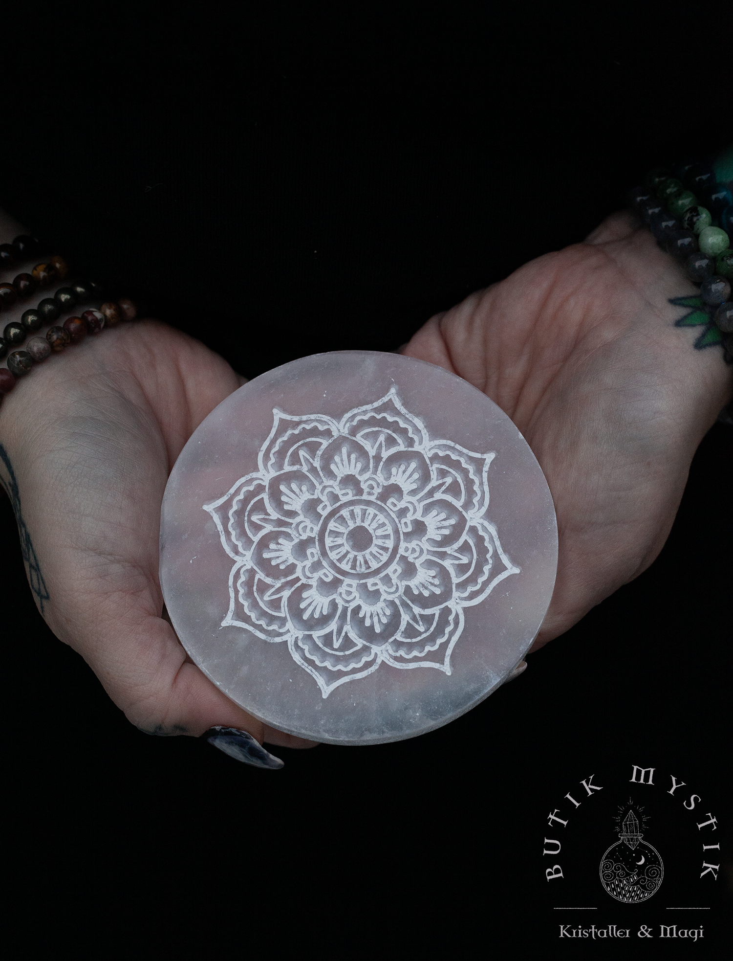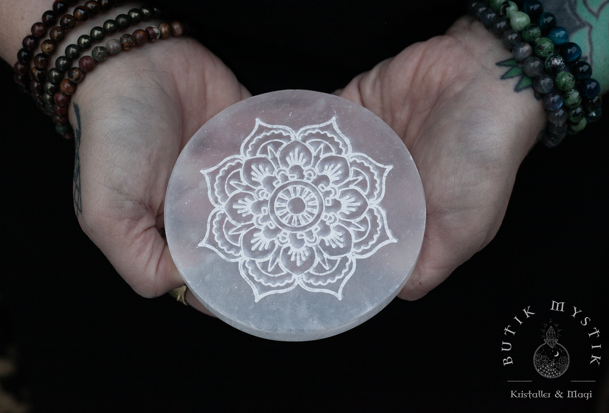 Selenit platta - för att ladda dina andra kristaller - Mandala