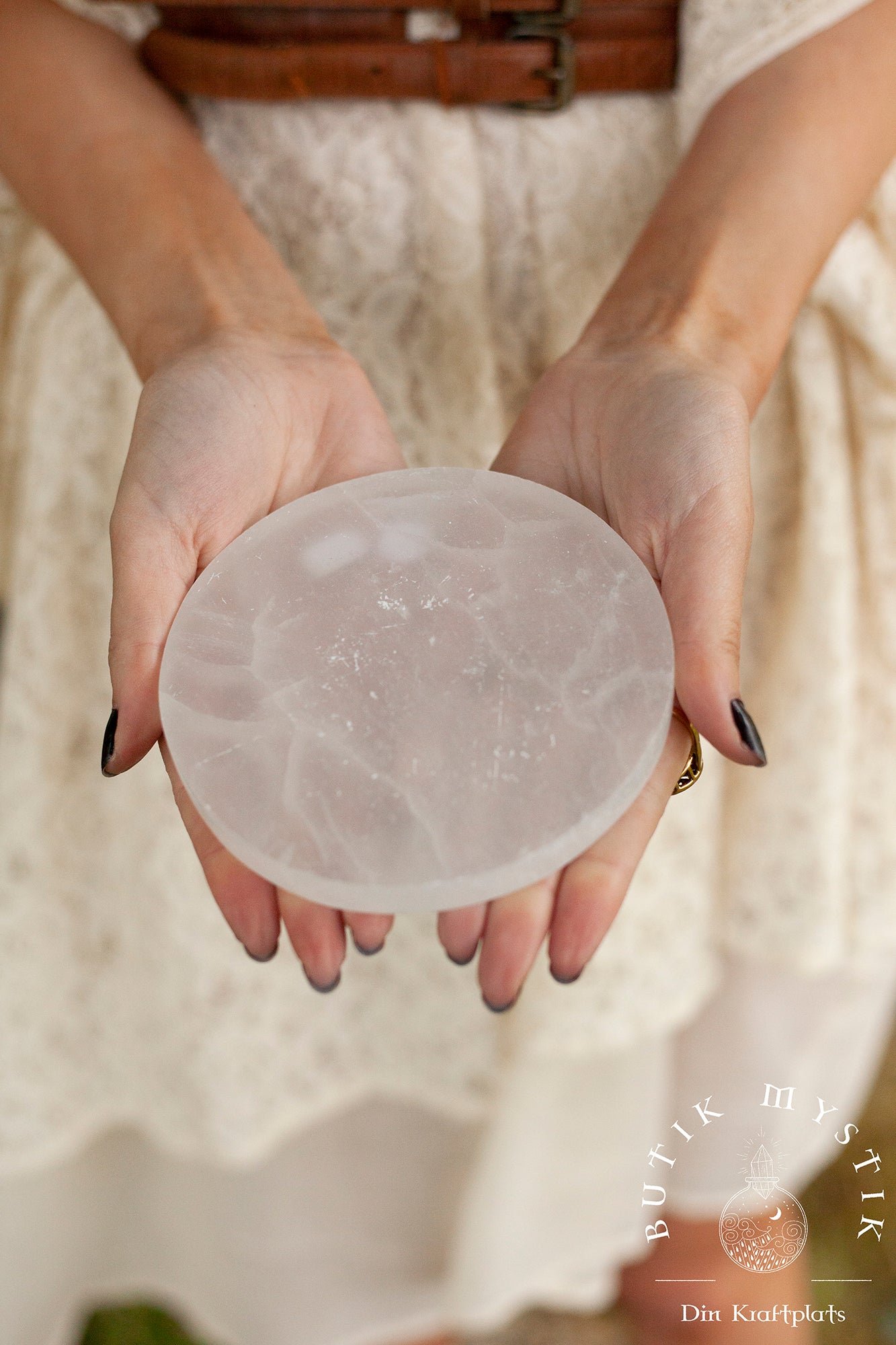 Vackra runda polerade plattor i Selenit. Lägg dina trumlade stenar, smycken, kristaller för att ladda dem här!