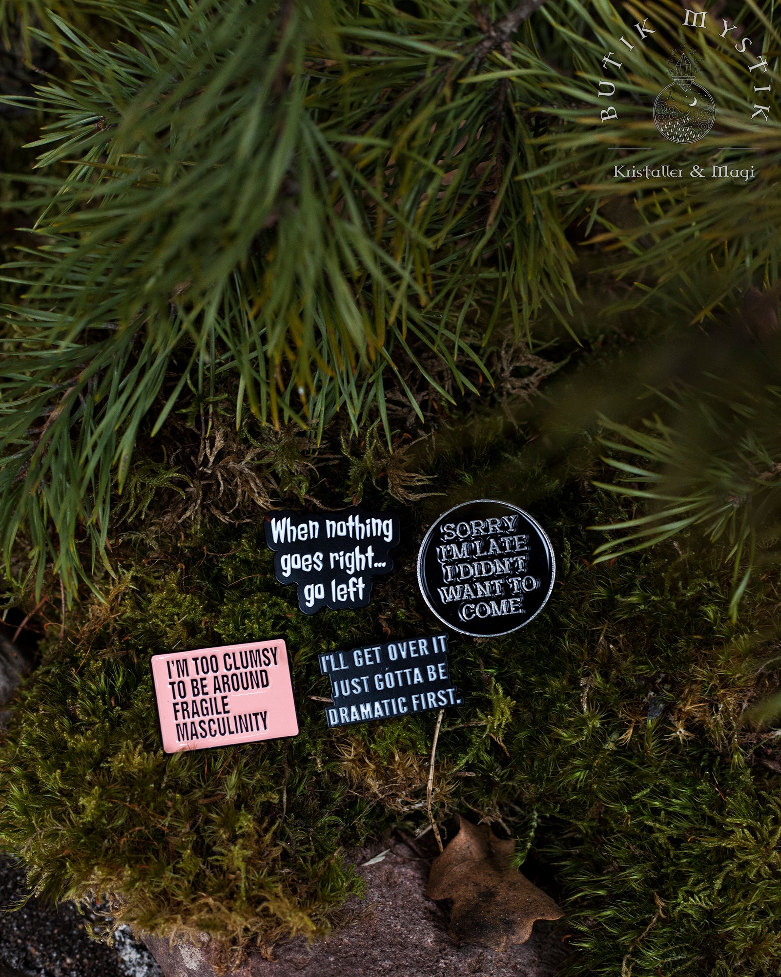 Små söta pins med olika texter på, perfekta till skolväskan eller till jeansjackan!