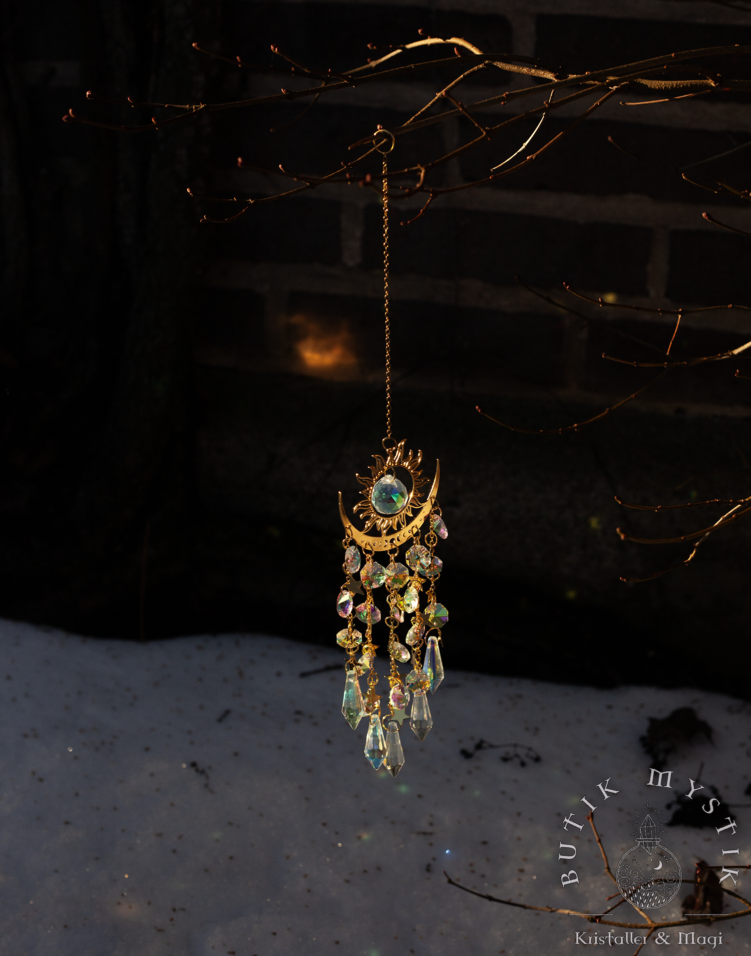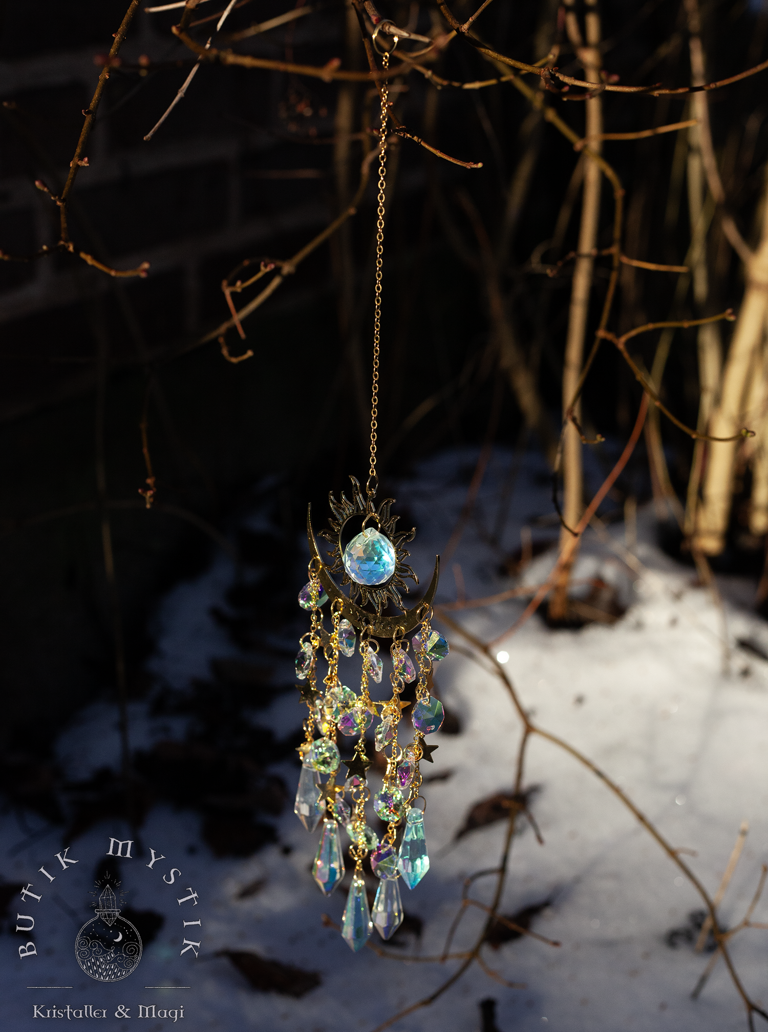 Solkristaller är vackert tillverkade av högkvalitativ glaskristall med en klar skäryta som skapar fantastiska ljusreflektioner i regnbågens alla färger när solens strålar skiner på dem.