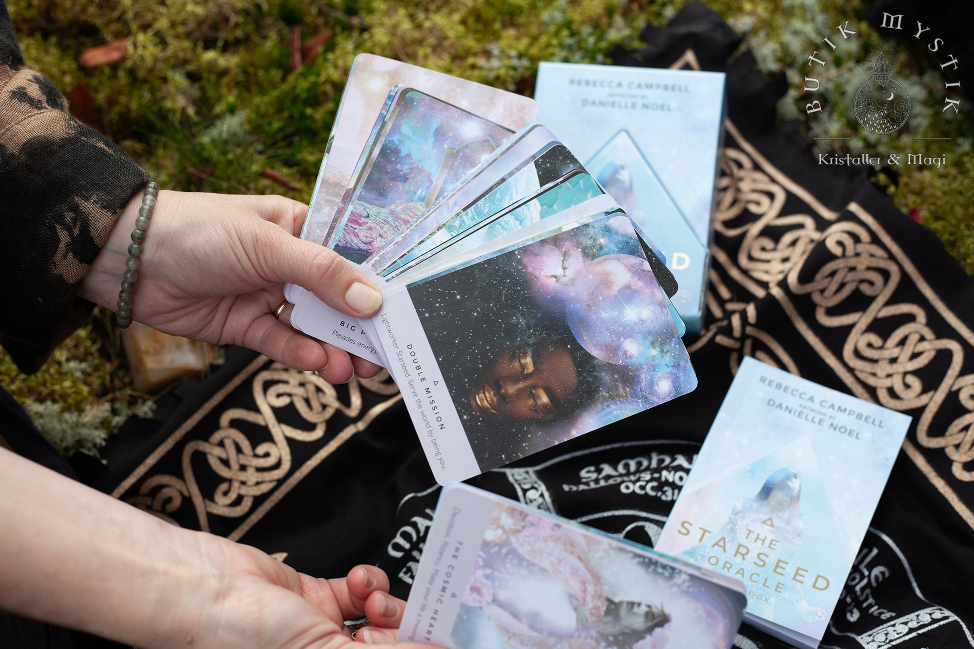 Starseed är en orakelkortlek som är gjord just för stjärnsjälar – själar som när en speciell längtan efter det mystiska och okända. En Stjärnsjäl är en “gammal själ”, alltså en människa vars själ har upplevt andra platser än jorden. Kanske är vi alla stjärnsjälar? Det kanske bara är så att vissa av oss är mer medvetna om det för att vi inte har sjunkit lika långt ner i glömskan än? Eller så kanske vissa själar har reinkarnerats oftare (eller mer nyligen) på olika platser i Universum, både det kända och det okända.