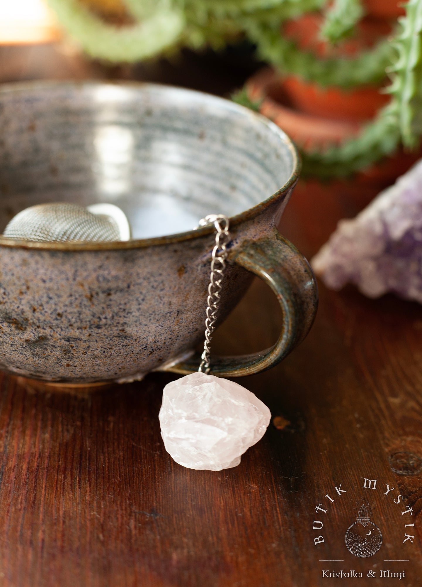 Rosenkvarts - Kärleksstenen, sägs göra underverk när det kommer till själfull läkning och dess vackra helande egenskaper kan även vara bra för kroppen också. Rosenkvarts är känd som den ultimata kärleksstenen & kan hjälpa oss acceptera och älska både oss själva & vår omgivning. Rosenkvarts sägs lugna stress & linda vid hjärtesorg, där de även lär sprida en kärleksfull energi. Denna vackra kristall kan användas av barn och unga som känner sig ensamma & oroliga, där kristallens mjuka & kärleksfulla energier sägs lugna dessa känslor.