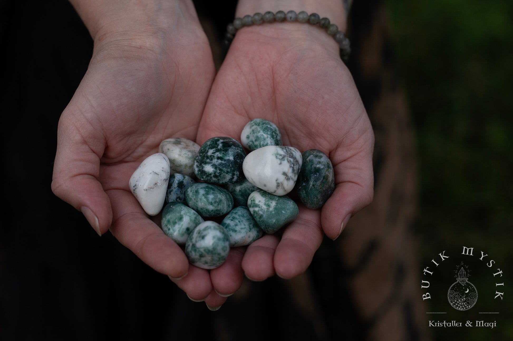 Trädagat, eller dendritagat som den också kallas, är en agat som tillhör kvartsmineralerna. Den symboliserar människans kontakt med naturen, med träden som är våra vänner och beskyddare och hjälper oss att förstå samspelet mellan allt levande på jorden.