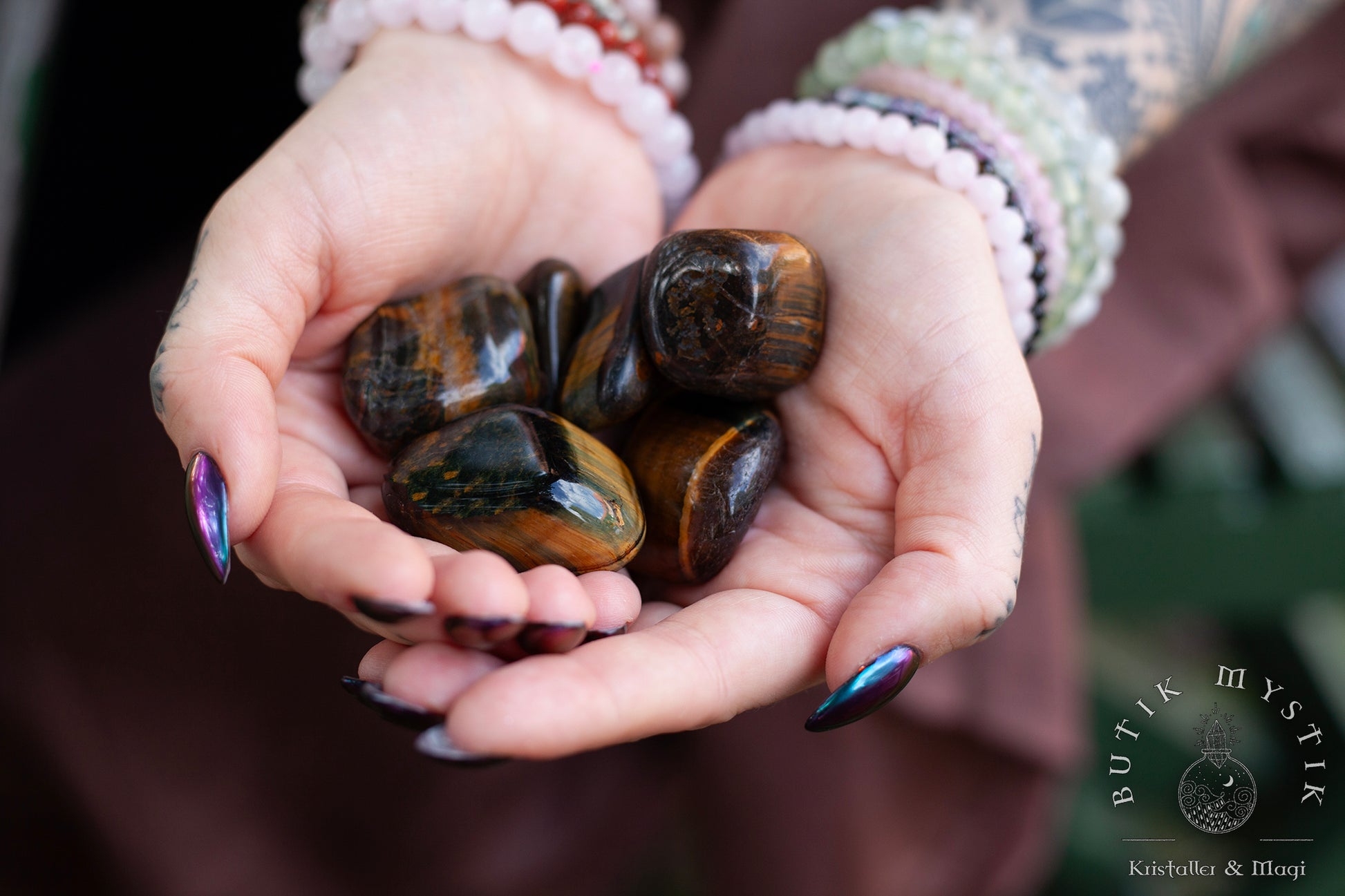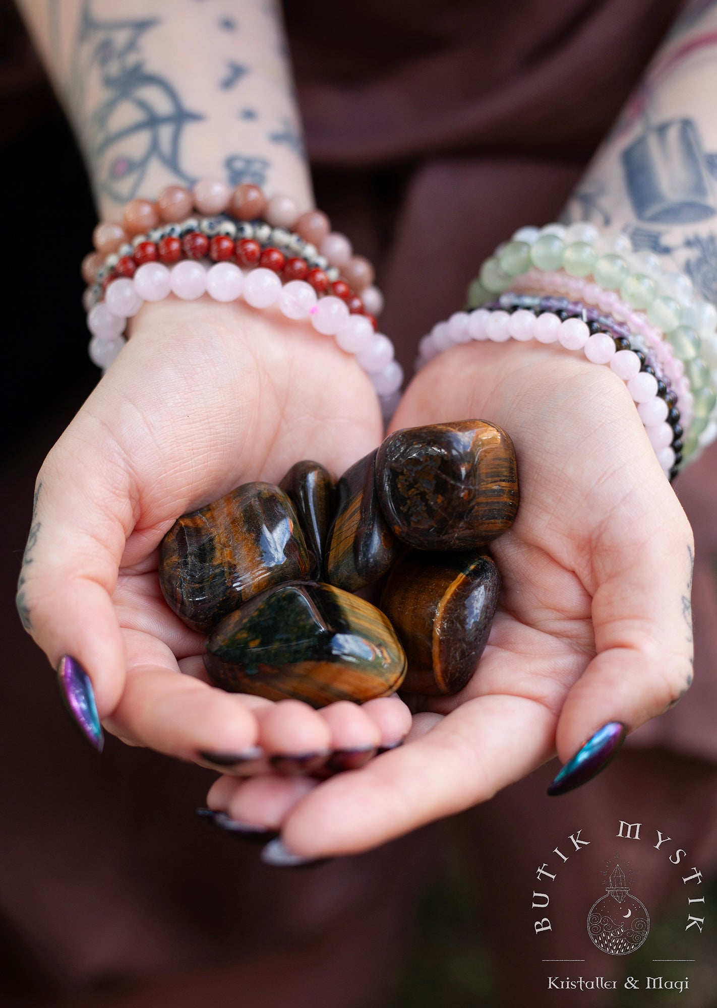 Tigeröga är känd för att vara grundande och hjälpa oss att få den kraft och energi, fysiskt och psykiskt, som krävs för att uträtta det vi tagit oss för. Den lär ge styrka och bättre självkänsla. Bär den gärna på dig, då de lär ge dig kraft och stärka självkontrollen.
