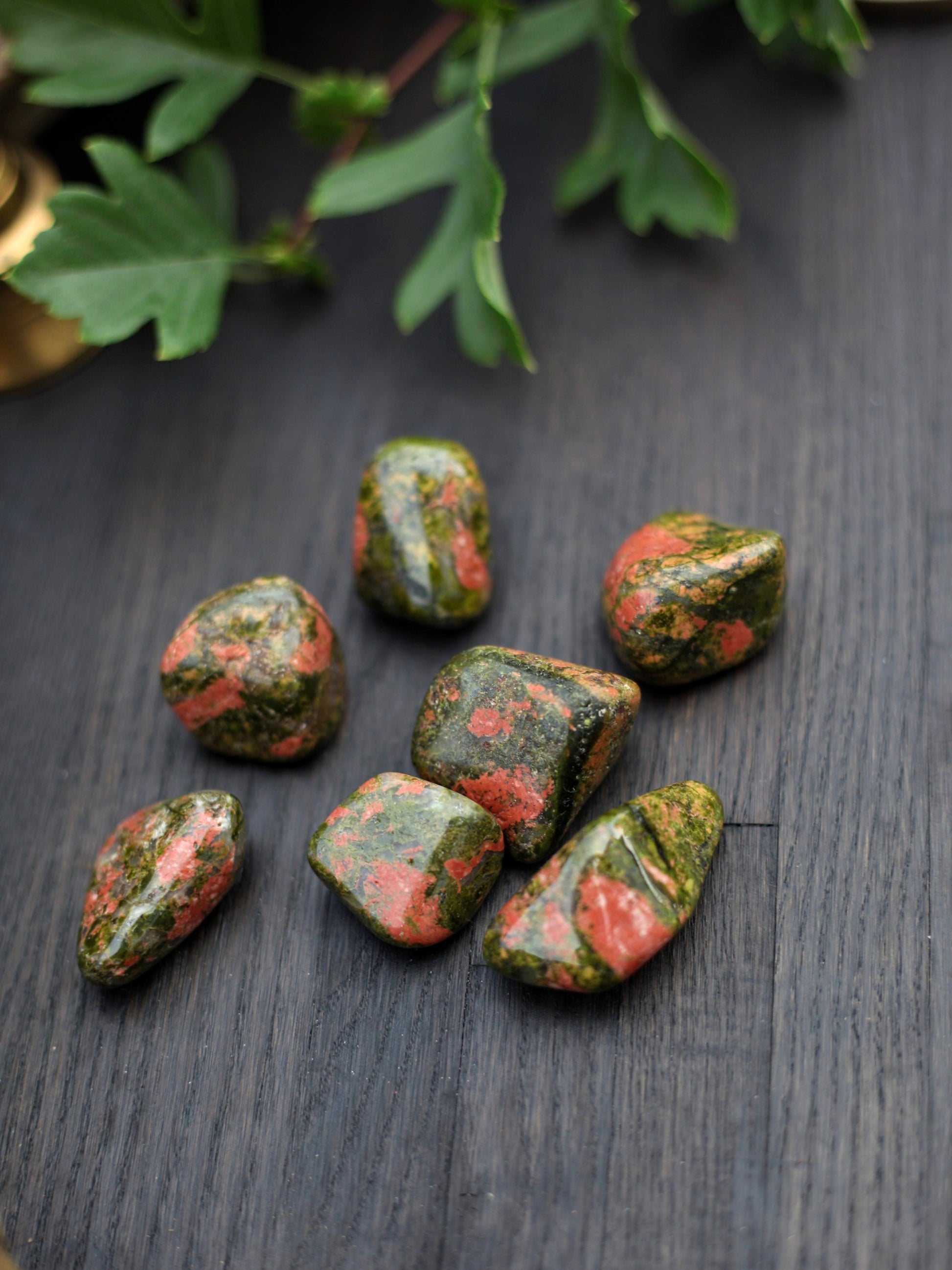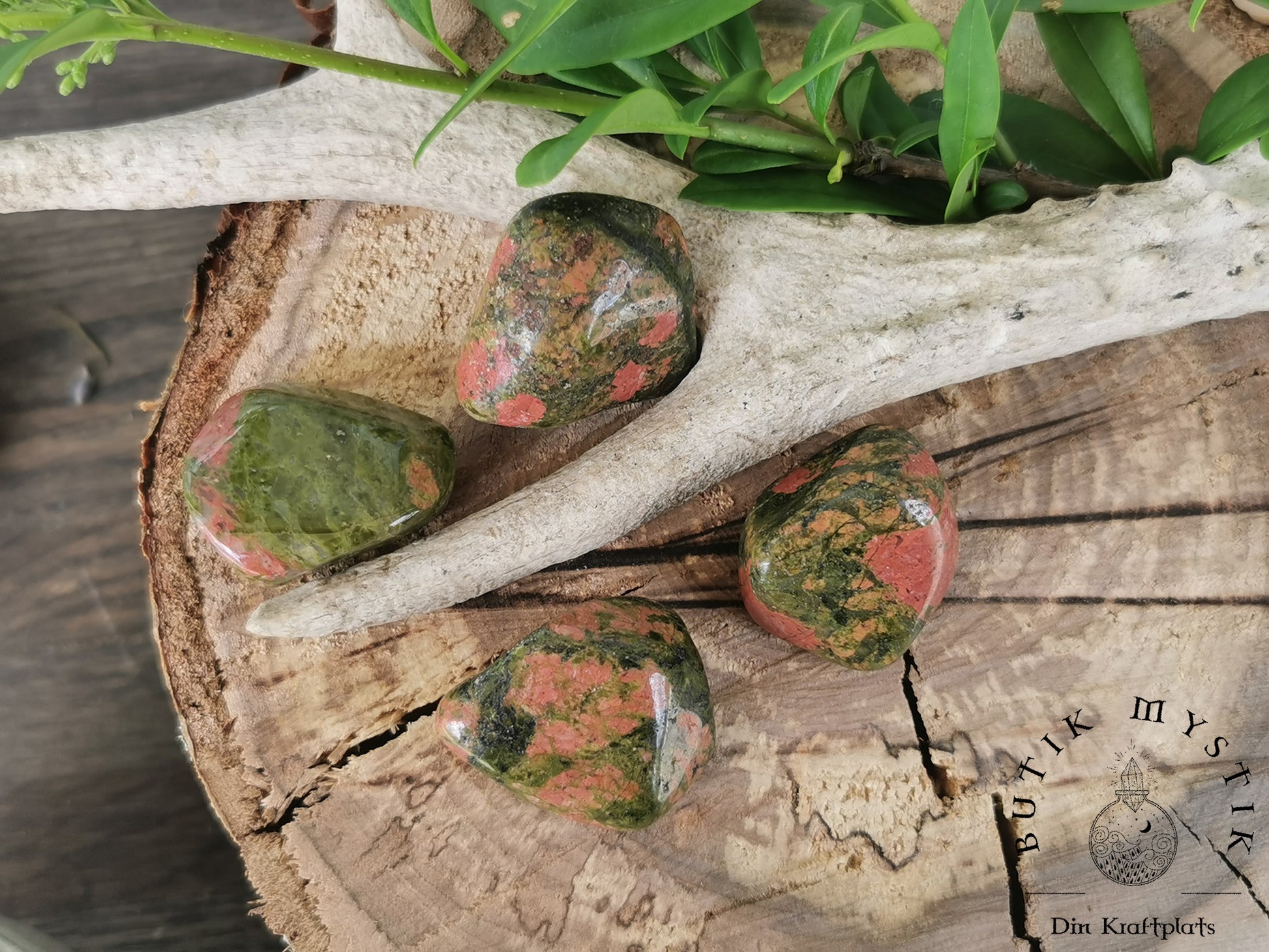 Unakit sägs balansera de emotionella och andliga kropparna och kan frisätta blockeringar i energifältet.